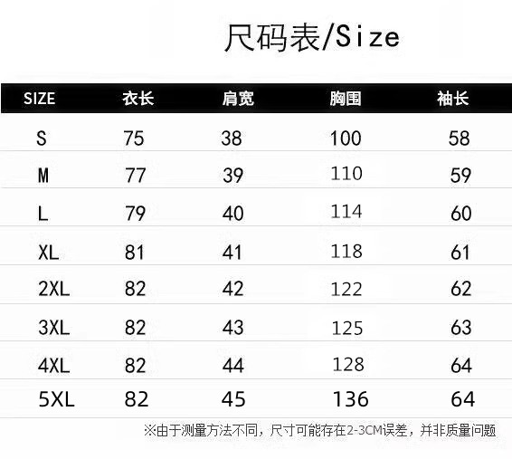 | 5xl (97.50 kg-105.00 kg(5XL(195-210斤)) | USD $25.12 | 210 piece available |