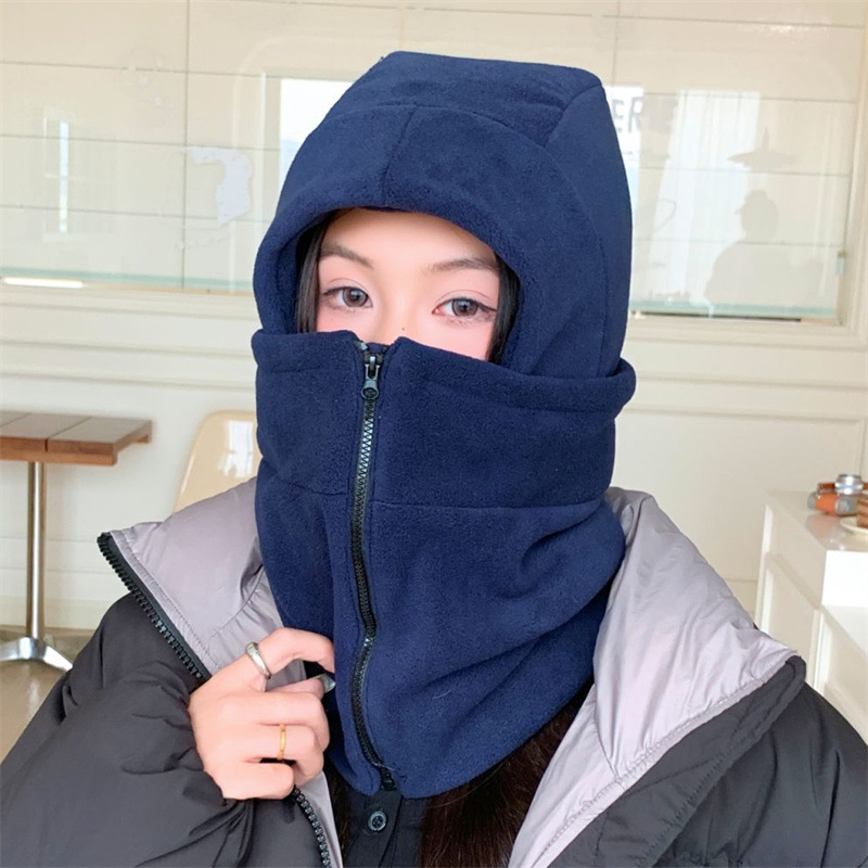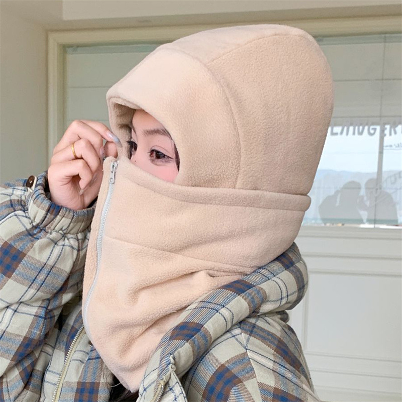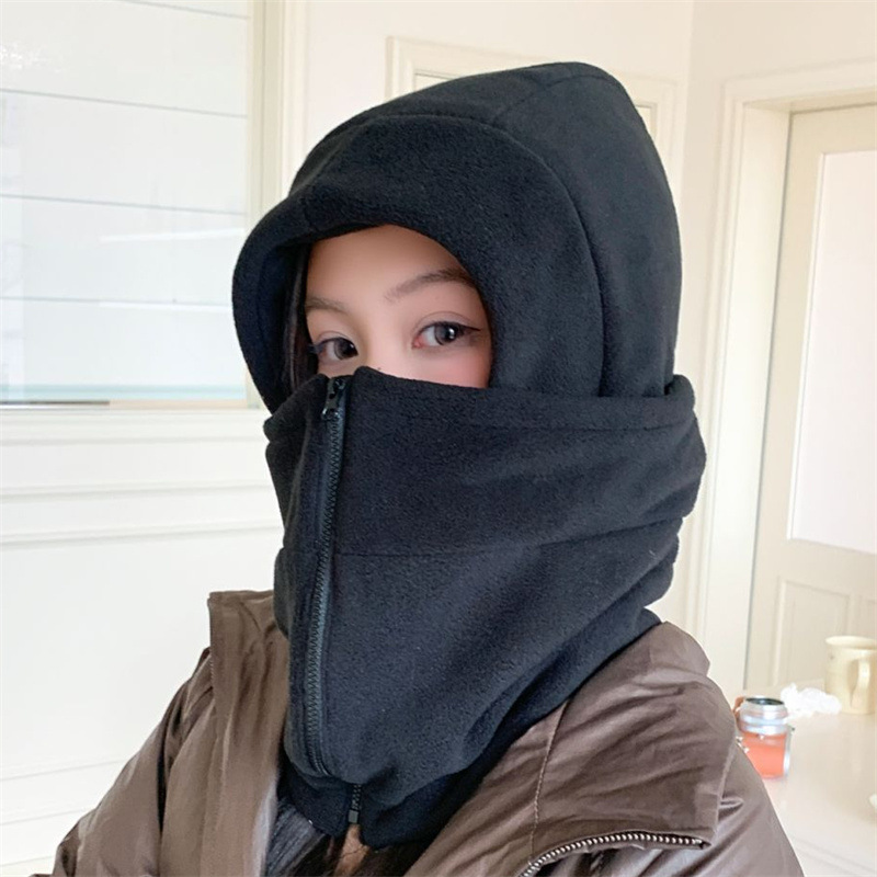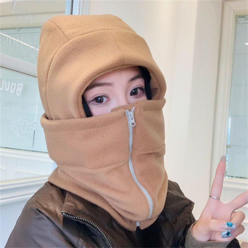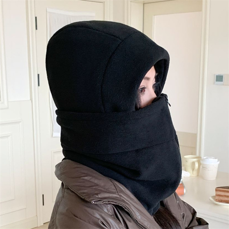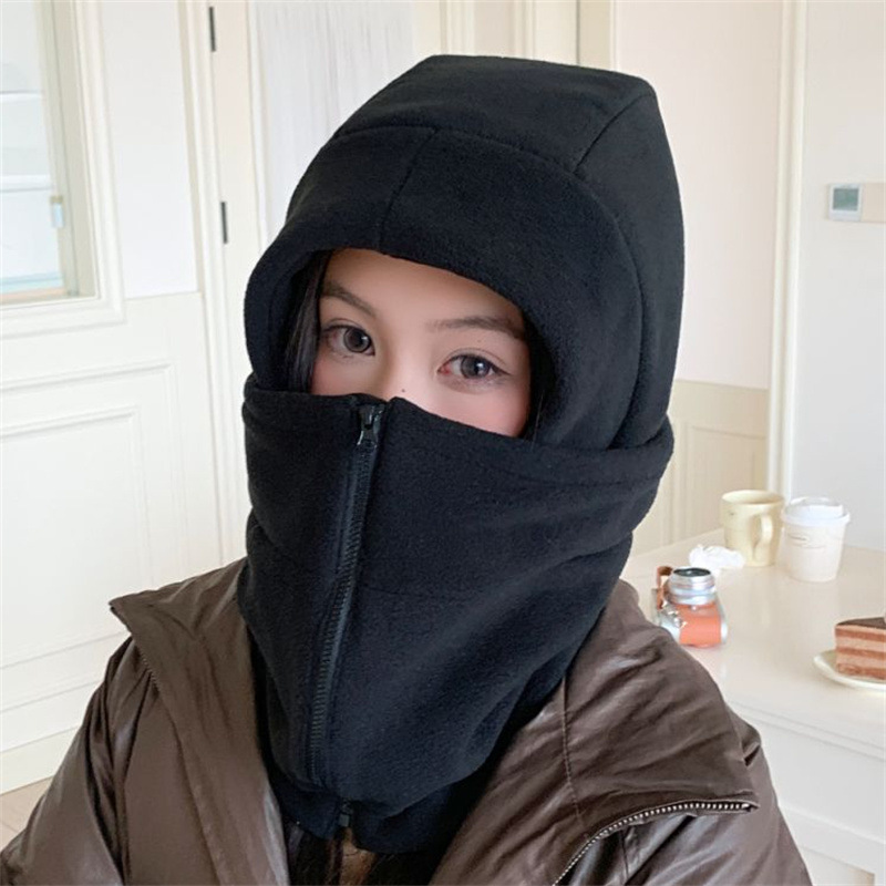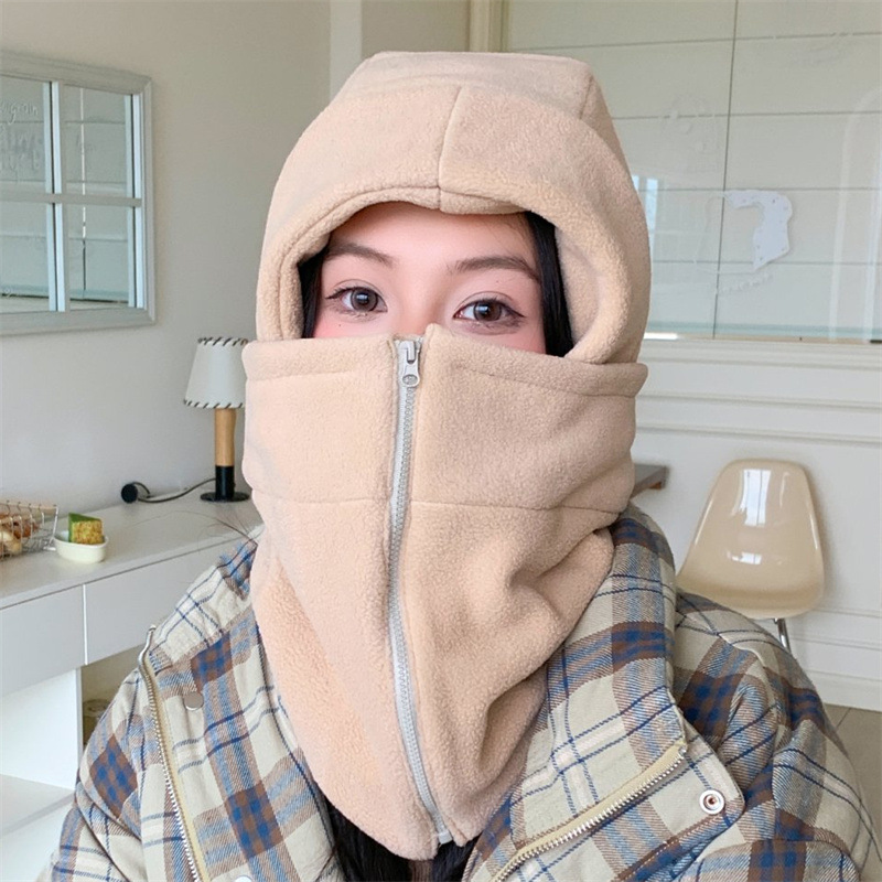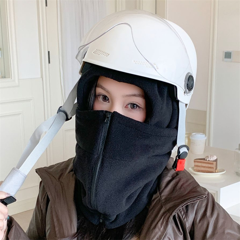 秋冬季骑车包头帽子女保暖电动车防寒防风面罩一体加绒护耳套头帽