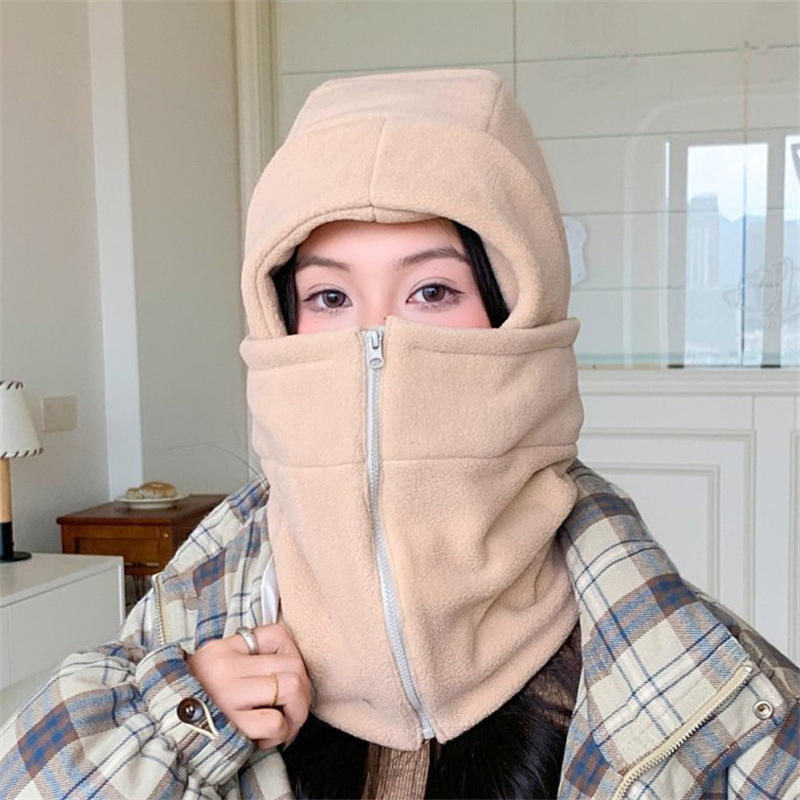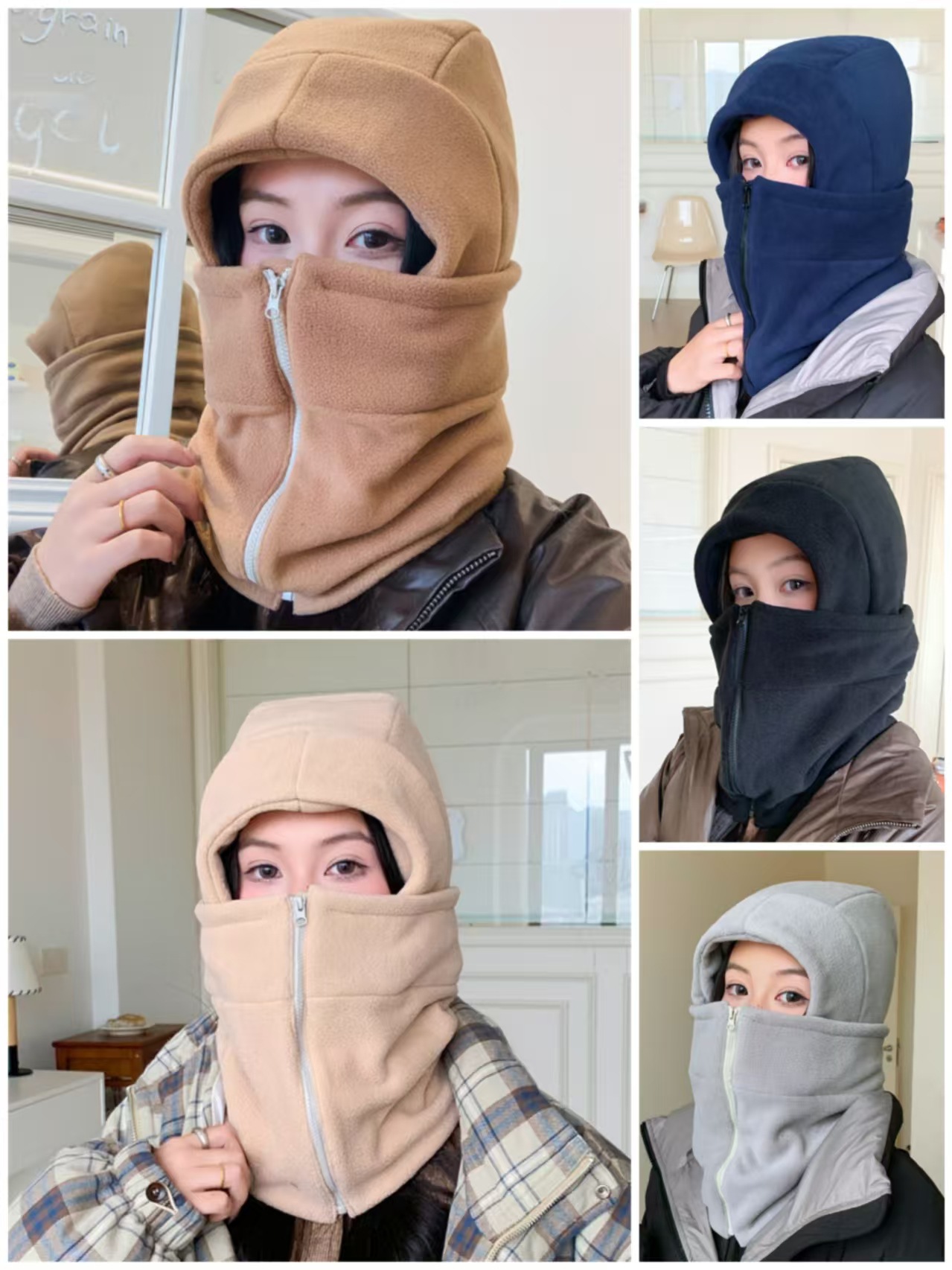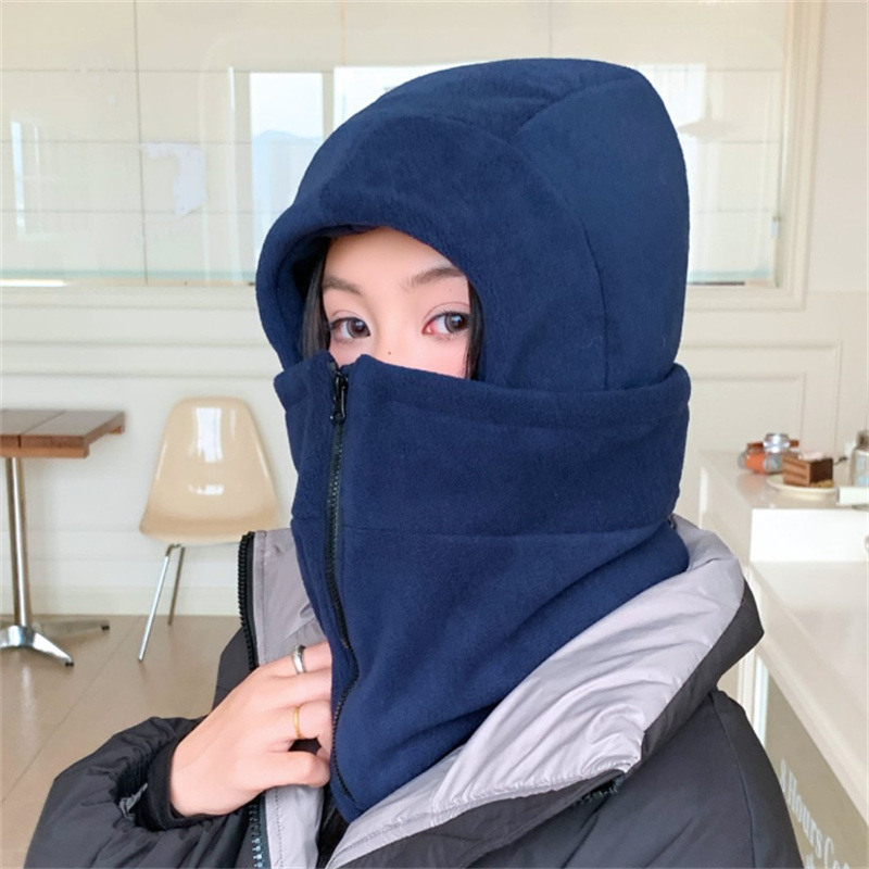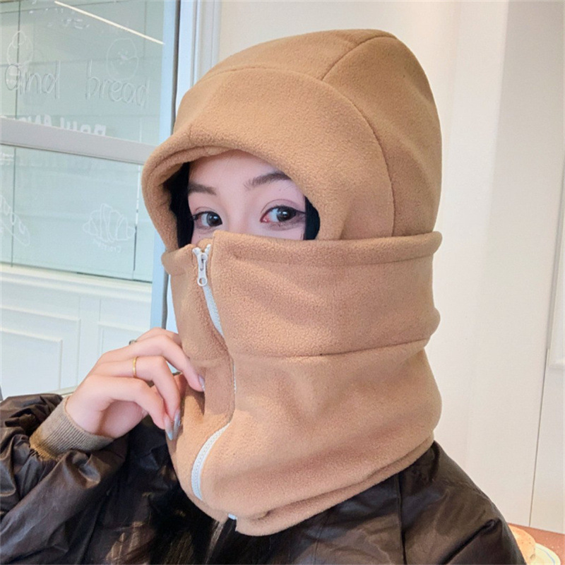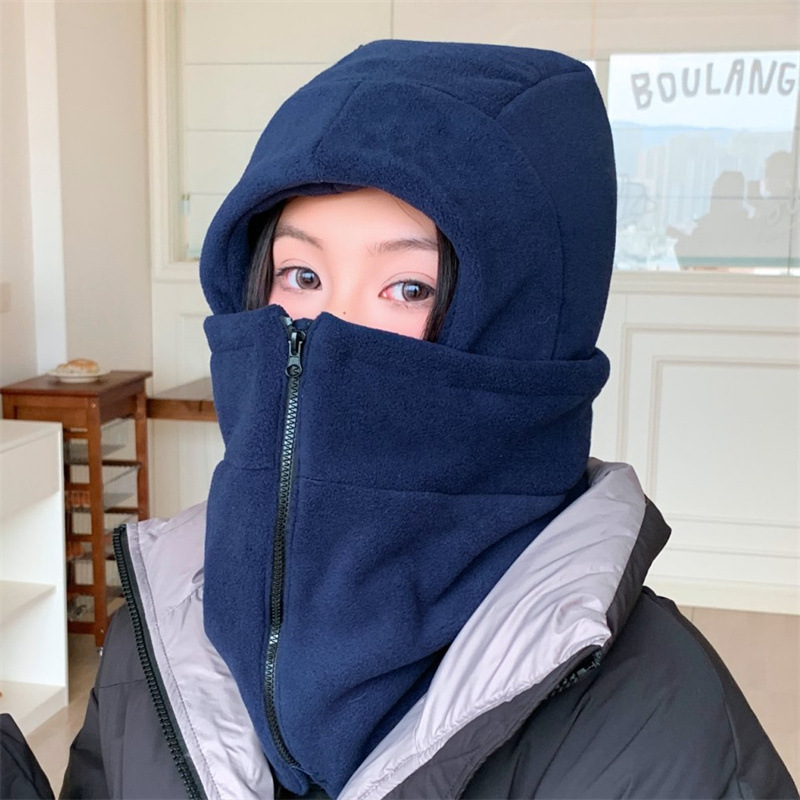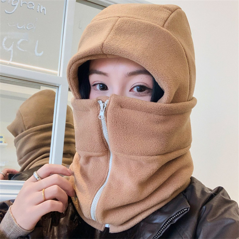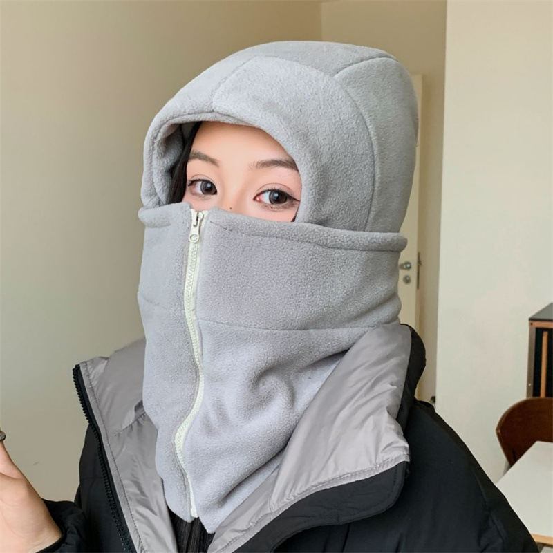 秋冬季骑车包头帽子女保暖电动车防寒防风面罩一体加绒护耳套头帽