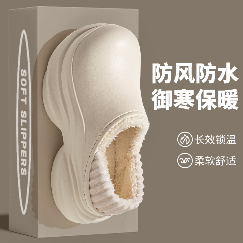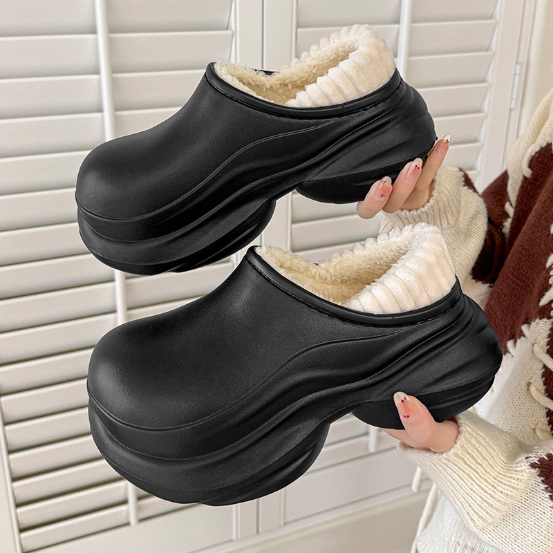 厚底外穿高跟棉鞋女棉拖女居家棉拖鞋女秋冬季加绒包头拖女保暖鞋