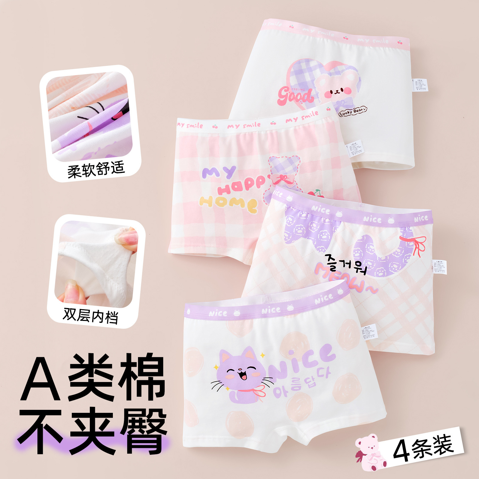 女童内裤纯棉a类棉宝宝儿童平角裤短裤夏女孩小童四角裤不夹屁屁