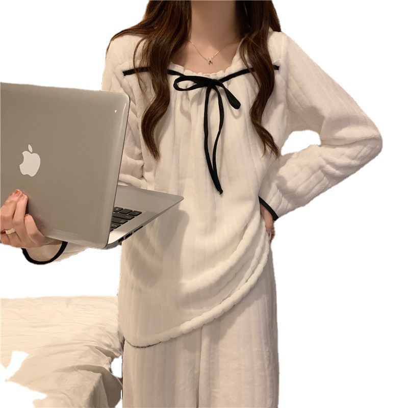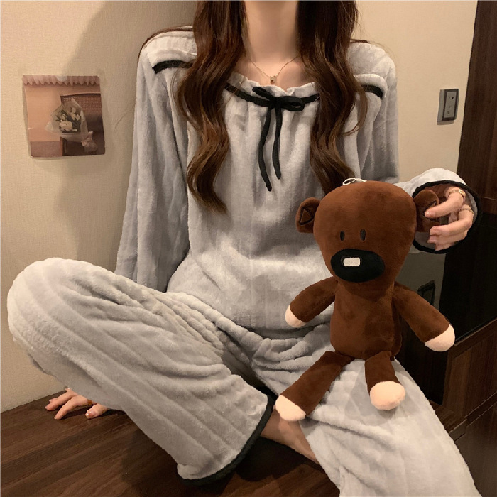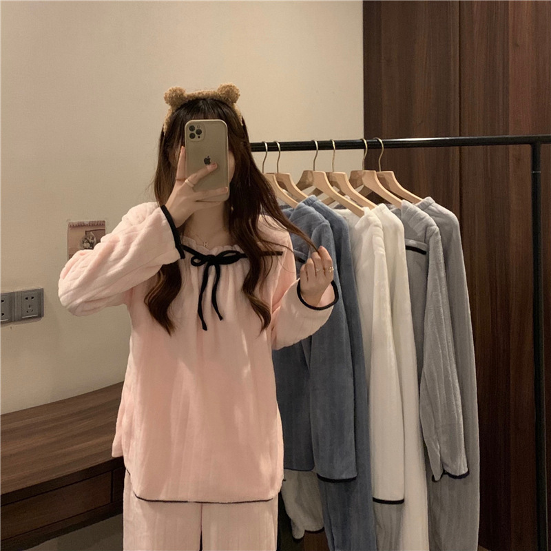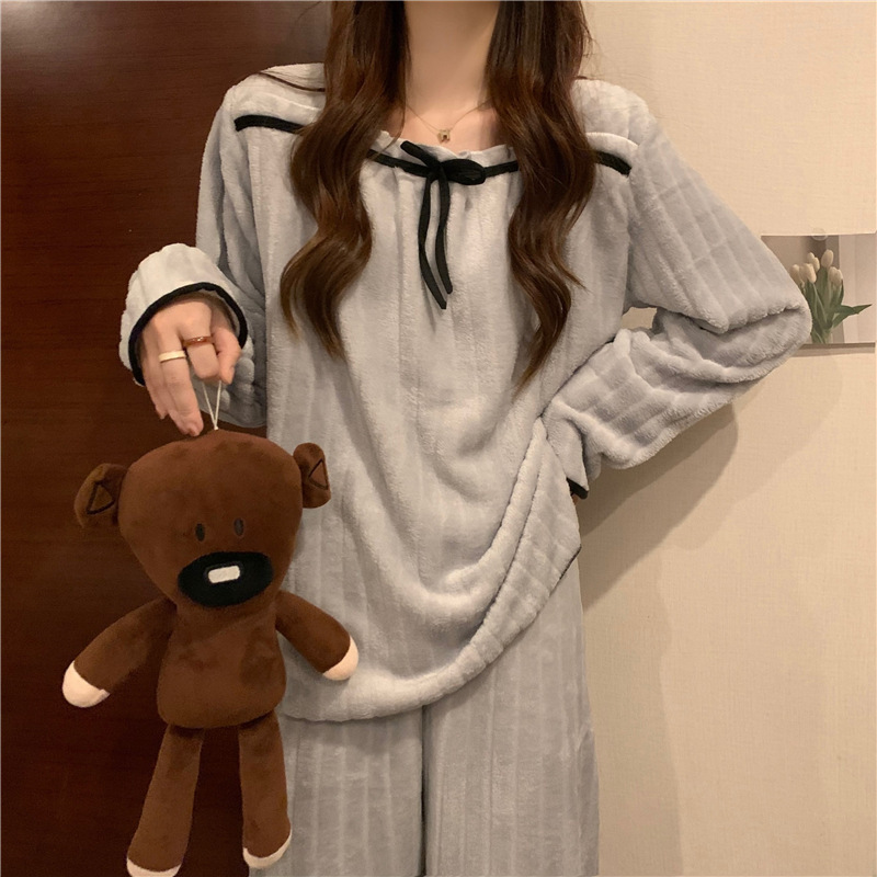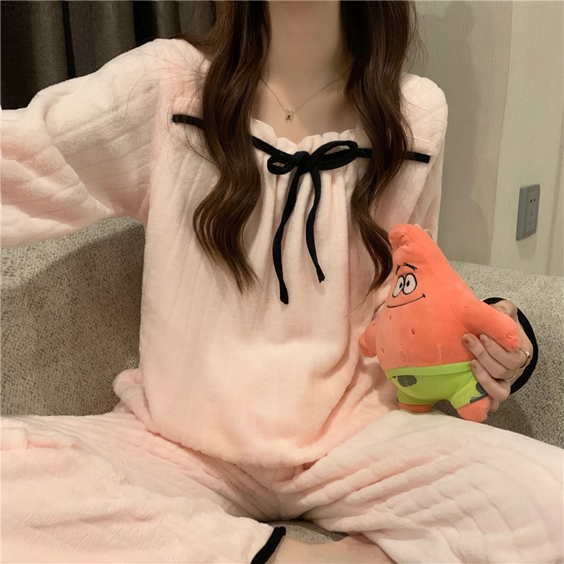 ins公主风珊瑚绒睡衣女秋冬季加绒加厚冬天法兰绒家居服套装批发