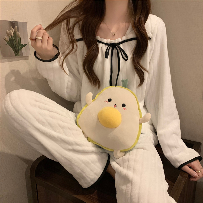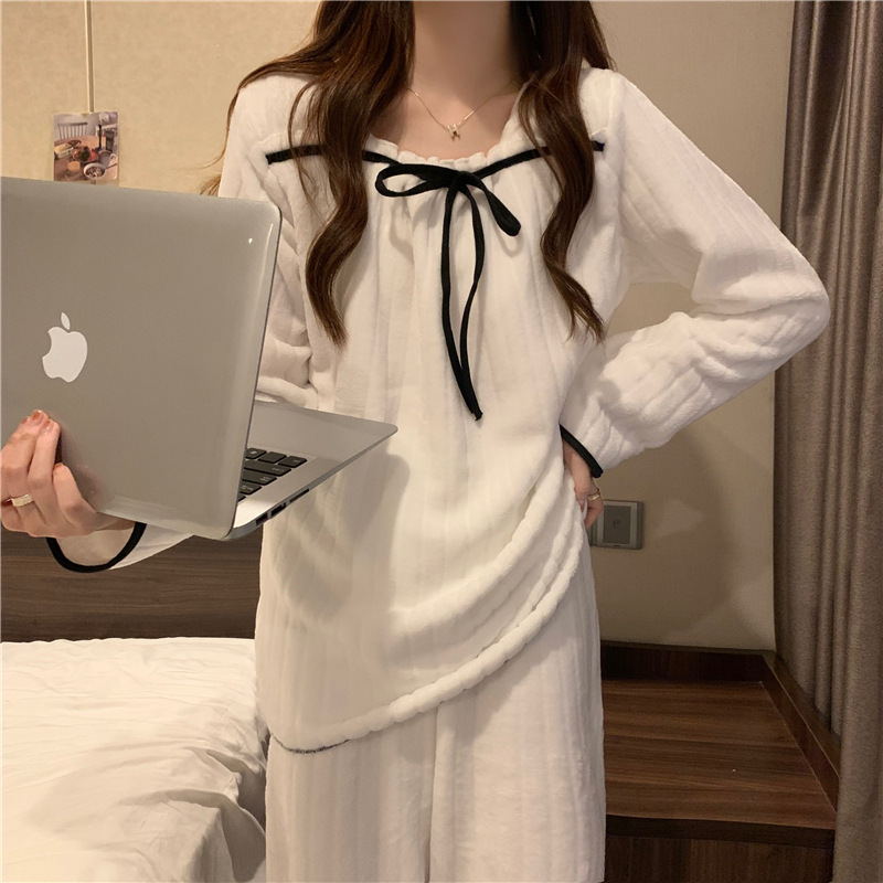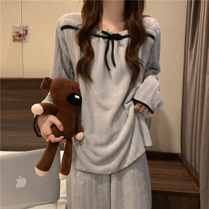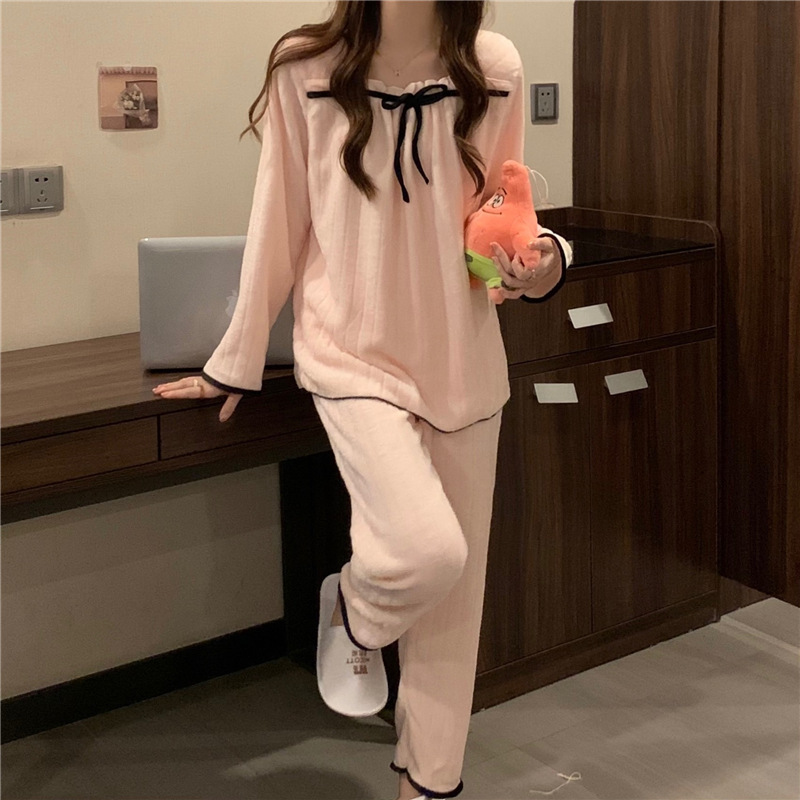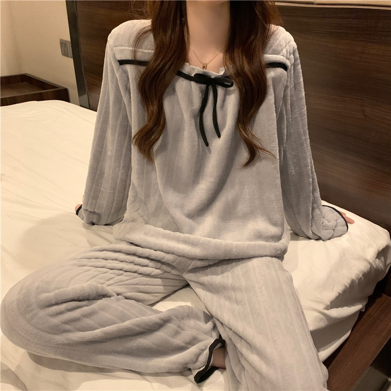 ins公主风珊瑚绒睡衣女秋冬季加绒加厚冬天法兰绒家居服套装批发