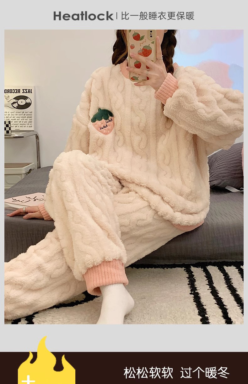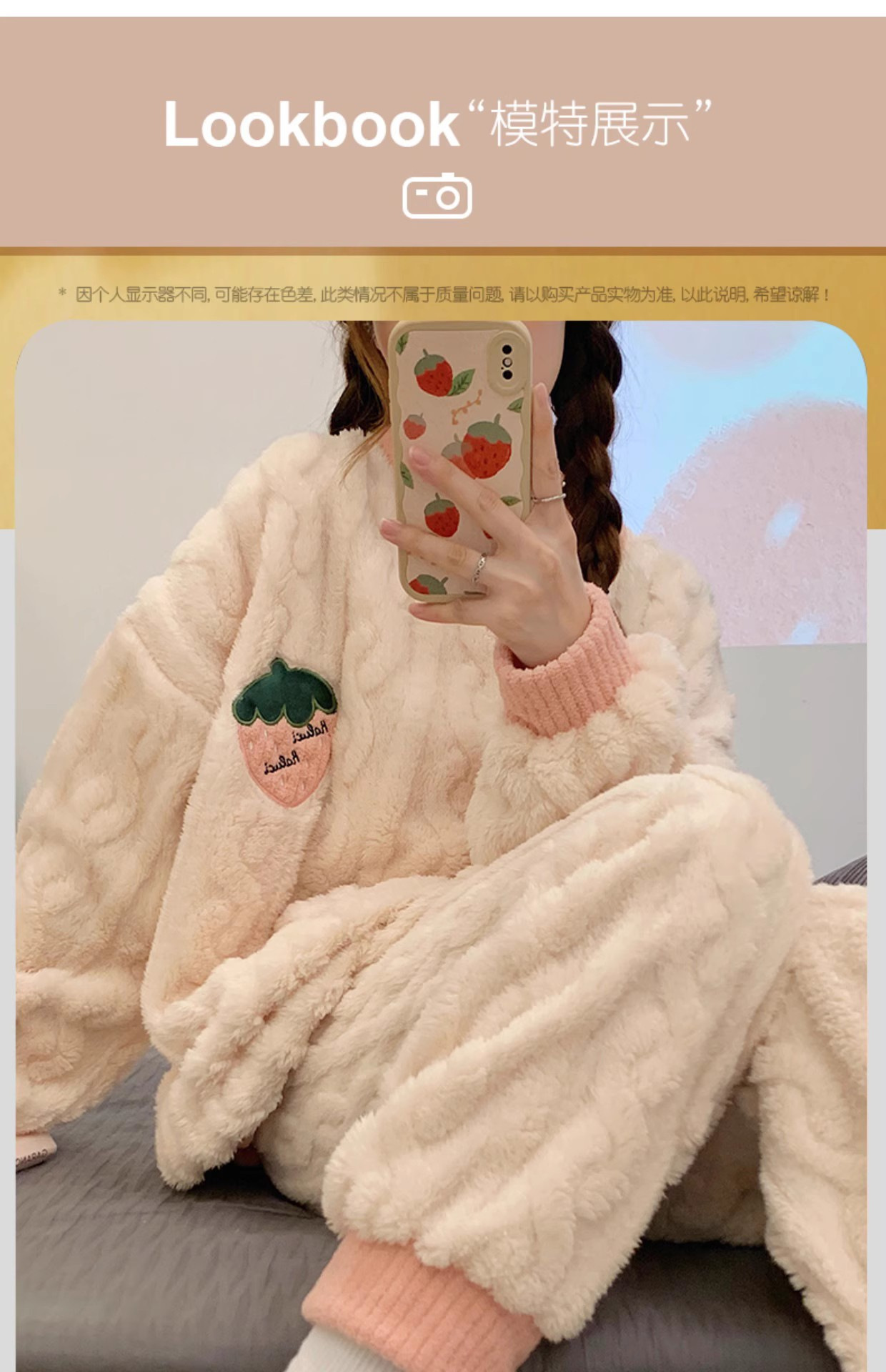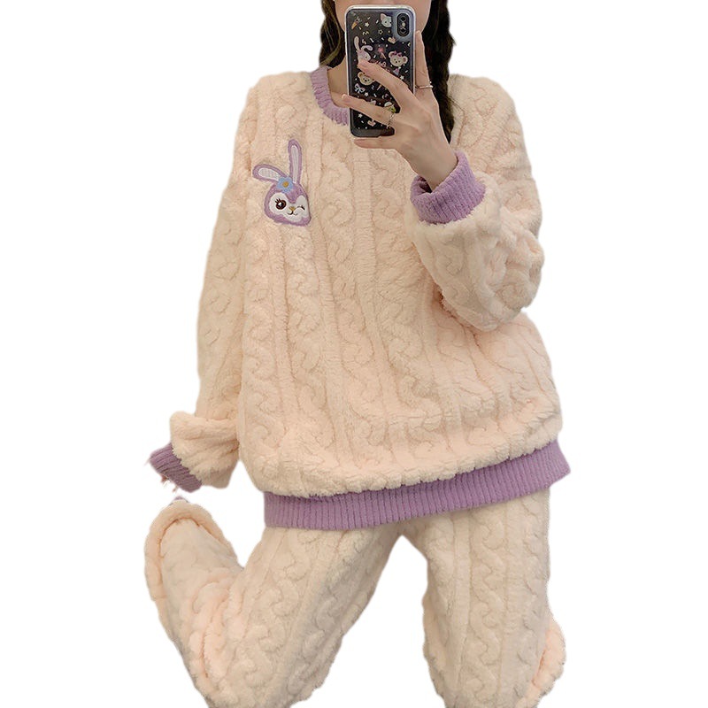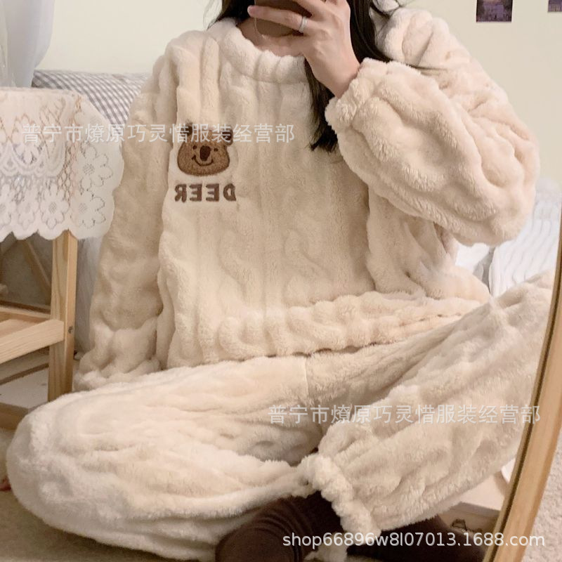 冬天加厚睡衣女长毛绒绣花卡通甜美加绒保暖ins网红家居服女套装