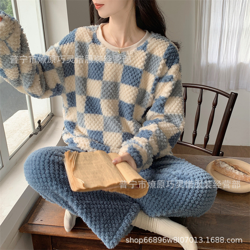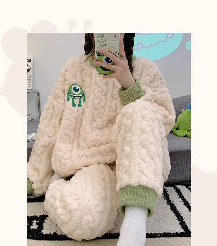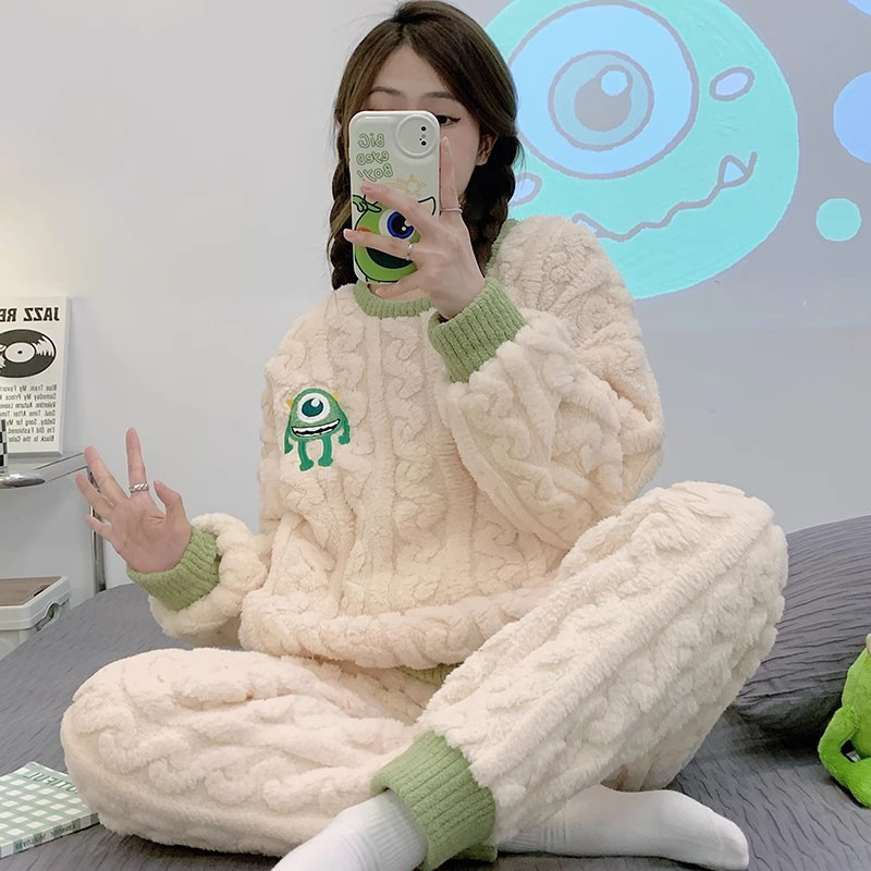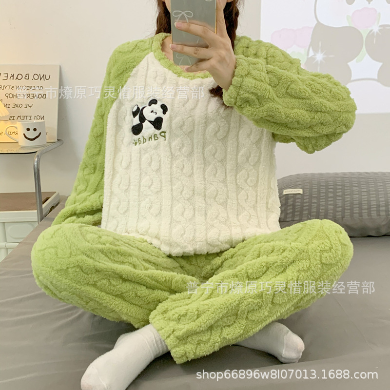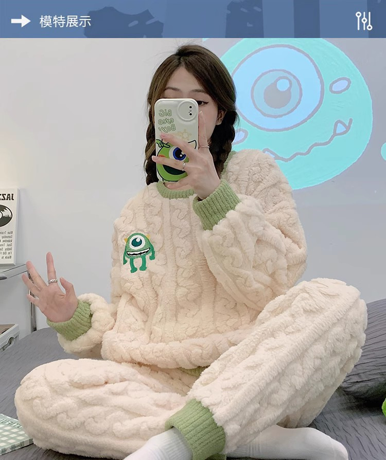 冬天加厚睡衣女长毛绒绣花卡通甜美加绒保暖ins网红家居服女套装