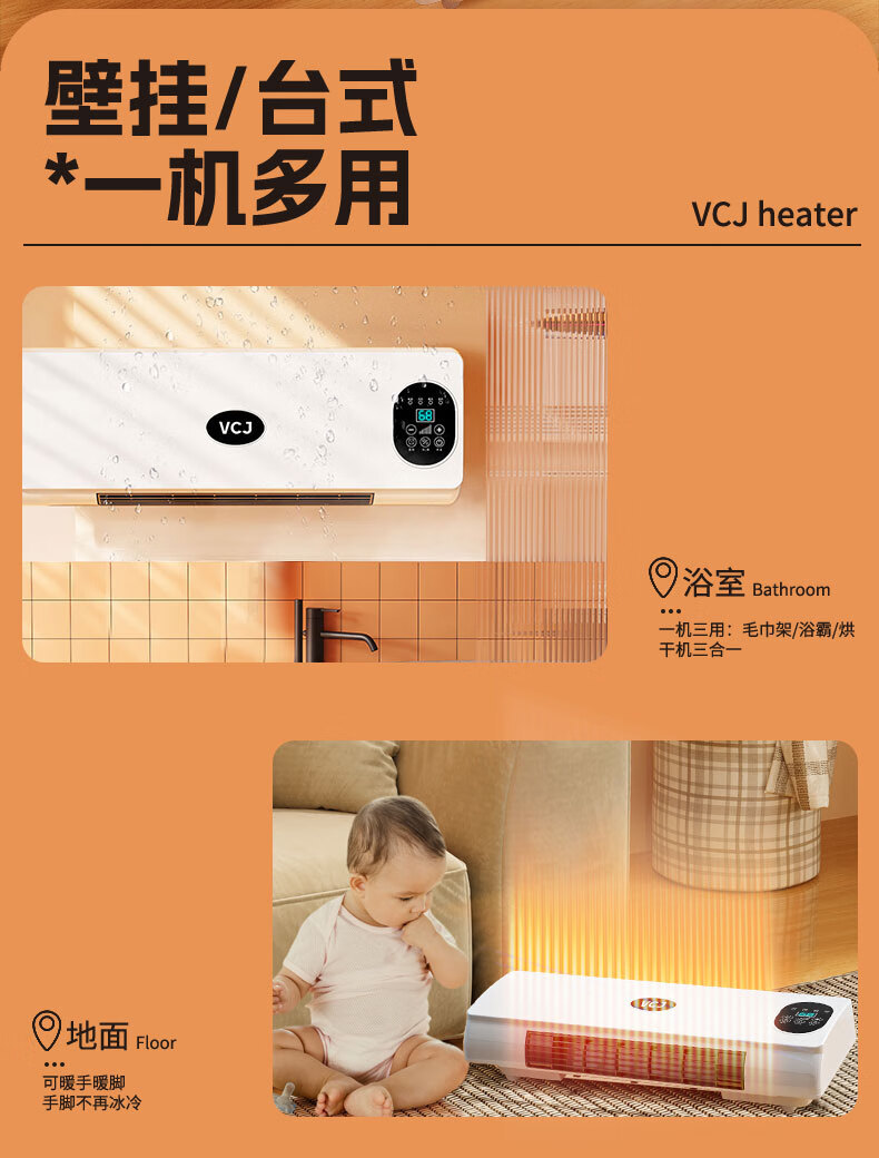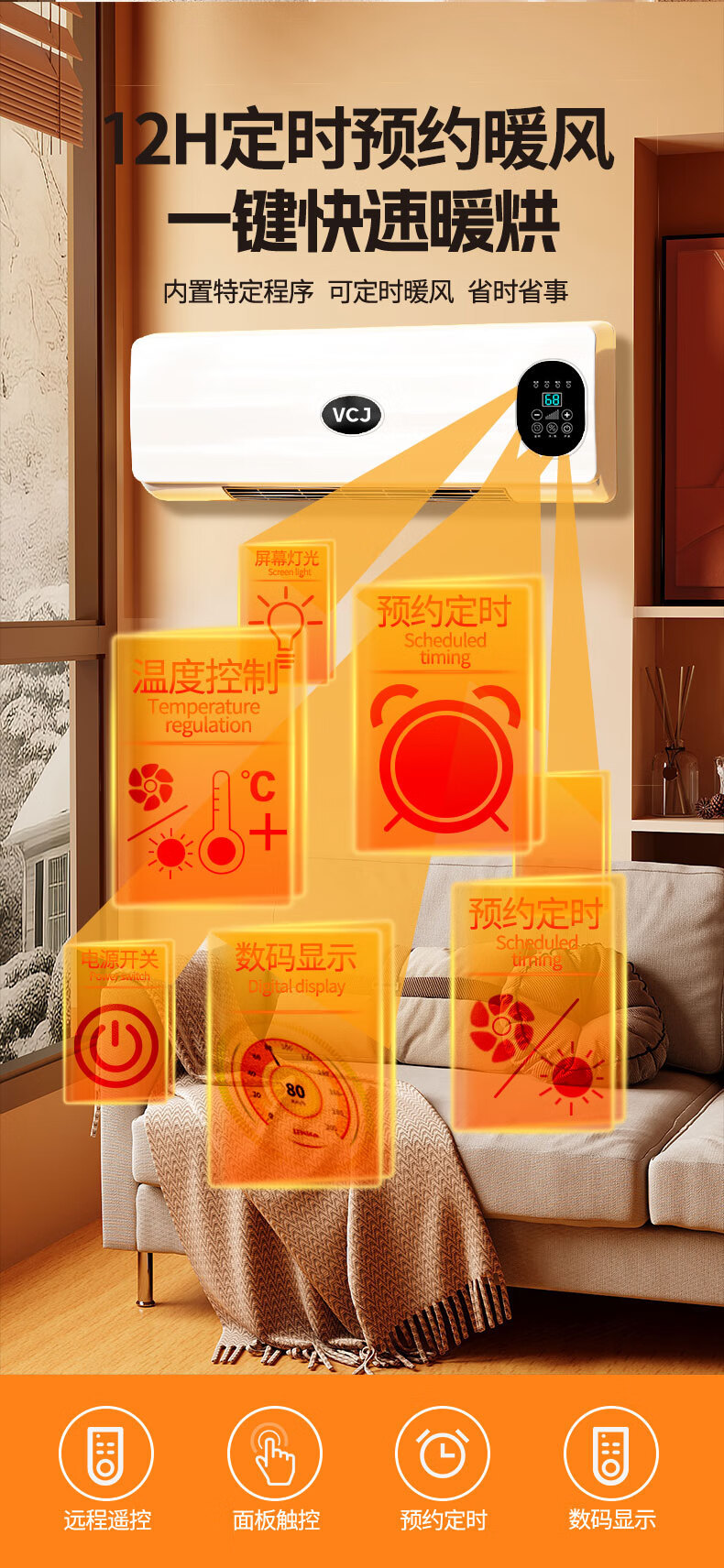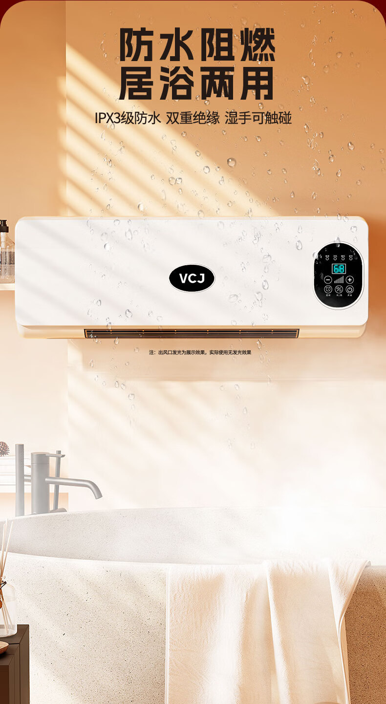 源头厂家暖风机免打孔壁挂取暖器遥控浴室冷暖两用电暖器智能恒温