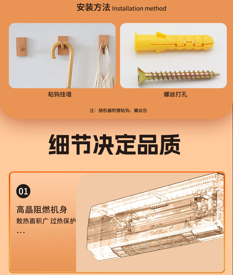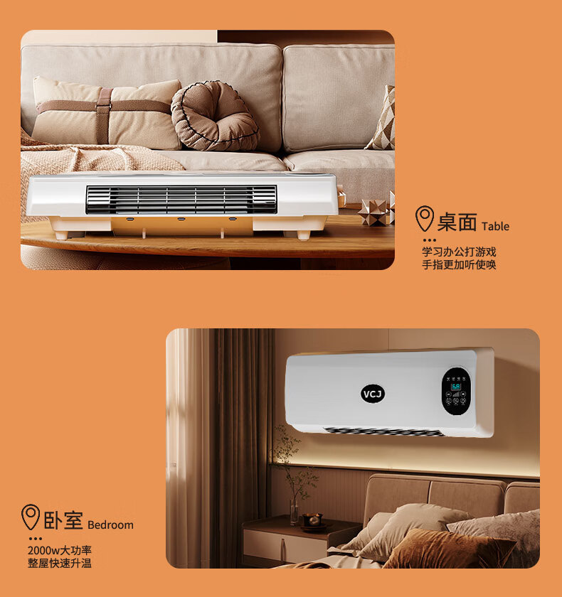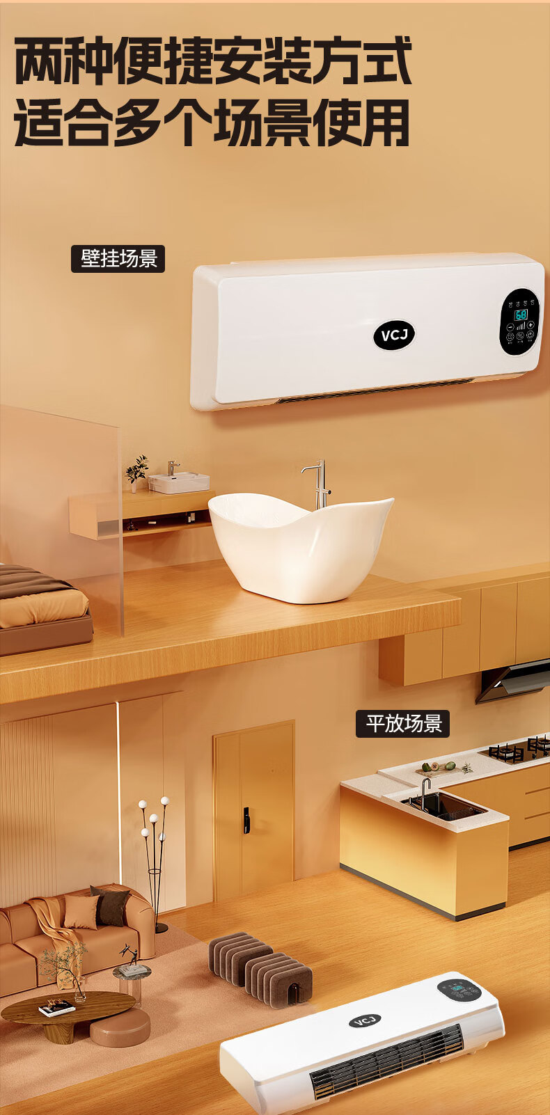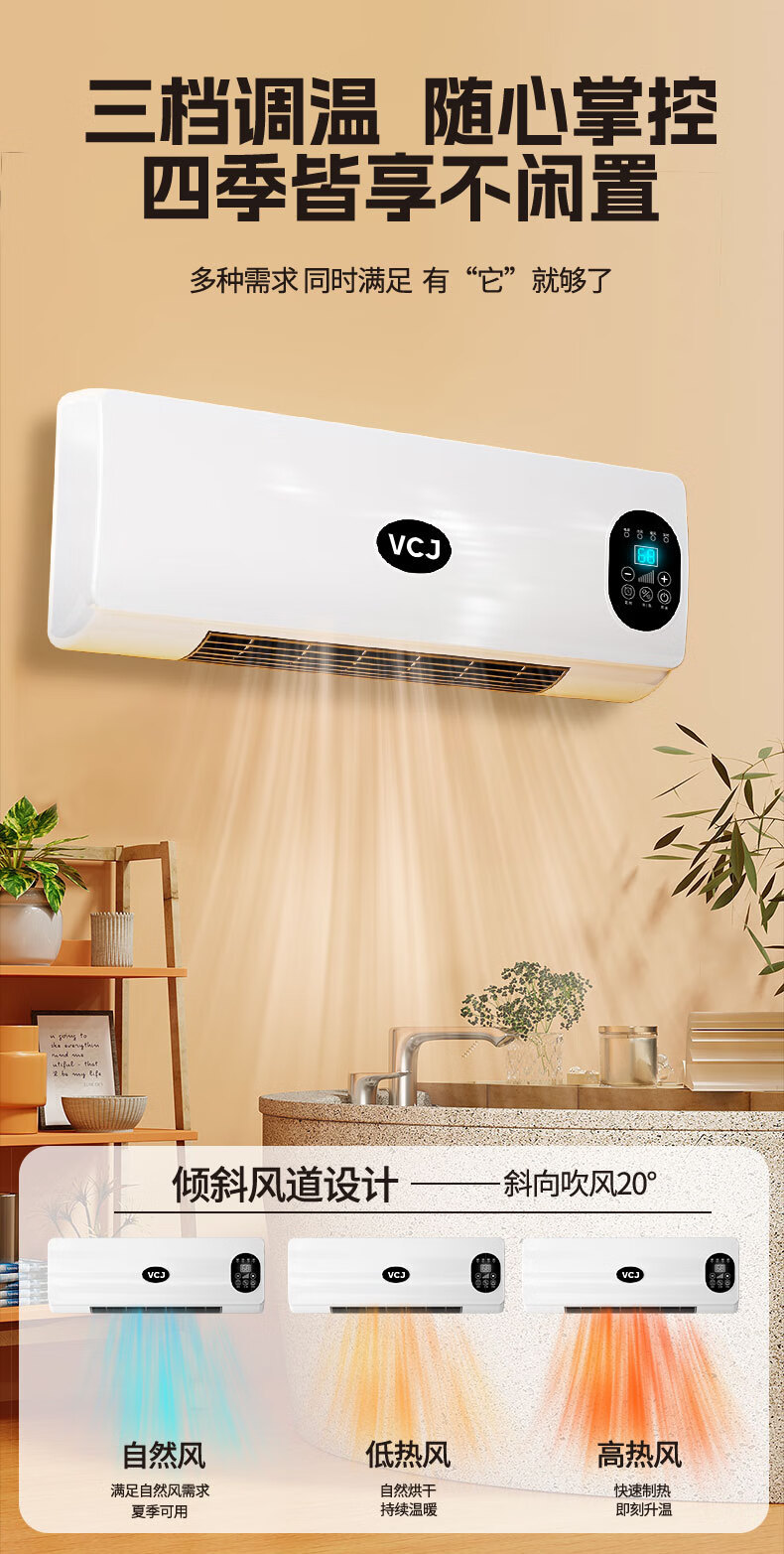 源头厂家暖风机免打孔壁挂取暖器遥控浴室冷暖两用电暖器智能恒温