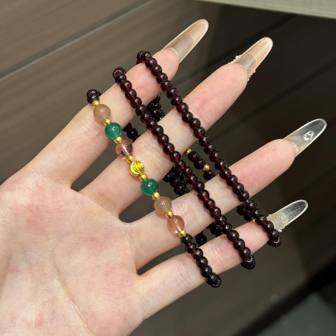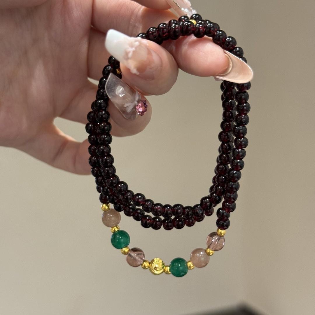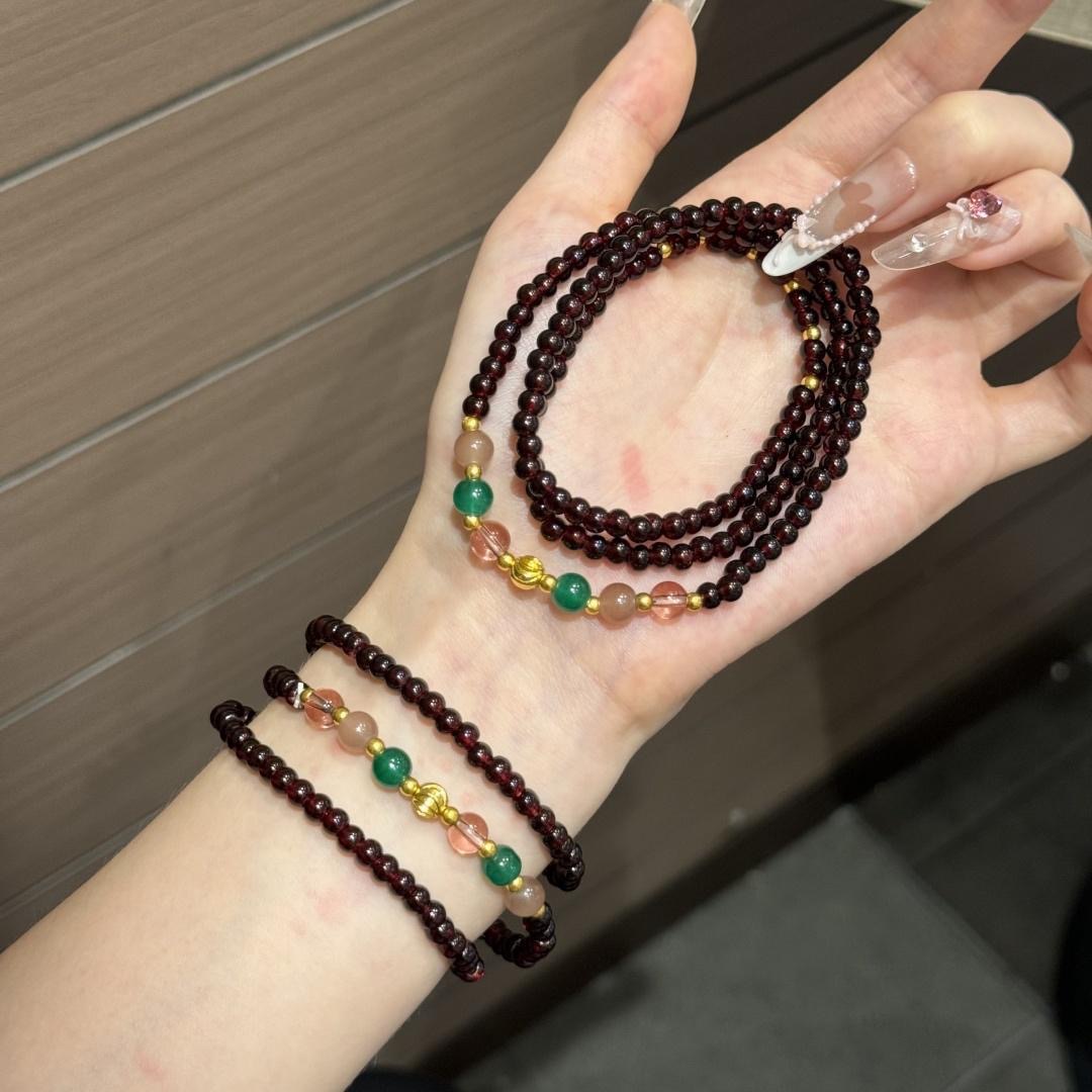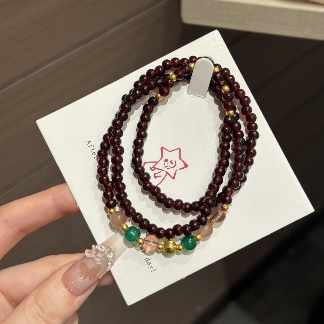玻璃无镶嵌中式三圈好运石榴红手串复古气质编织闺蜜手链