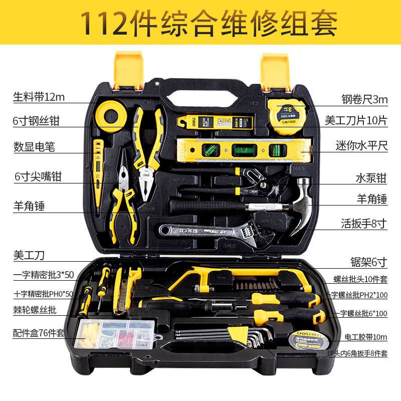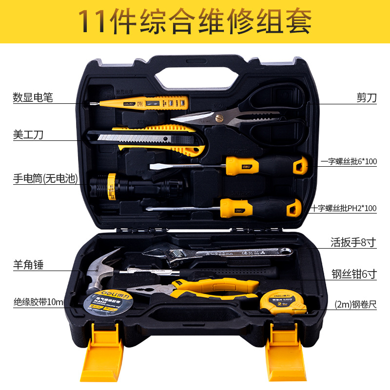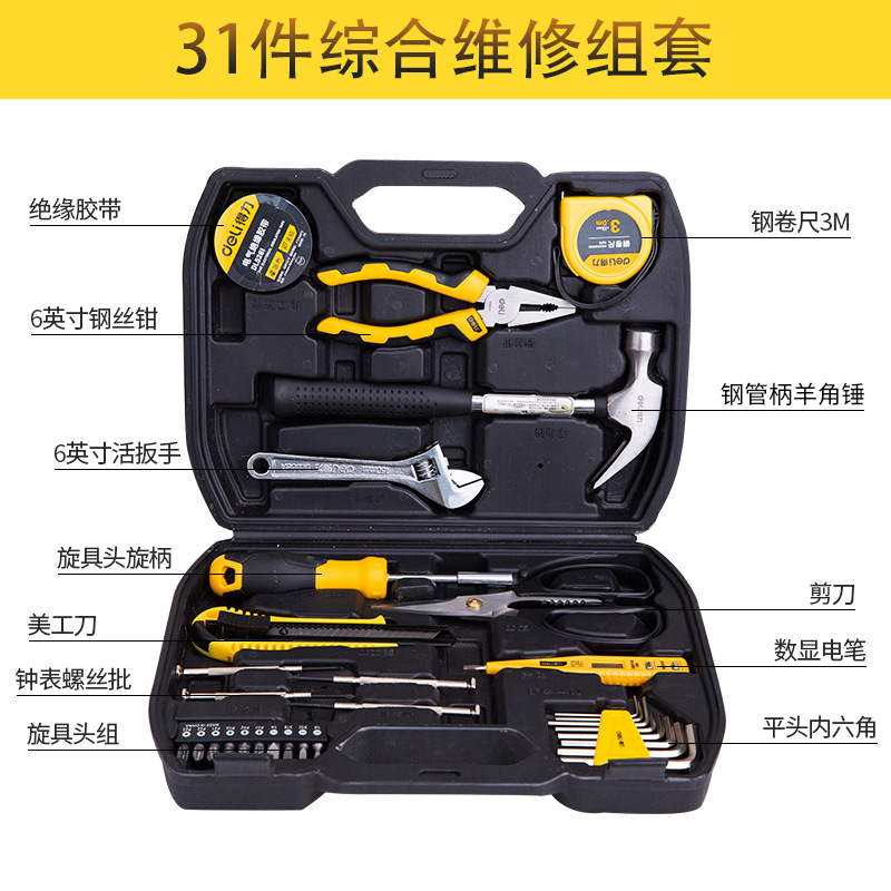 得力工具套装多功能家用工具箱五金工具电工手动综合维修组套套装