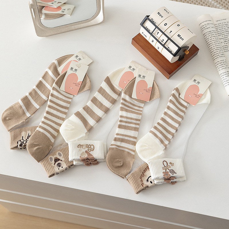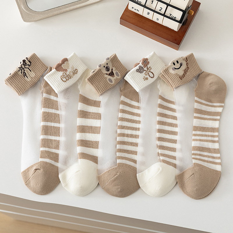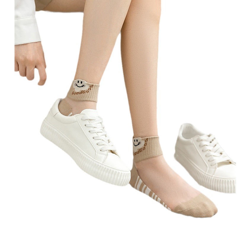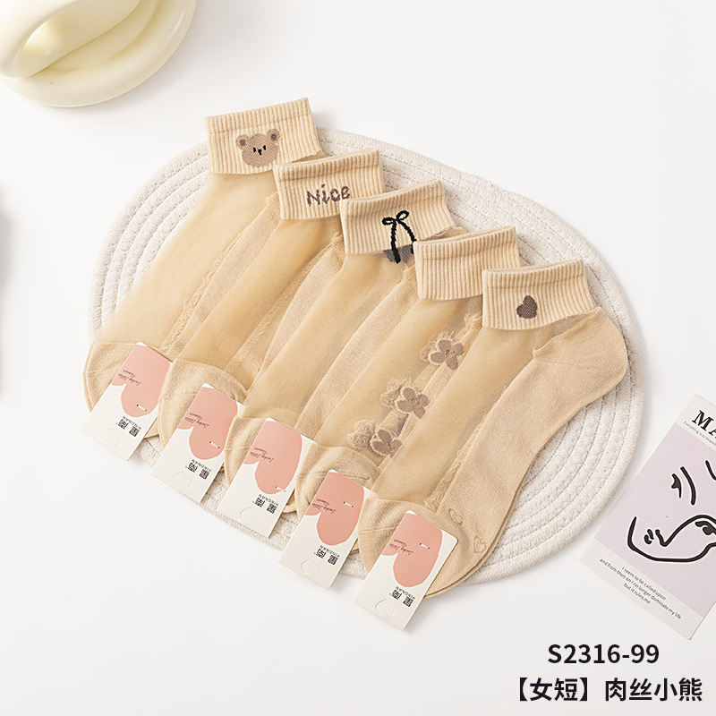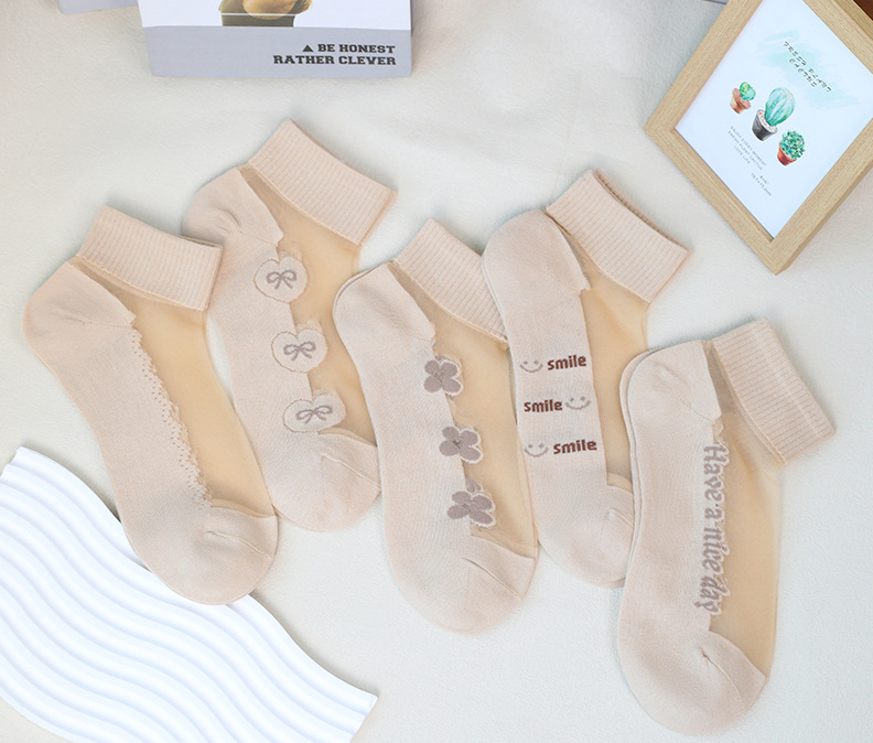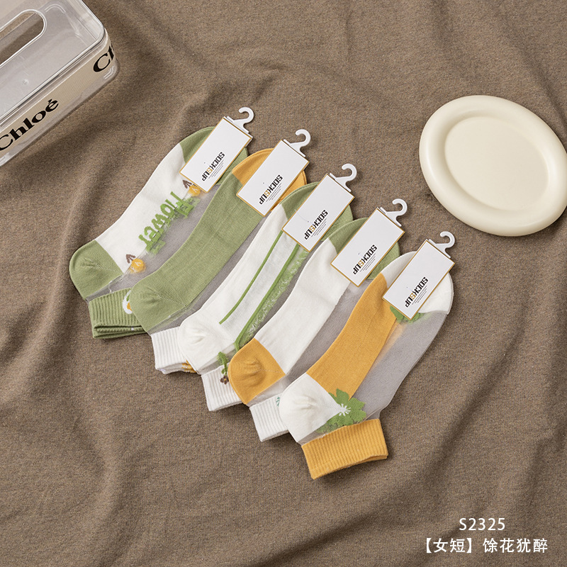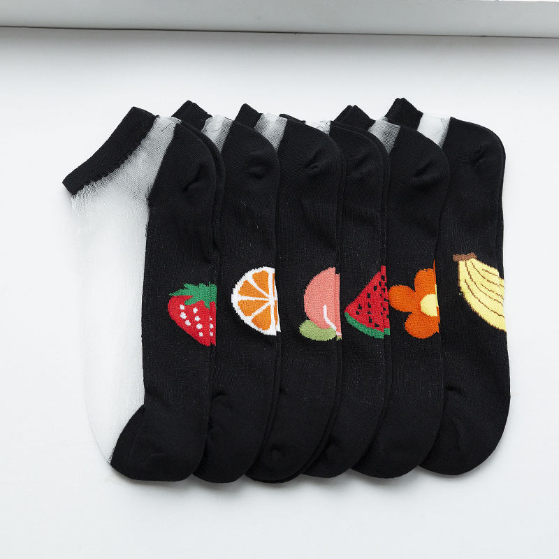 夏季水晶丝女袜棉底防滑吸湿透气卡丝女士短筒水果袜彩色女袜