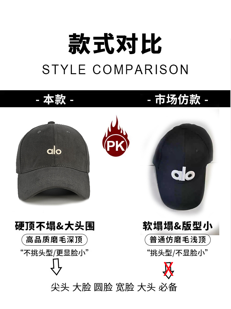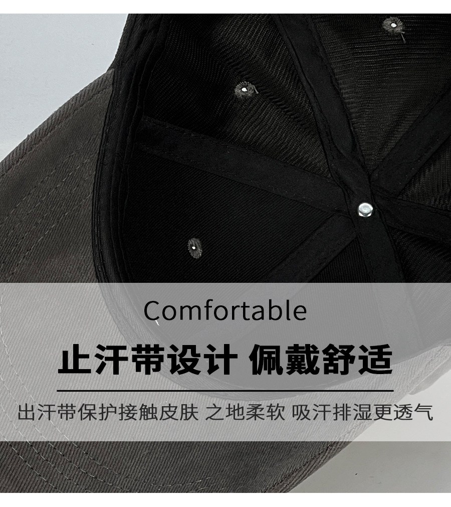 新款刺绣字母磨毛硬顶棒球帽女大头围宽檐显脸小遮阳防晒鸭舌帽男