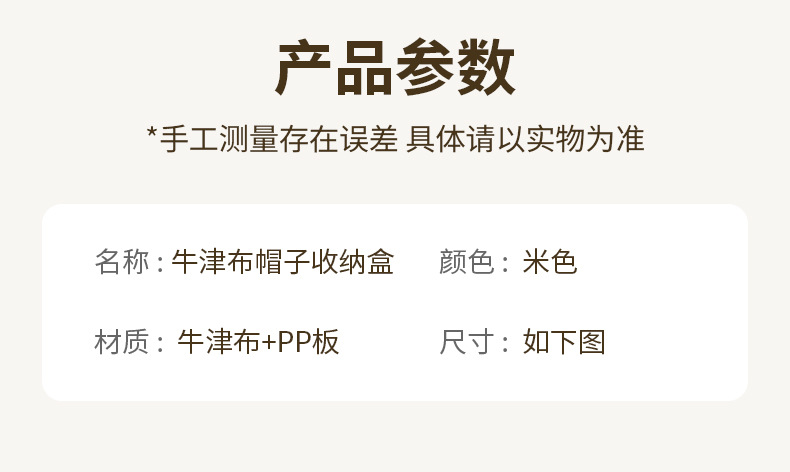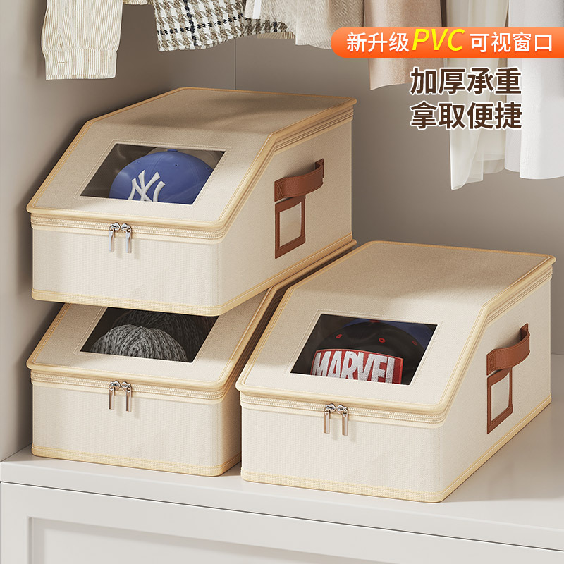 跨境牛津布帽子收纳盒拉链盒帽子防尘收纳盒升级款棒球帽储物盒