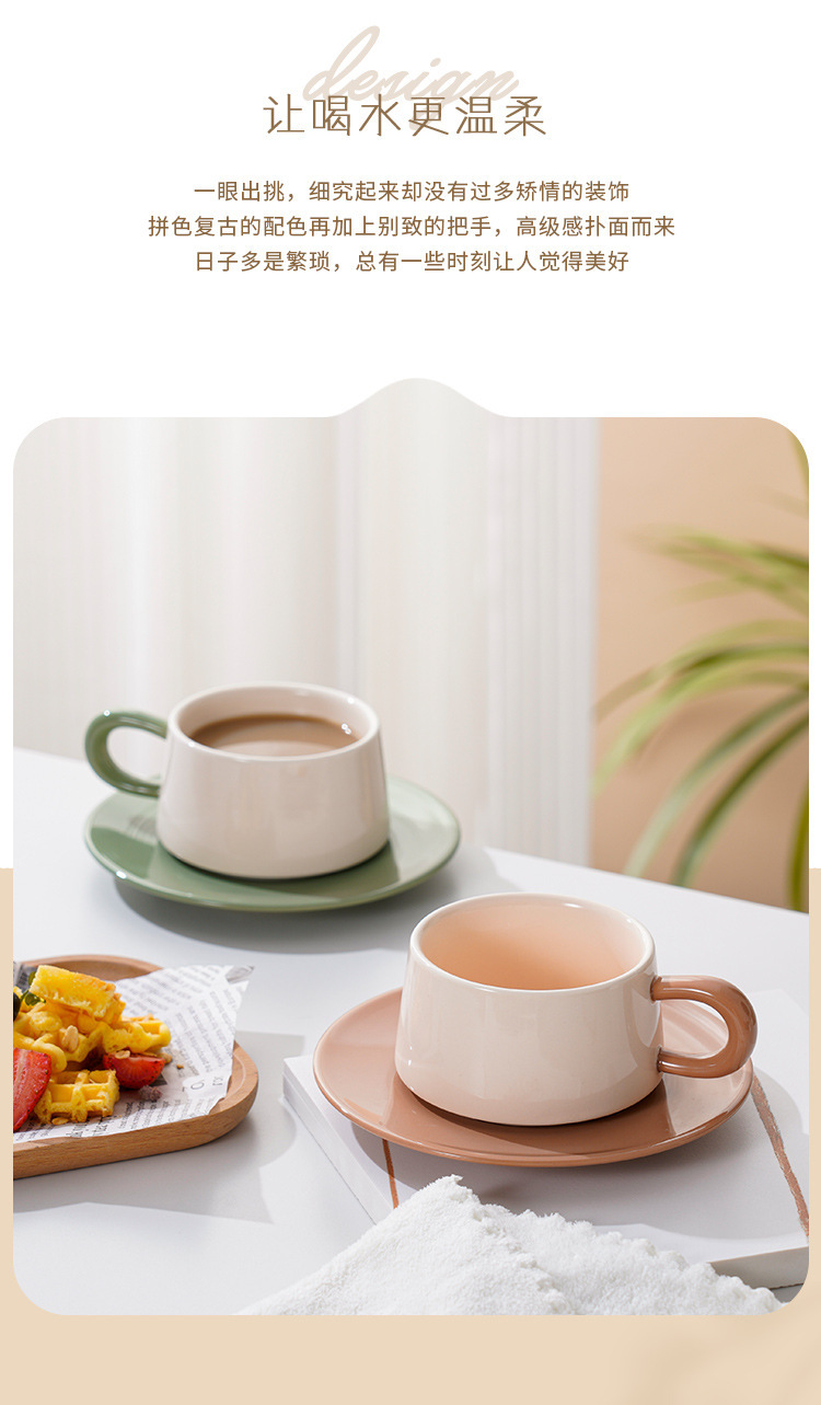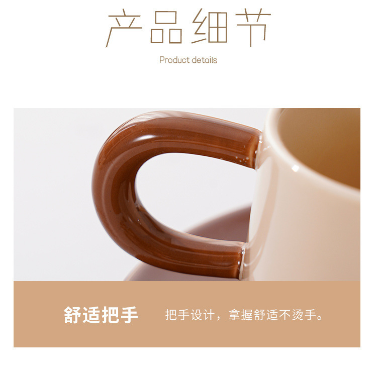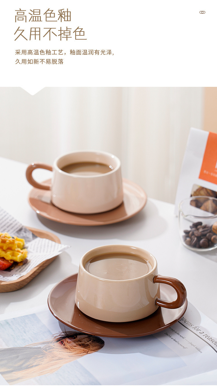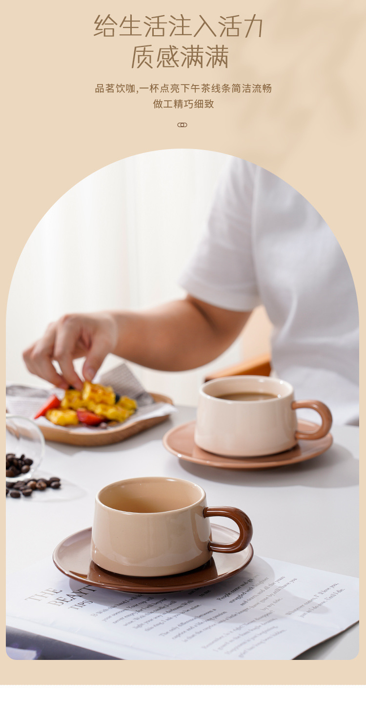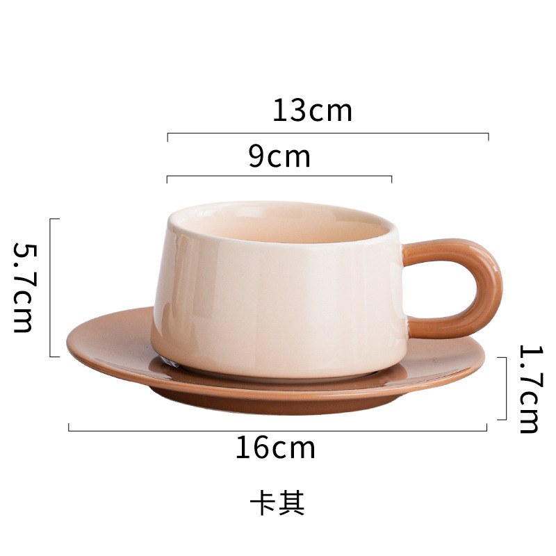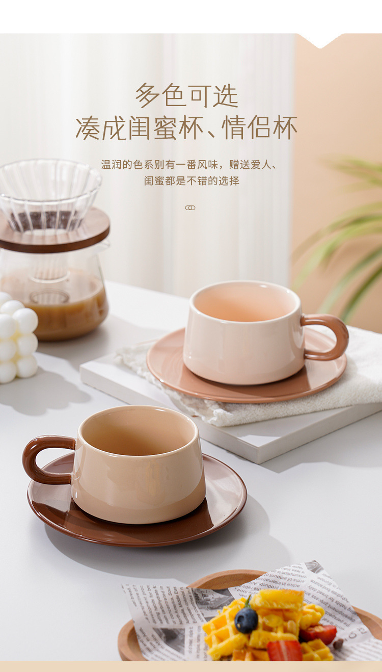 复古简约小众欧式意式杏咖色咖啡杯碟套装陶瓷拿铁杯下午茶水杯