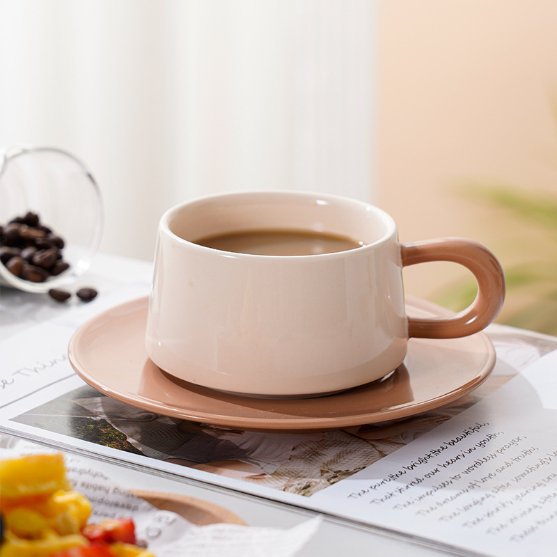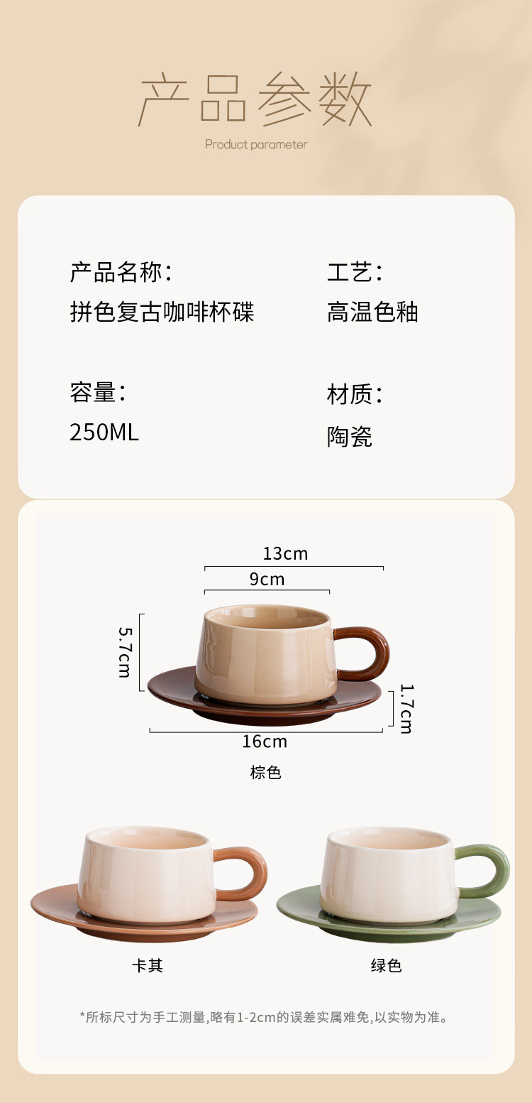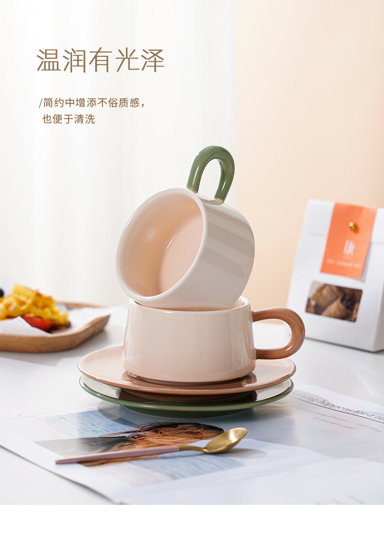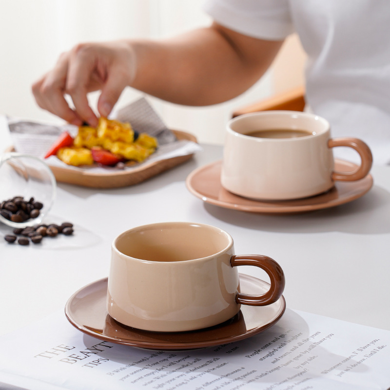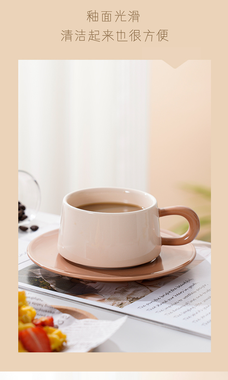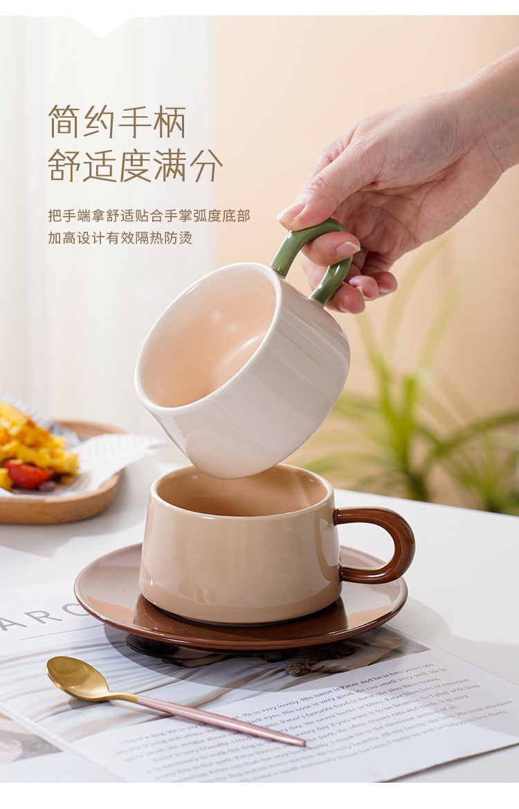 复古简约小众欧式意式杏咖色咖啡杯碟套装陶瓷拿铁杯下午茶水杯