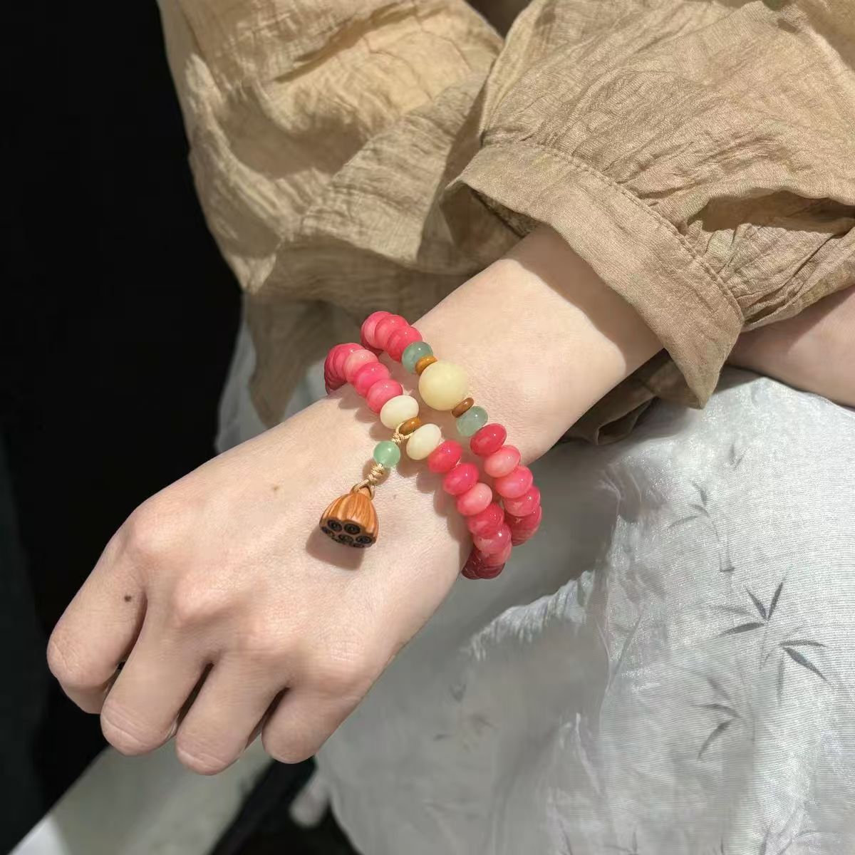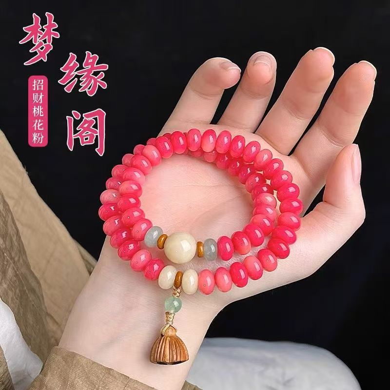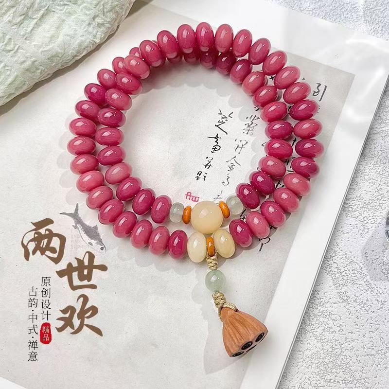 新款粉色禅意手串双圈算盘珠文玩菩提子佛珠手持女士款盘玩手链