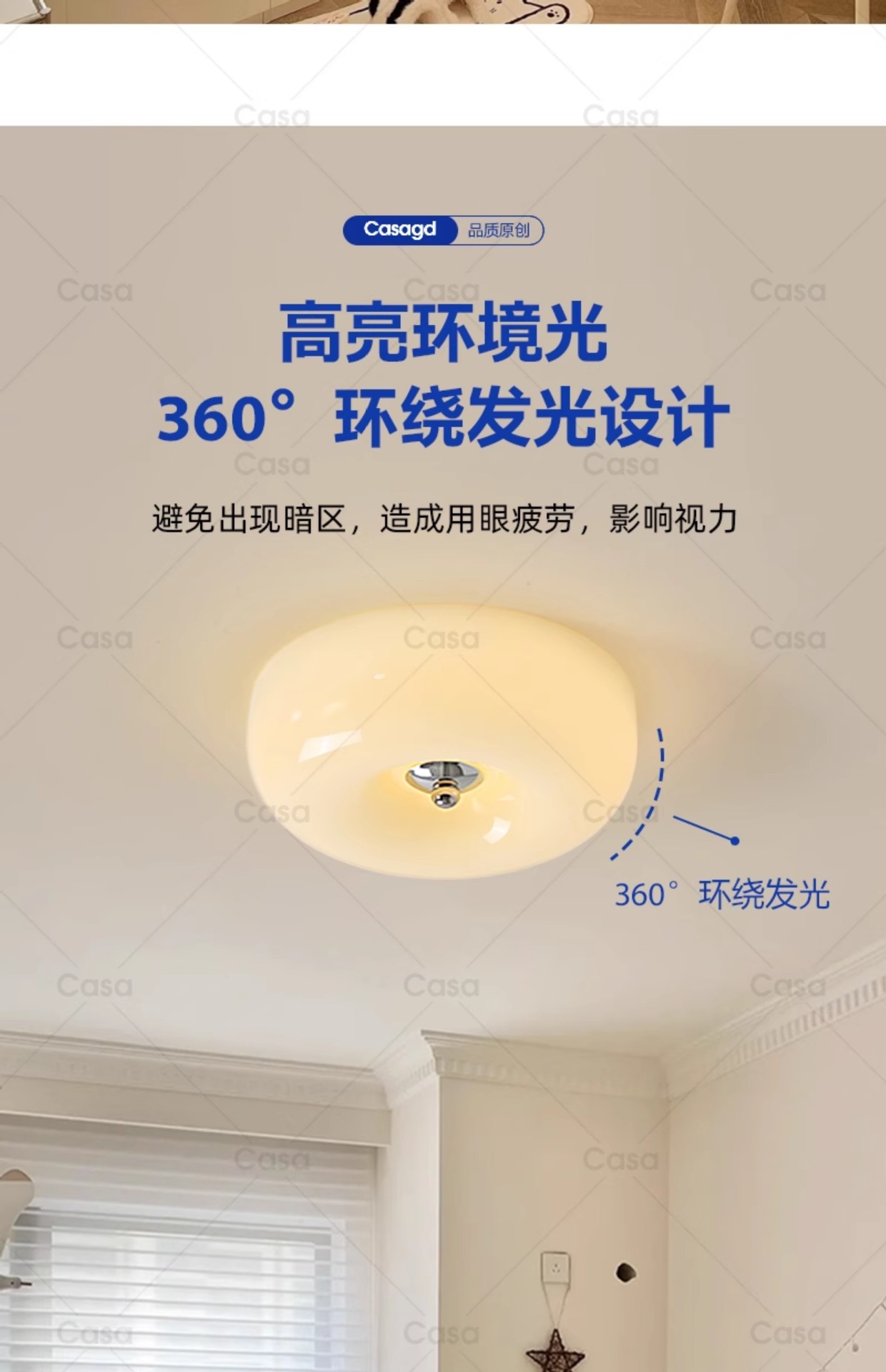 全光谱护眼儿童房卧室吸顶灯奶油风新款男女孩房间布丁灯具casagd