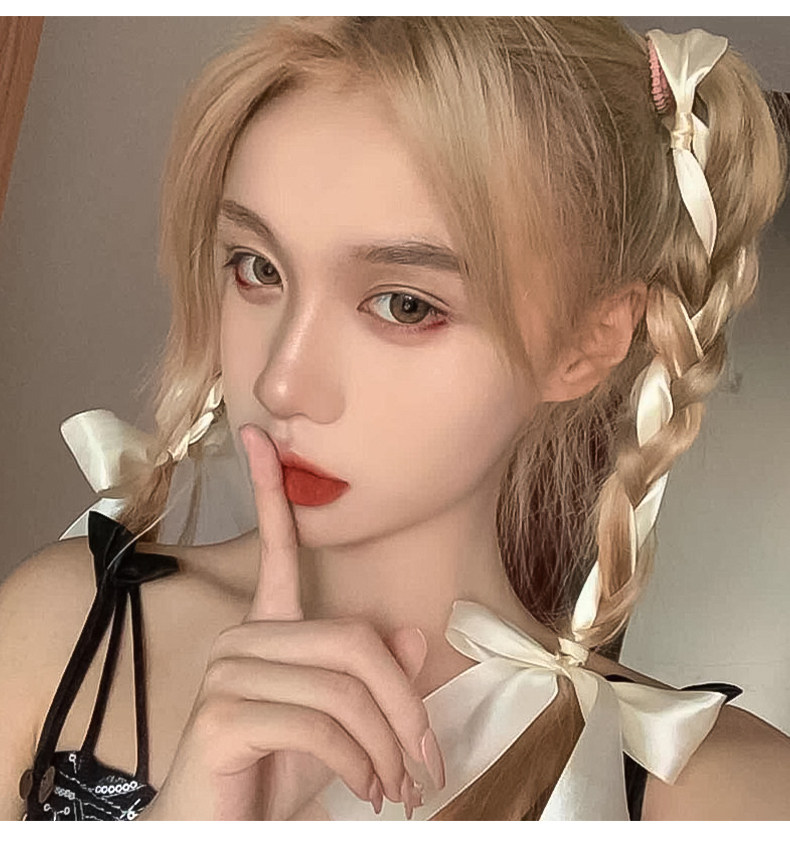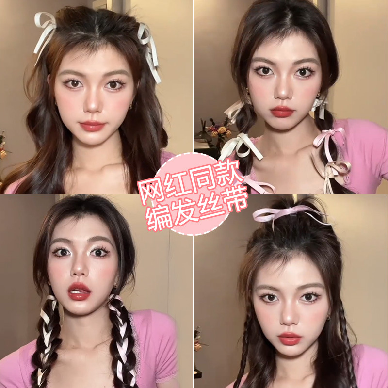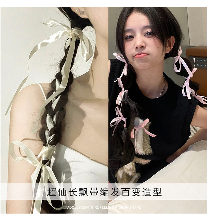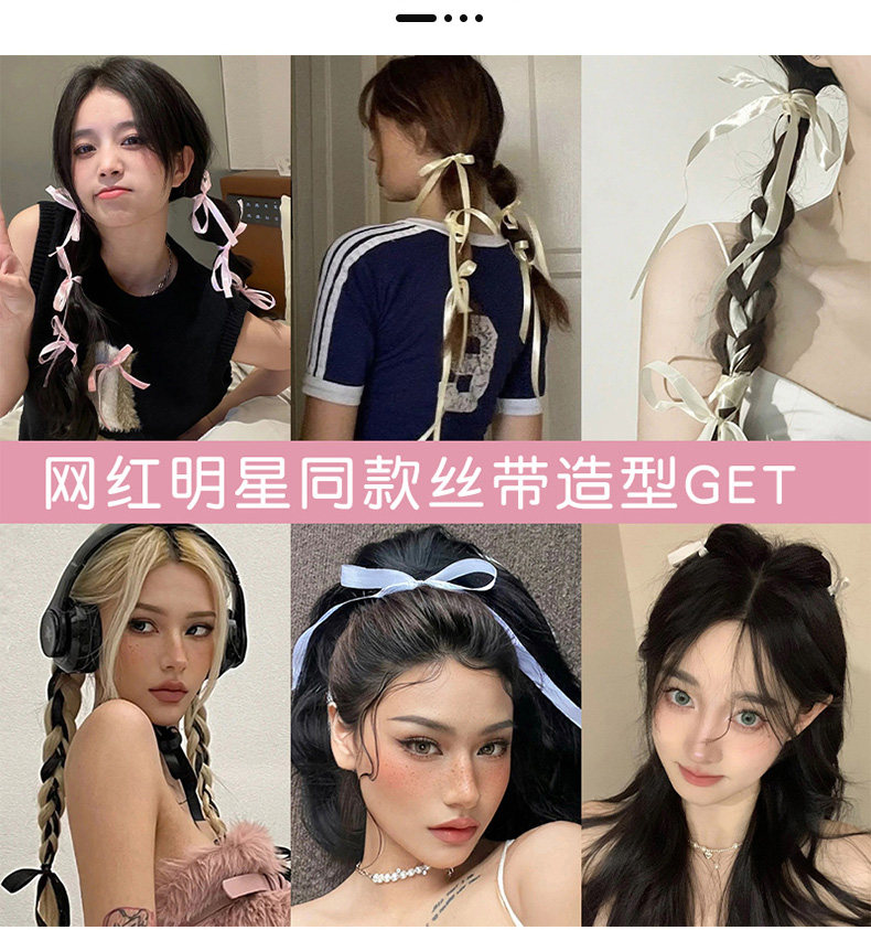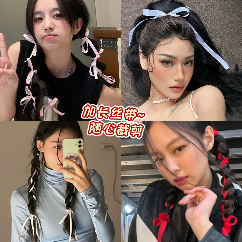 双马尾编发丝带头饰白色绑发蝴蝶结发饰发带女扎头发绑带飘带头绳