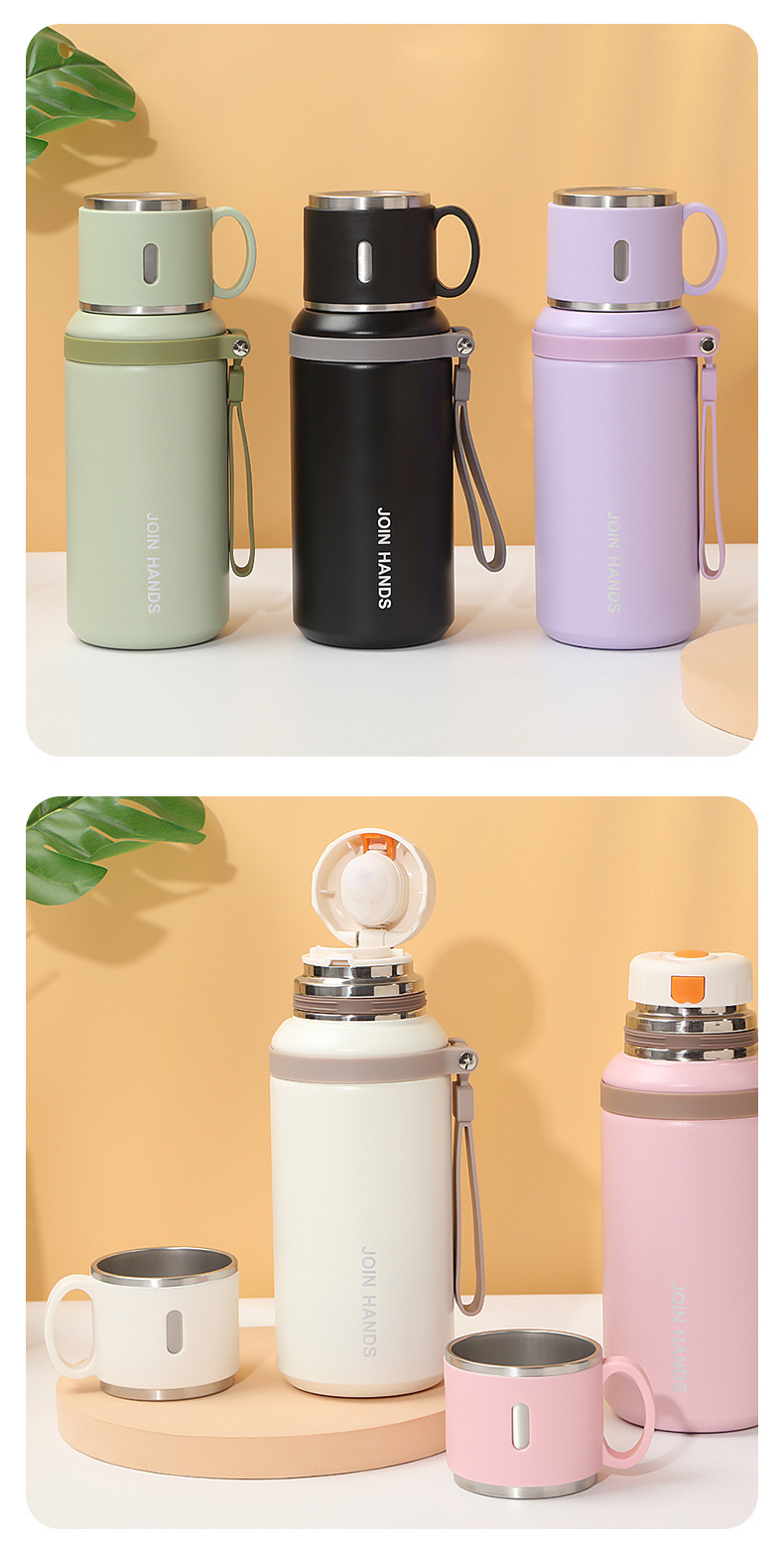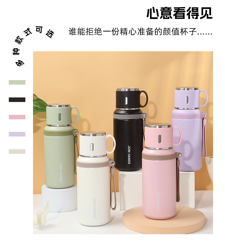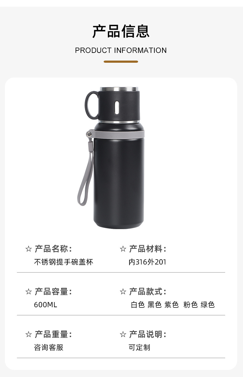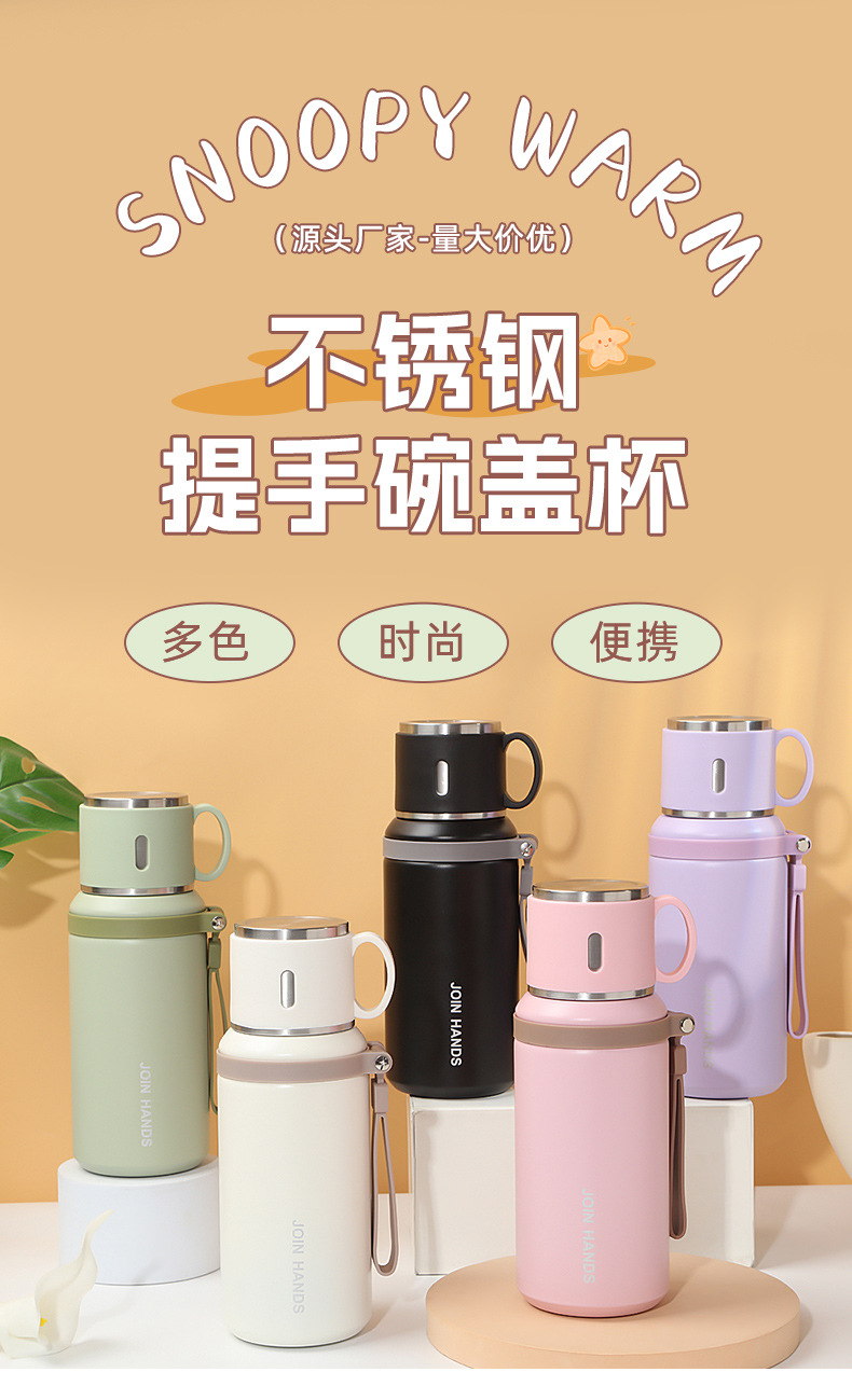 高颜值碗盖手提保温杯户外运动便携手提水杯316不锈钢保温壶现货