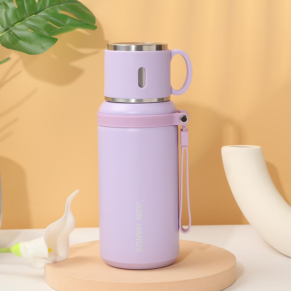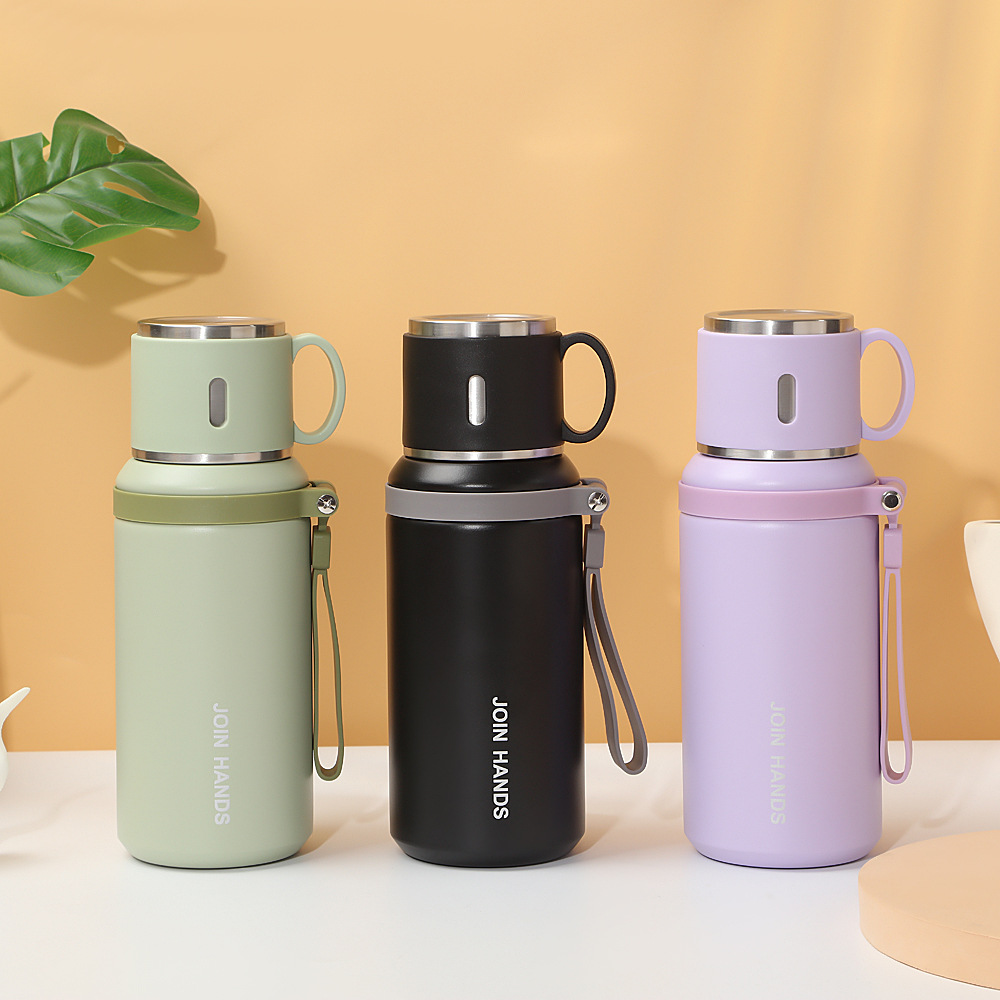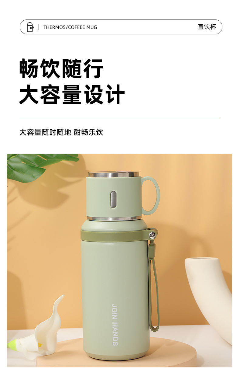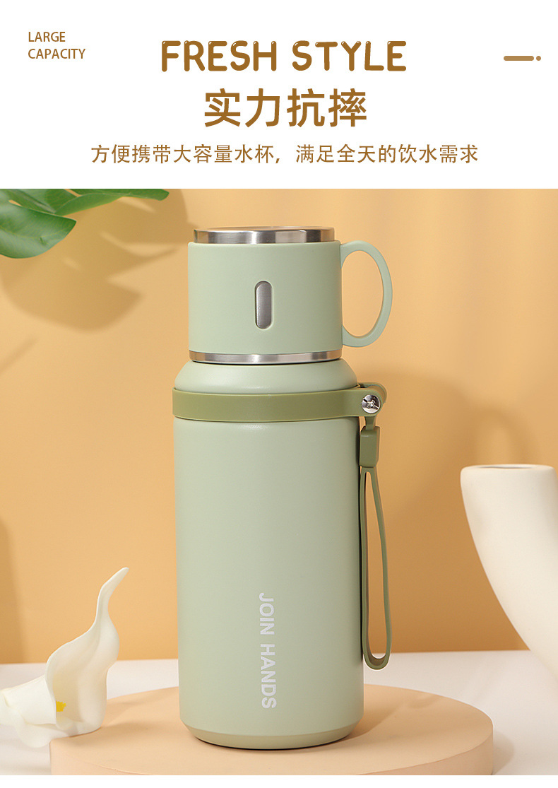 高颜值碗盖手提保温杯户外运动便携手提水杯316不锈钢保温壶现货