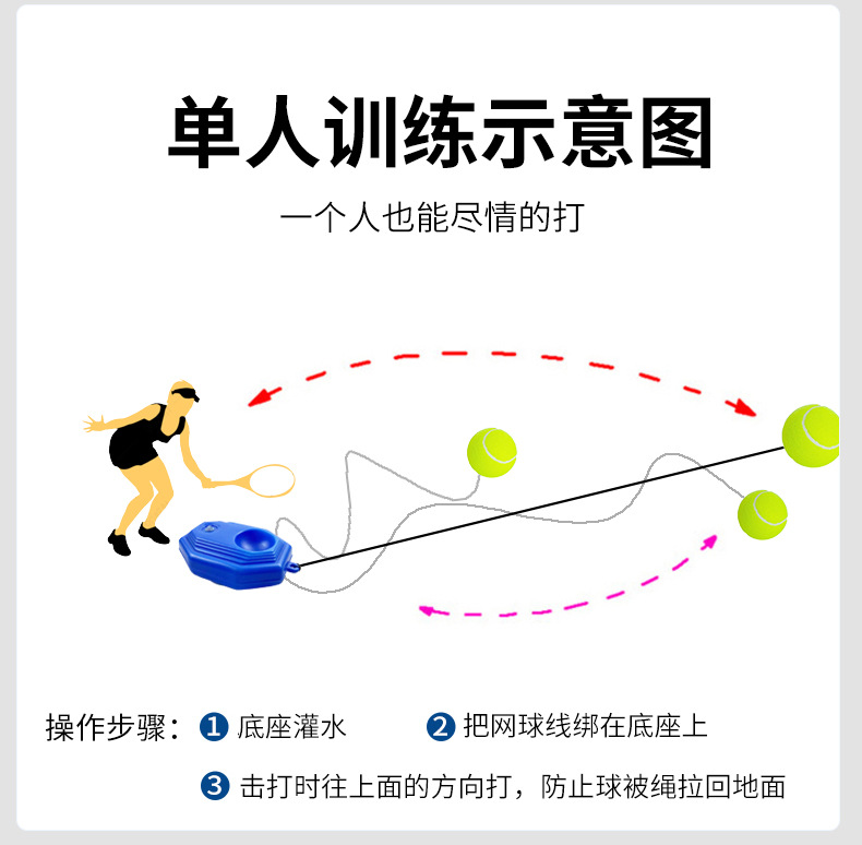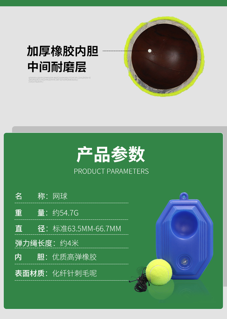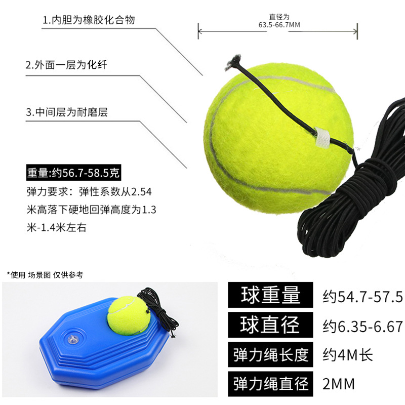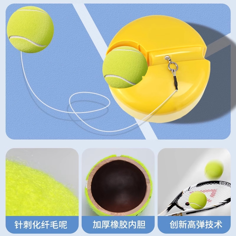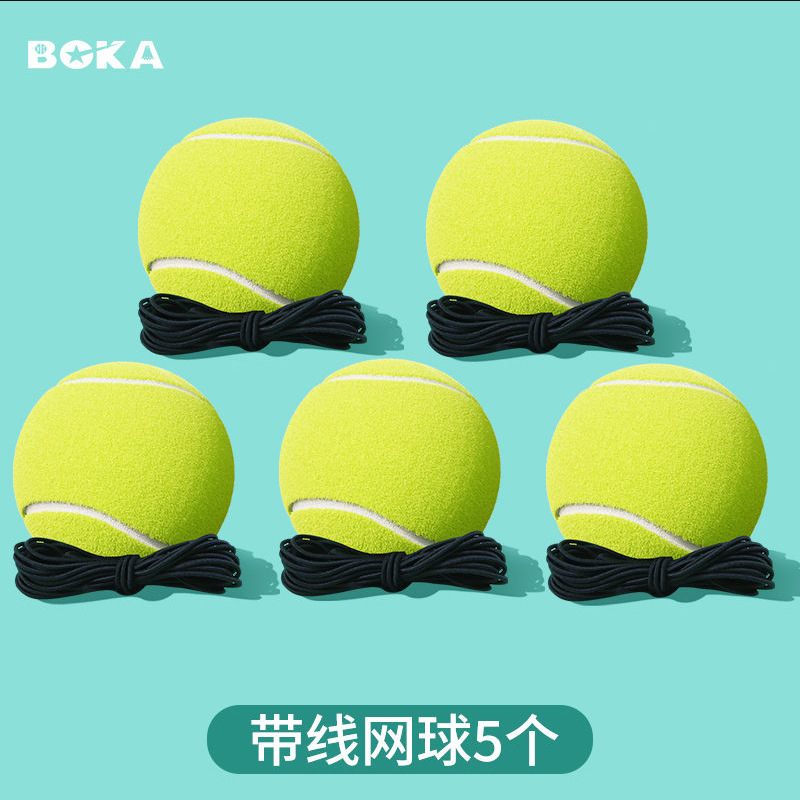 博卡带线网球回弹训练器弹力绳耐打初级训练网球可穿绳初学者高弹