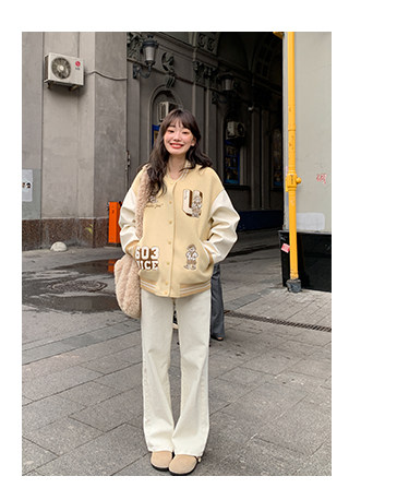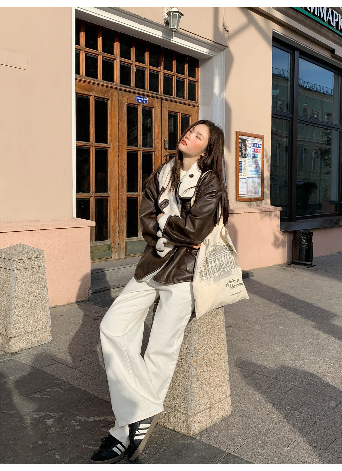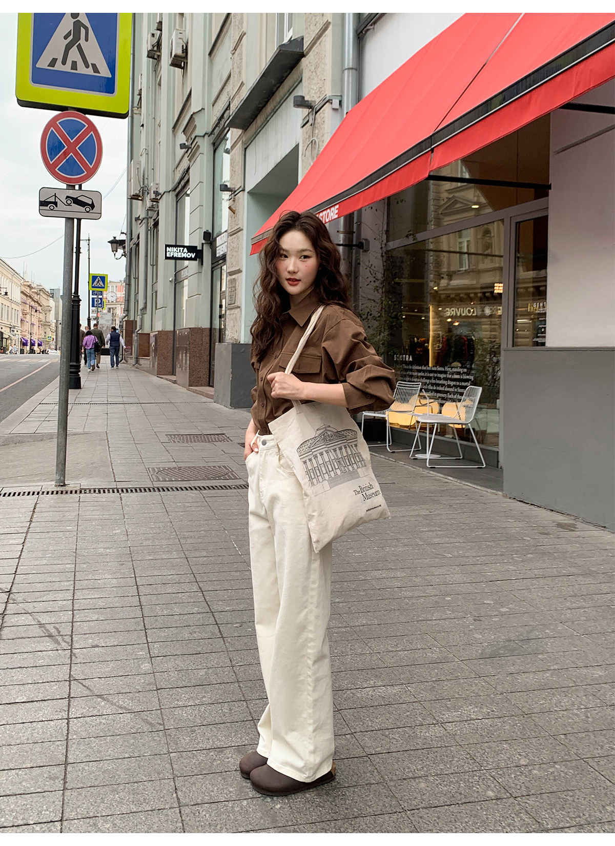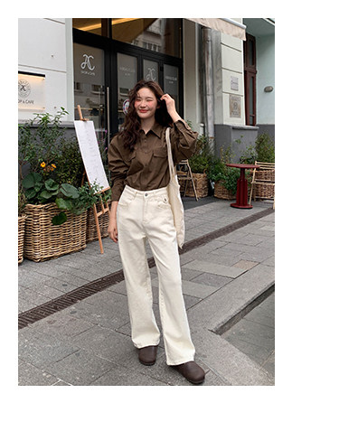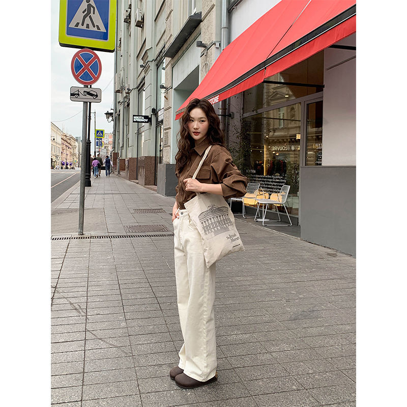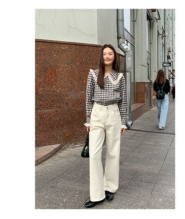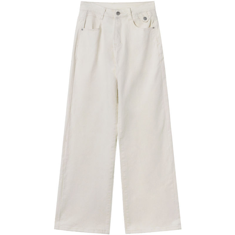 白色高腰牛仔裤女秋2025新款宽松小个子显瘦休闲直筒裤