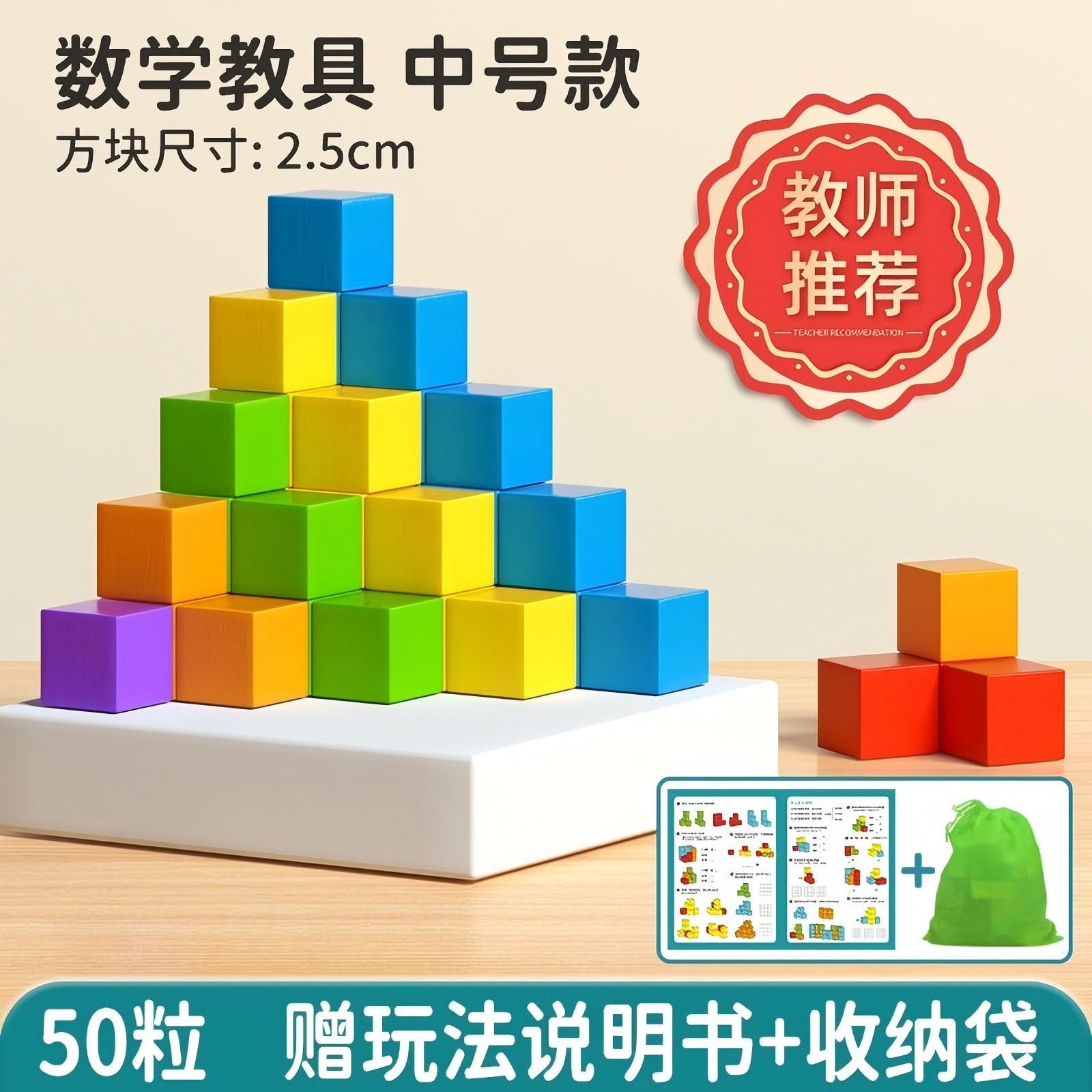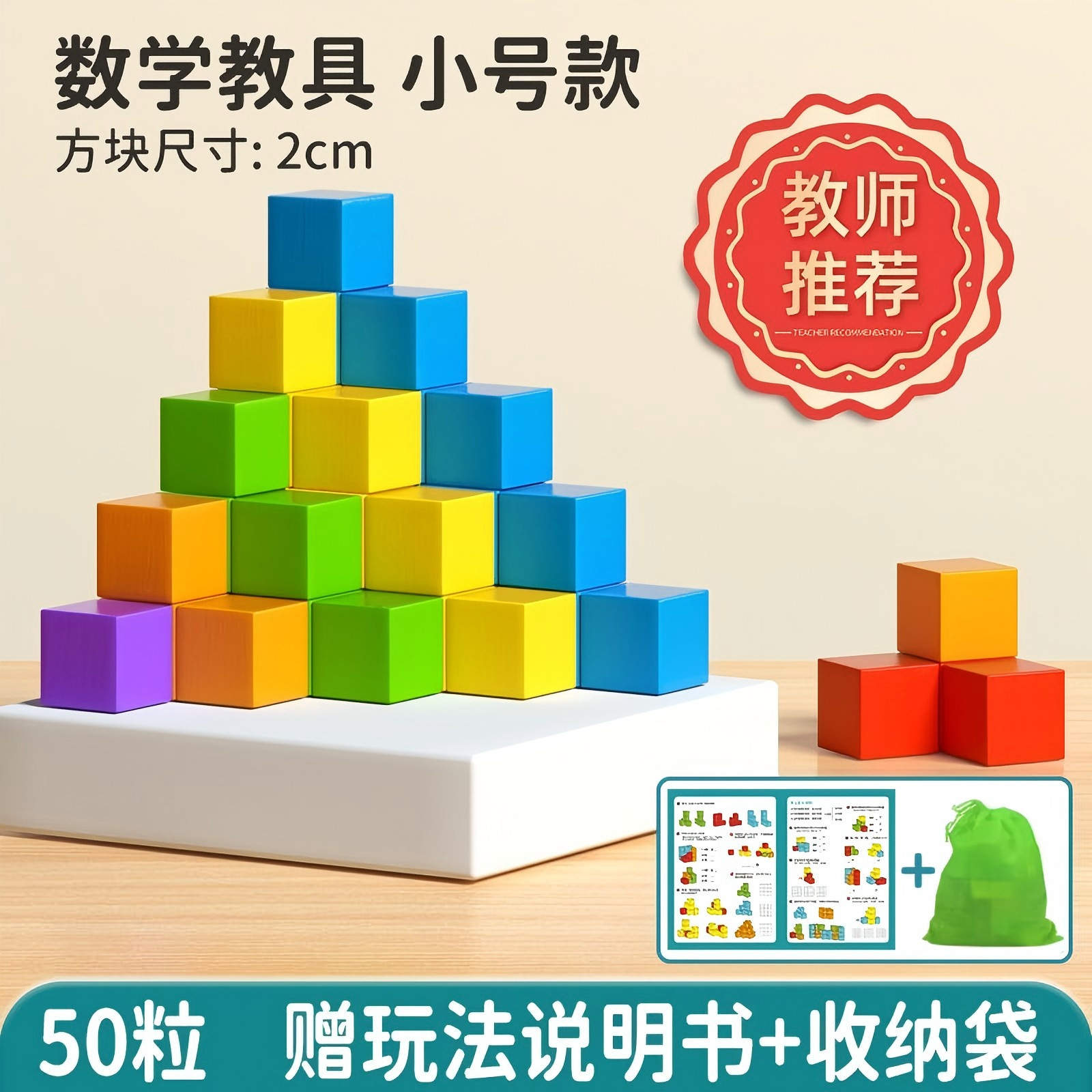 正方体积木数学教具儿童大颗粒益智拼装玩具层层叠彩色小方块早教