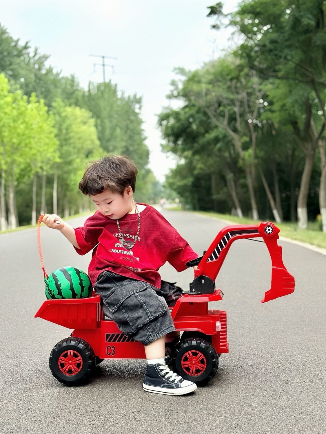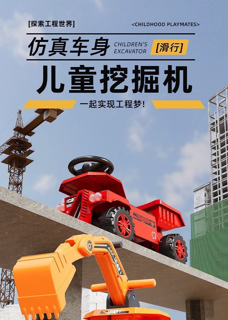 大号儿童工程车四轮滑行车1-3-5岁扭扭车宝宝翻斗车沙滩玩具童车