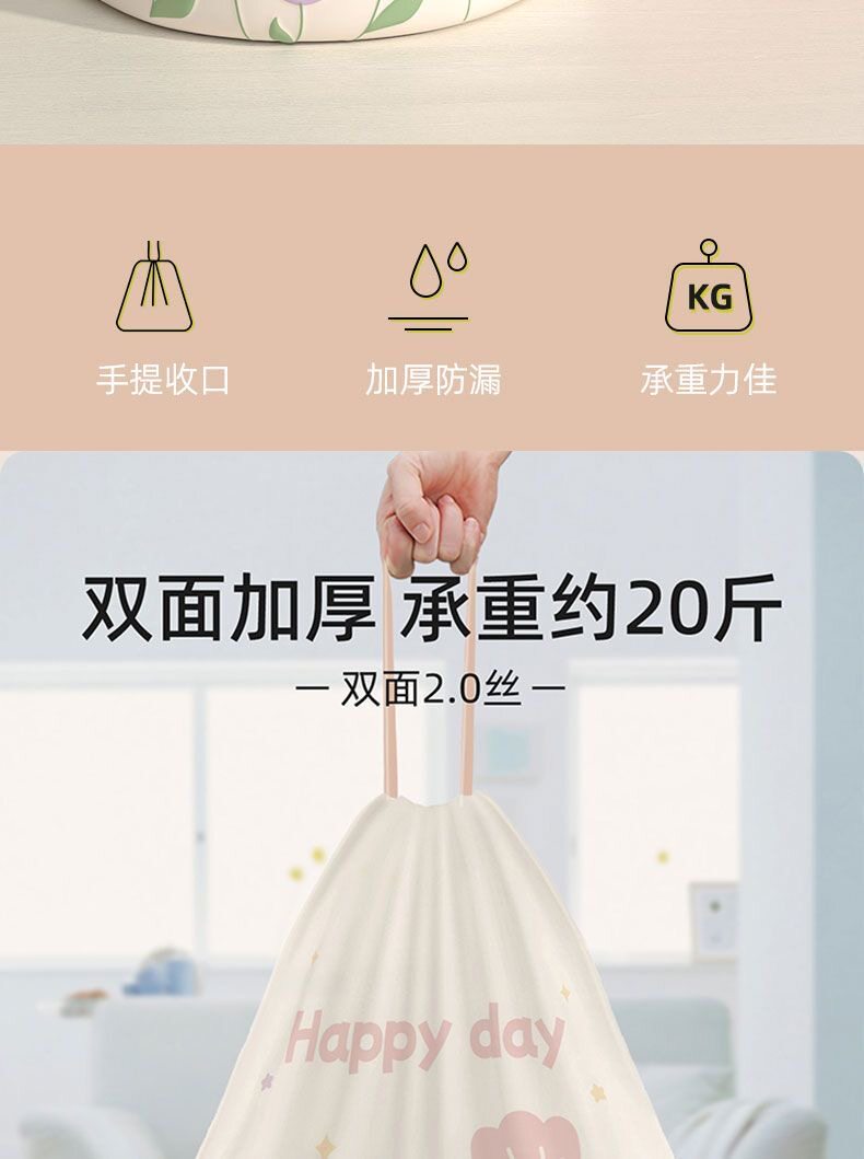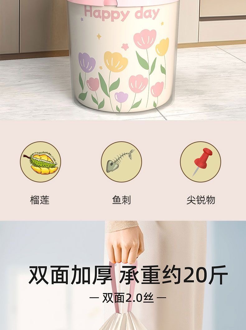 抽绳垃圾袋家用加厚手提式厨房除臭特厚大号一次性免撕抽绳垃圾袋