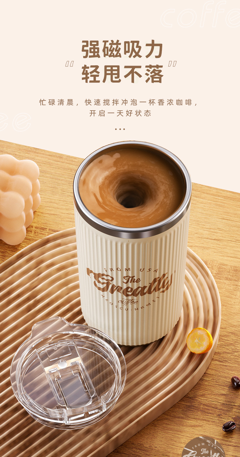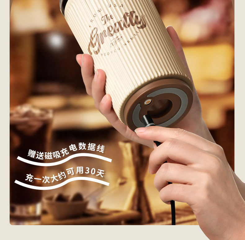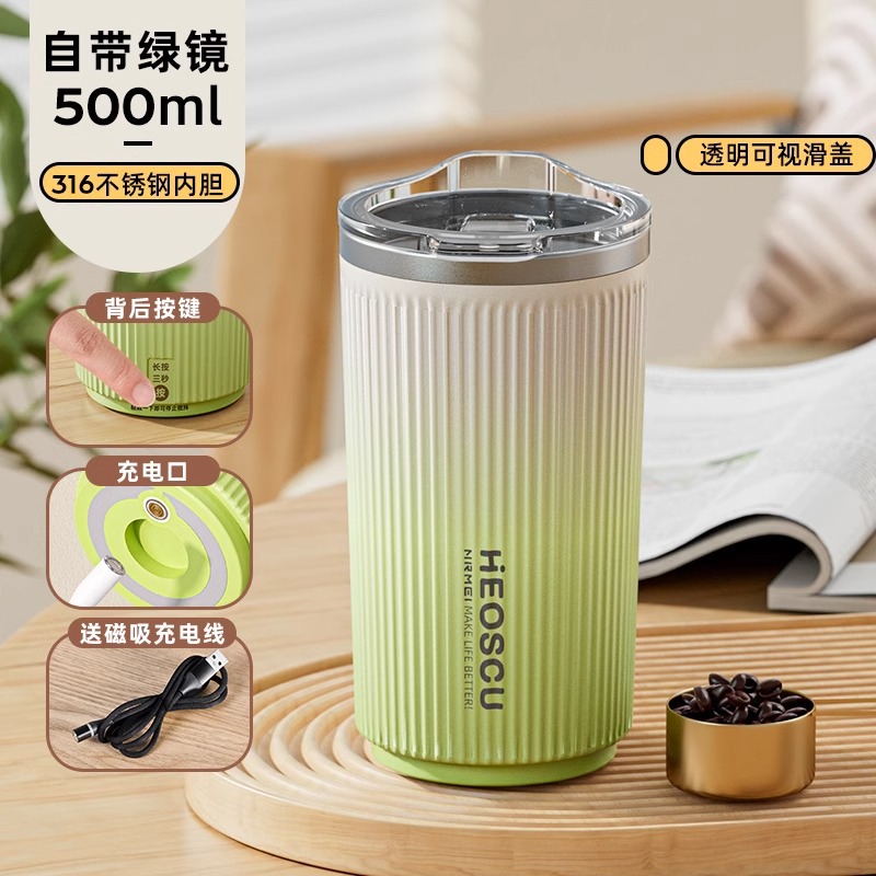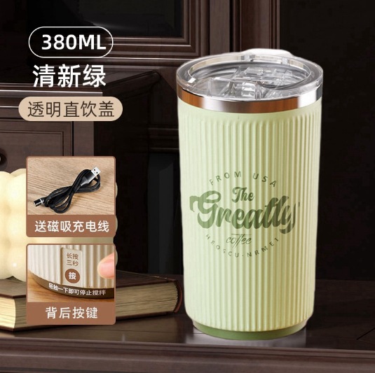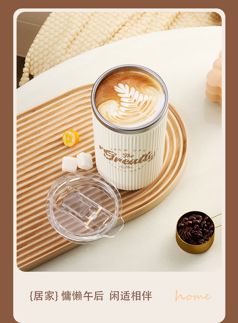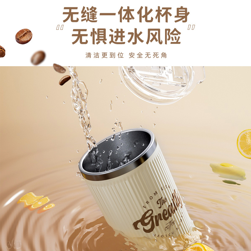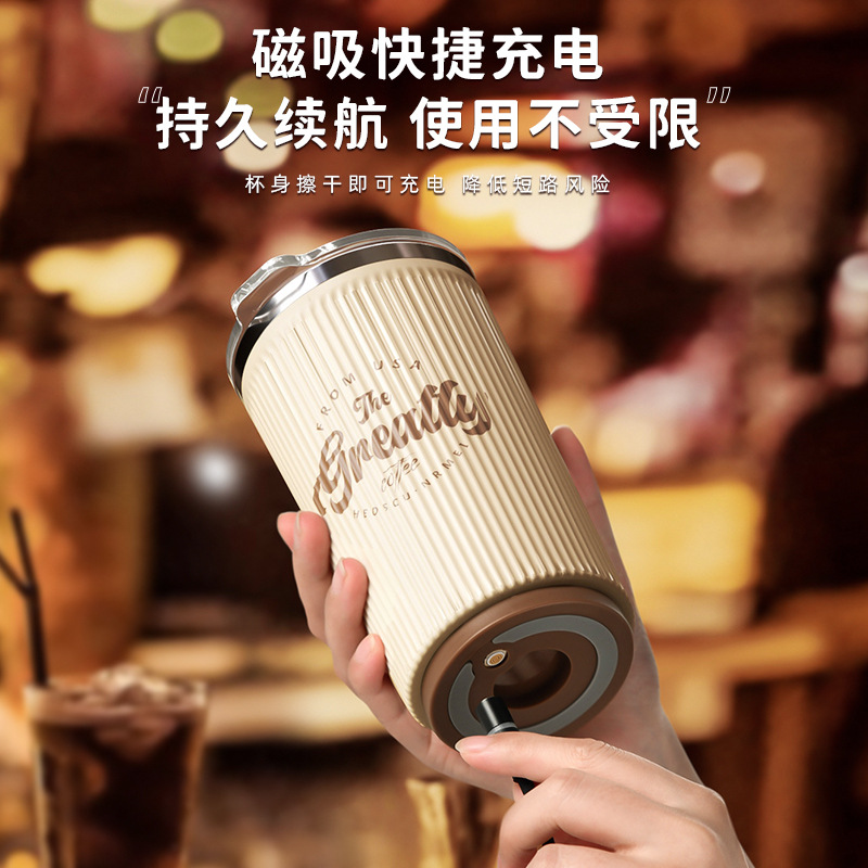 恩尔美搅拌杯女316不锈钢咖啡杯便携外出上班充电款水杯吸管