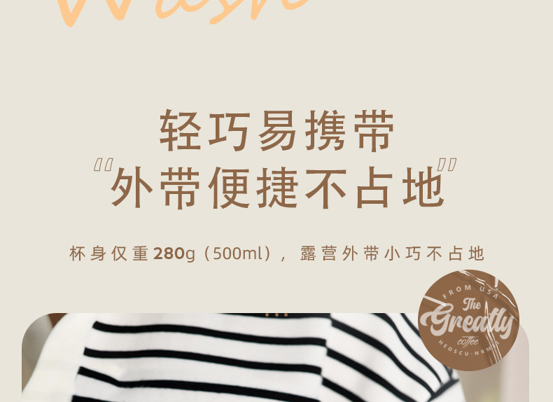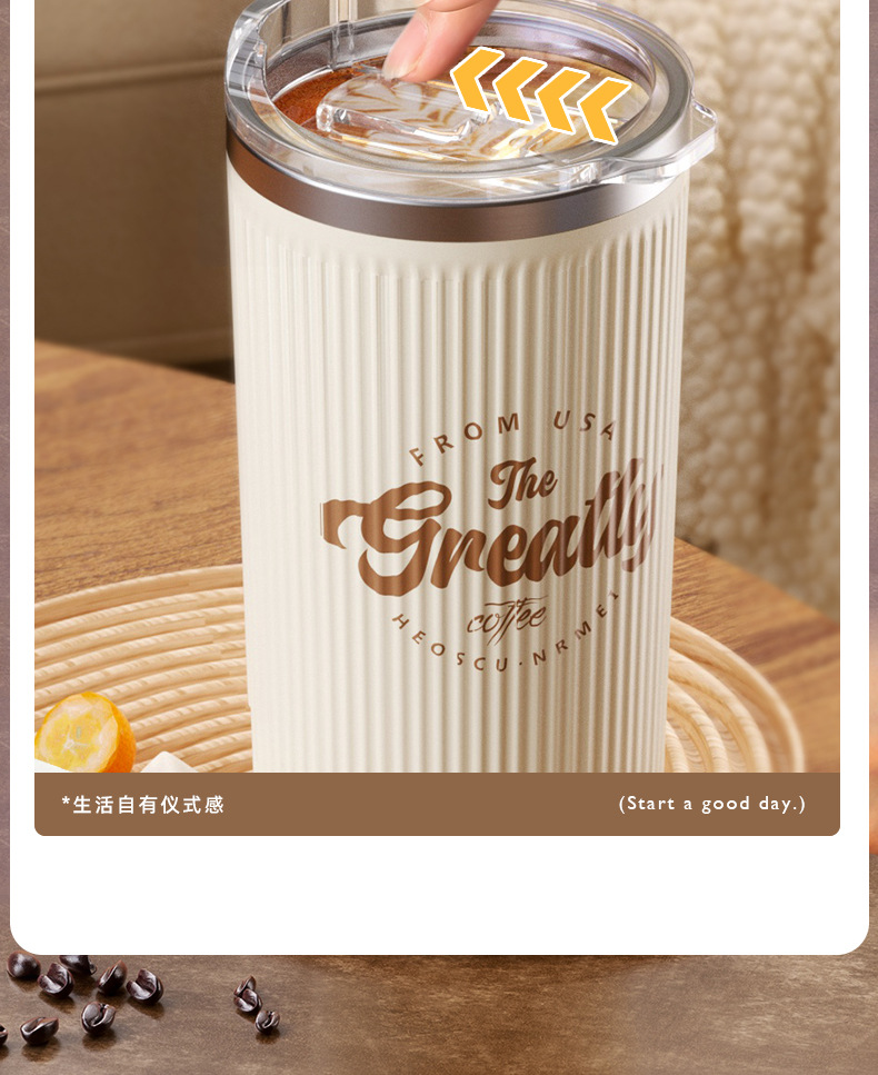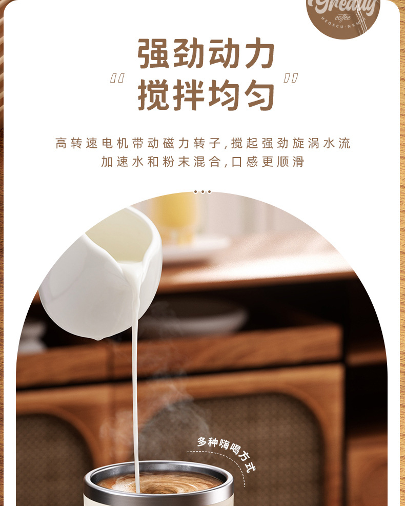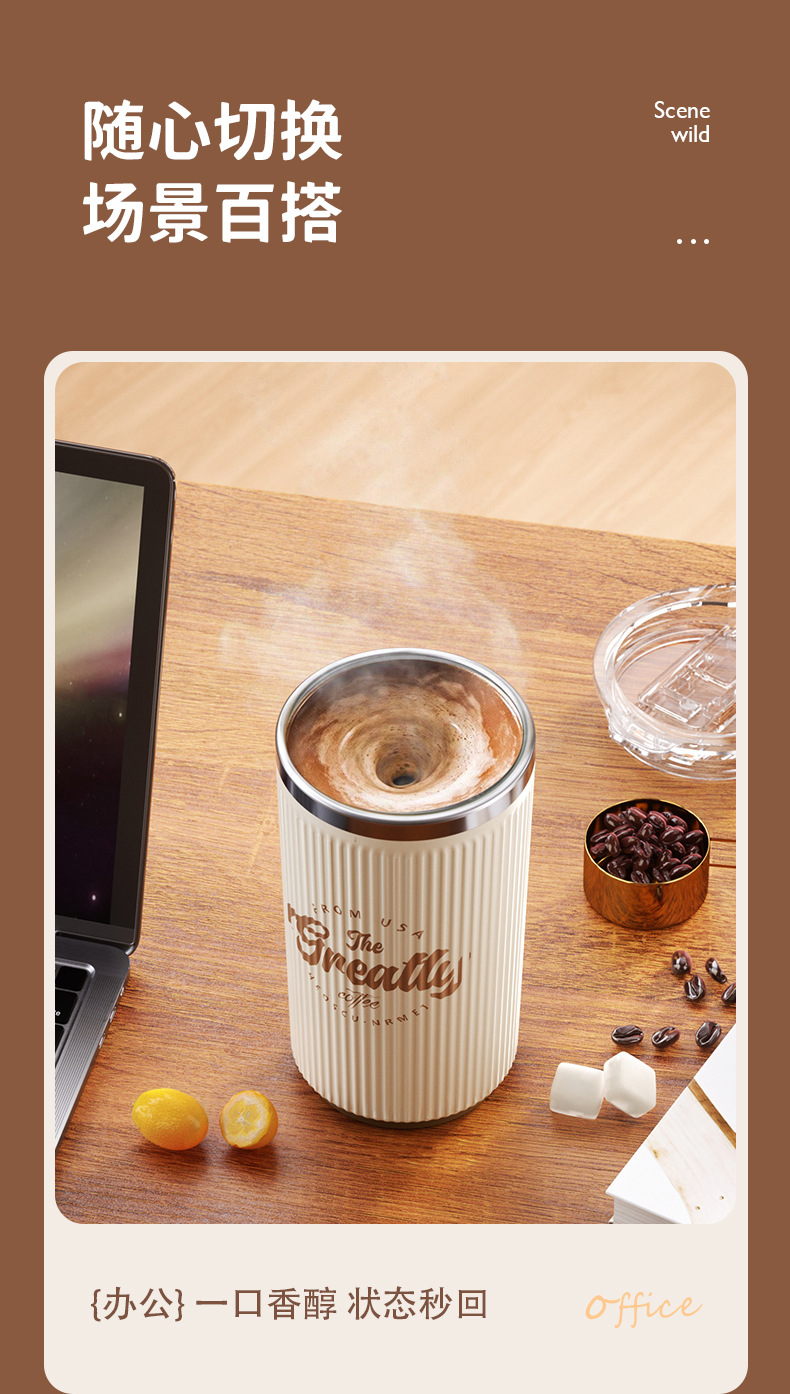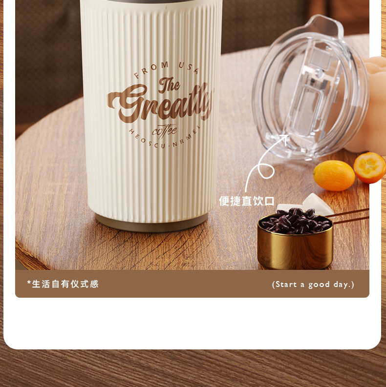 恩尔美搅拌杯女316不锈钢咖啡杯便携外出上班充电款水杯吸管