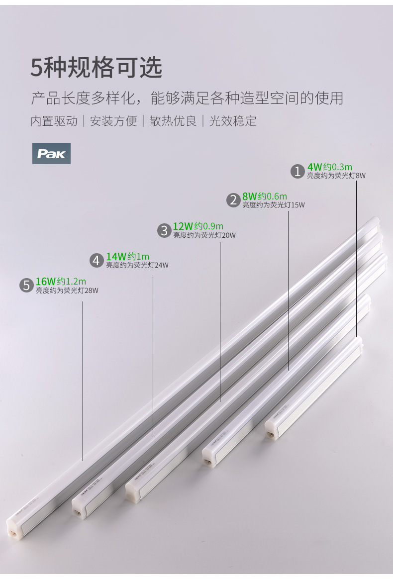 三雄极光照明T5一体化led灯管1.2米长条支架灯家用高亮T5日光超亮