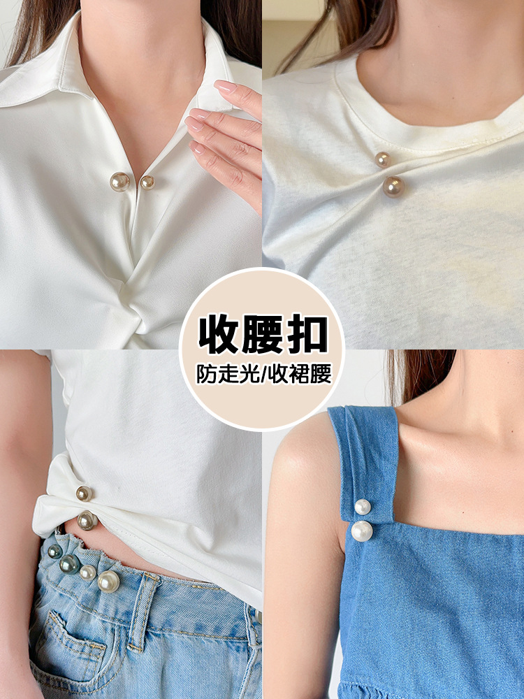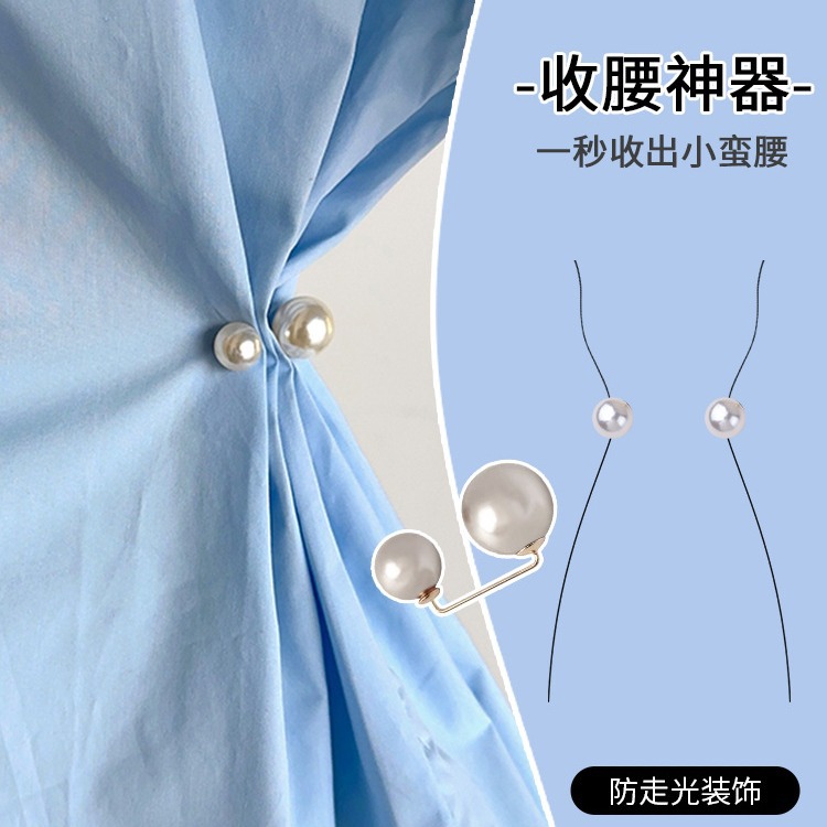 裙子收腰神器防走光别针扣固定衣服裤肥腰大腰围改小扣子珍珠胸针