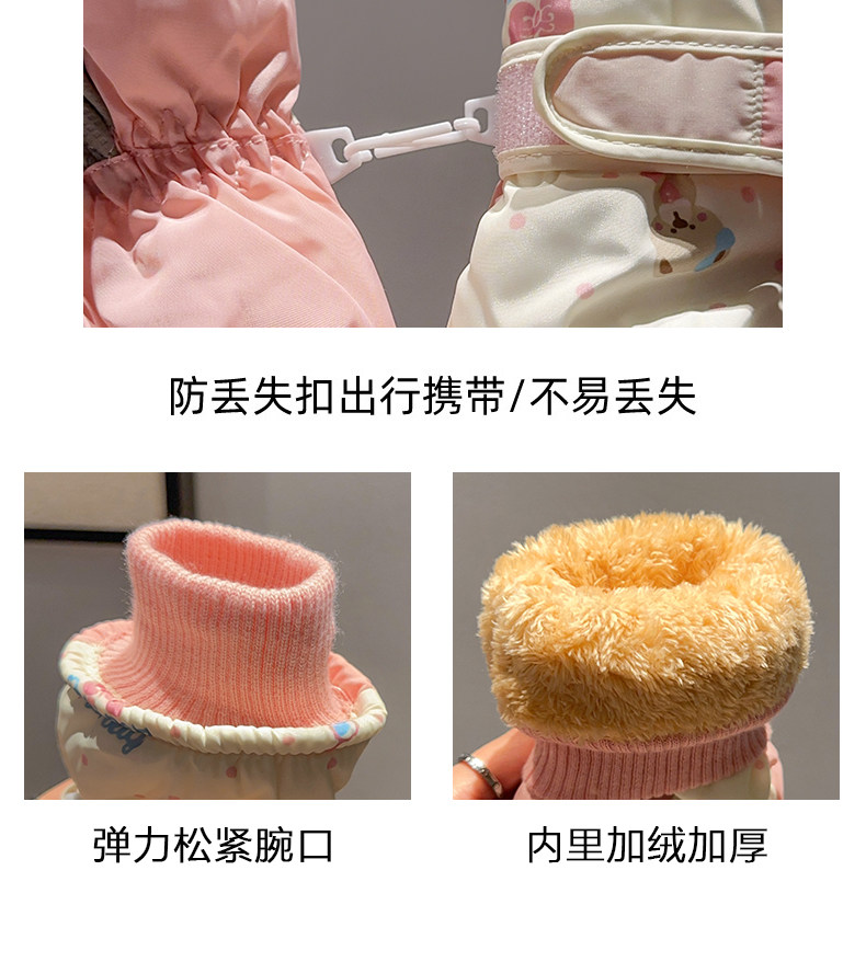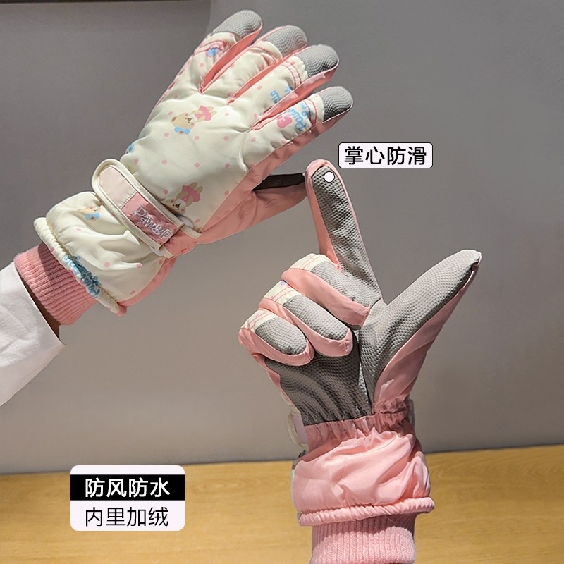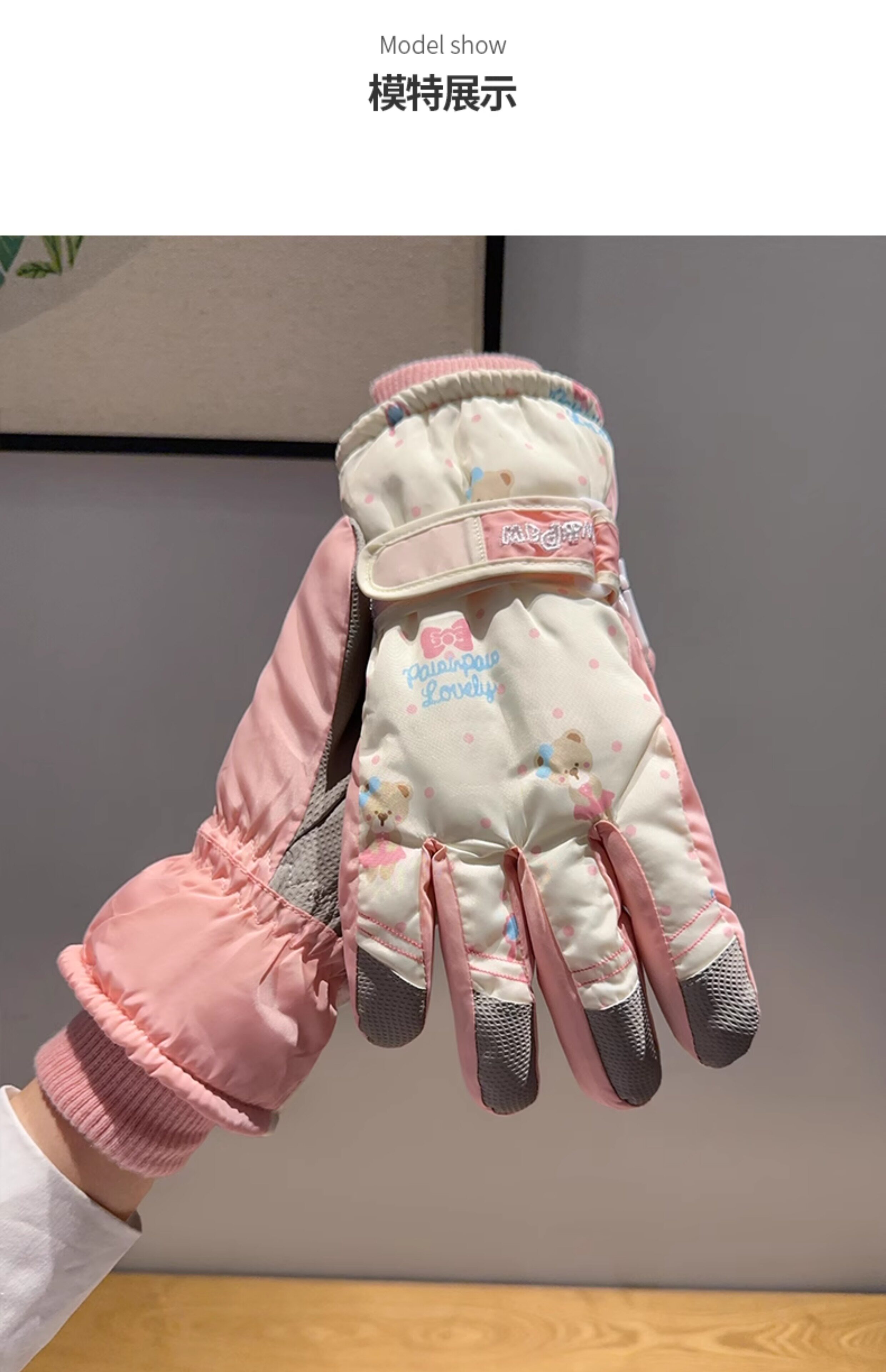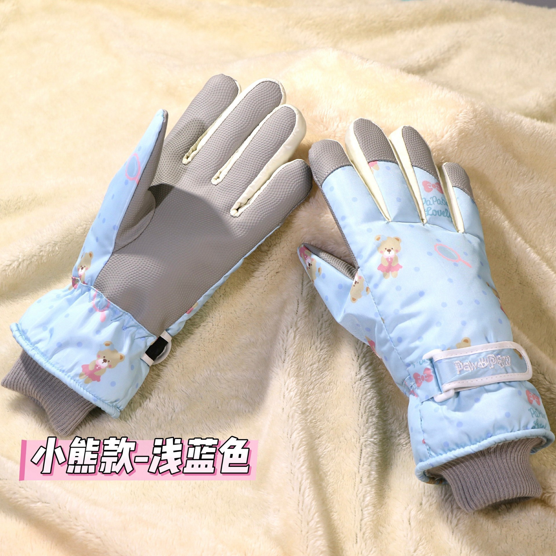 可爱小熊女士秋冬手套滑雪全掌触屏加绒加厚防风防水骑行保暖手套