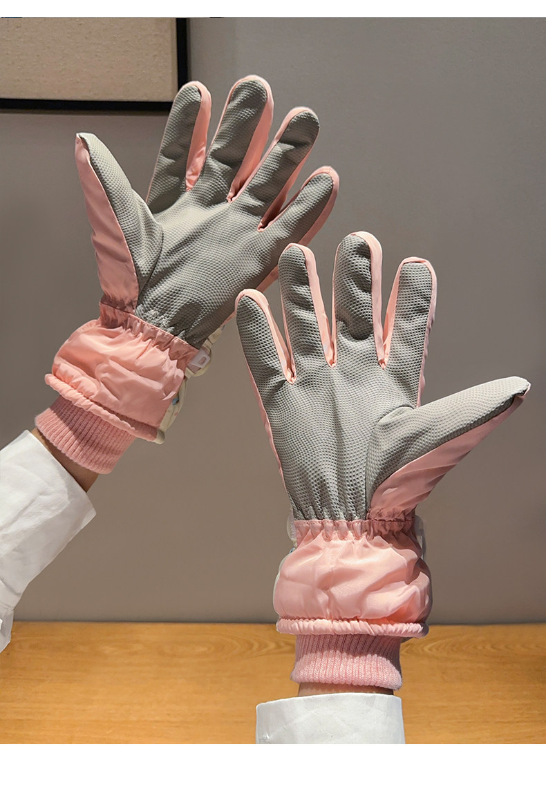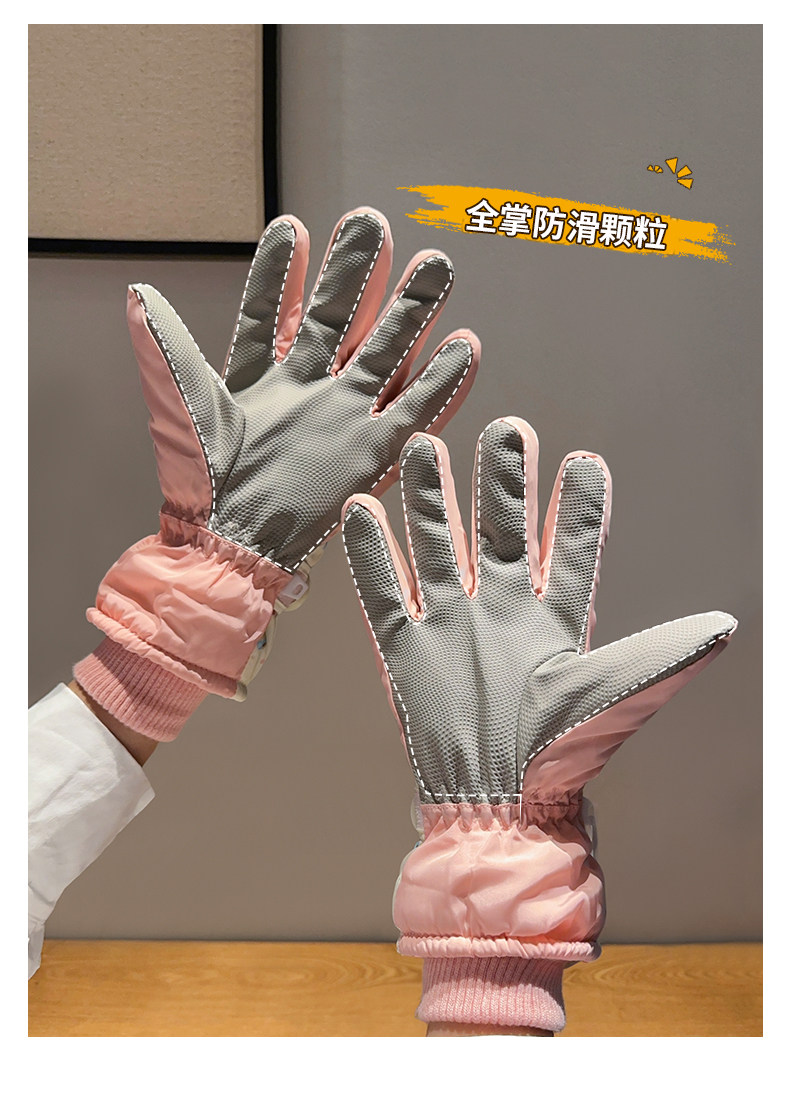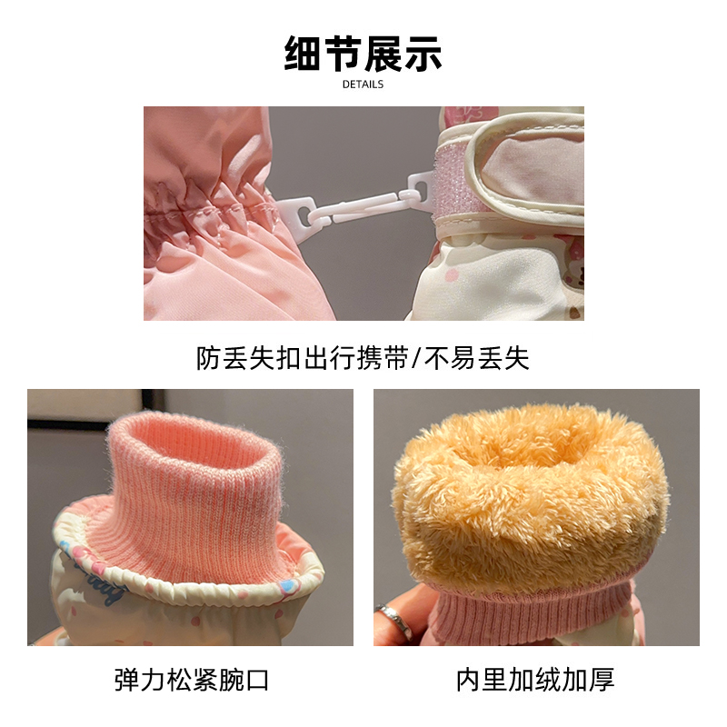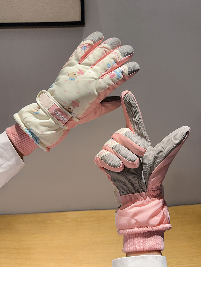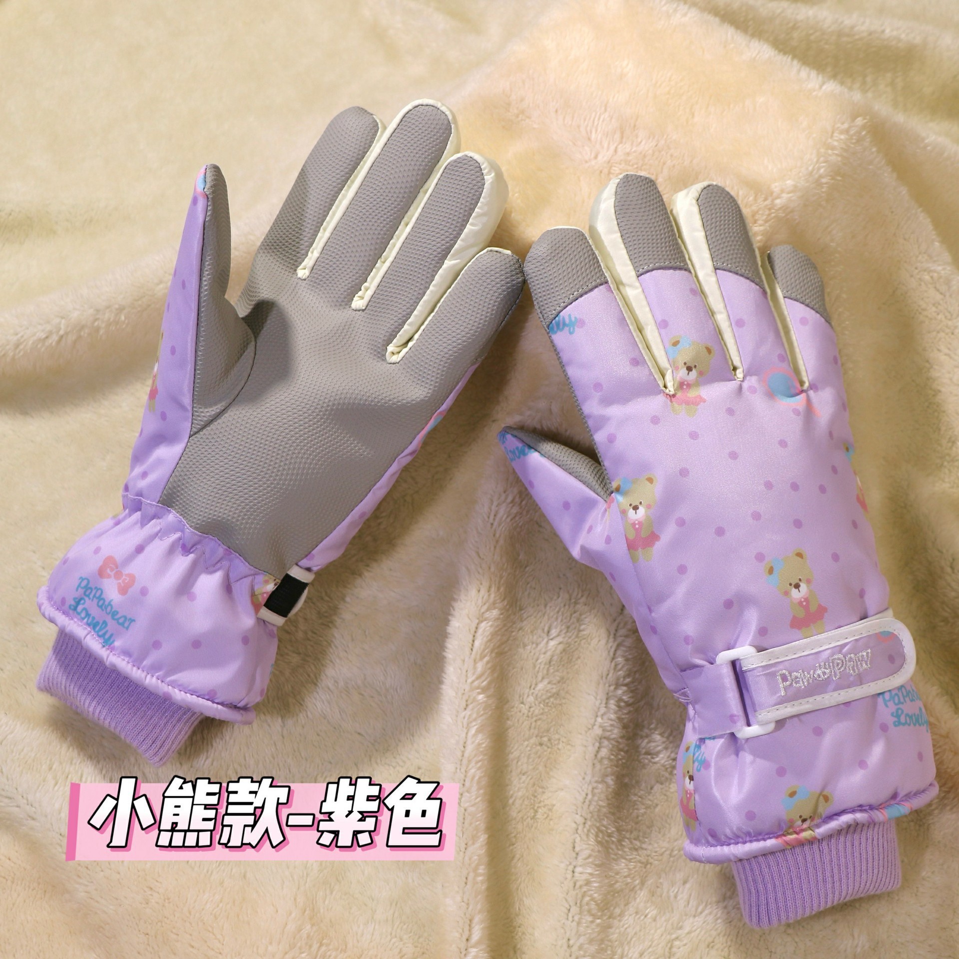 可爱小熊女士秋冬手套滑雪全掌触屏加绒加厚防风防水骑行保暖手套