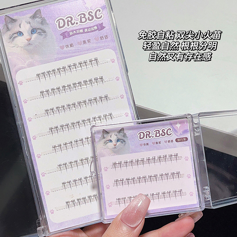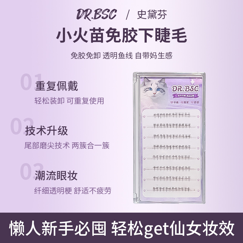 大容量新升级免胶自粘双簇小火苗下睫毛妈生感素颜卷翘免卸假睫毛