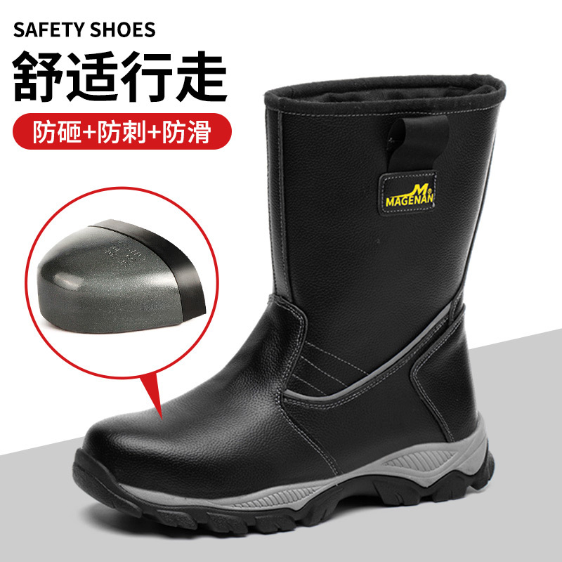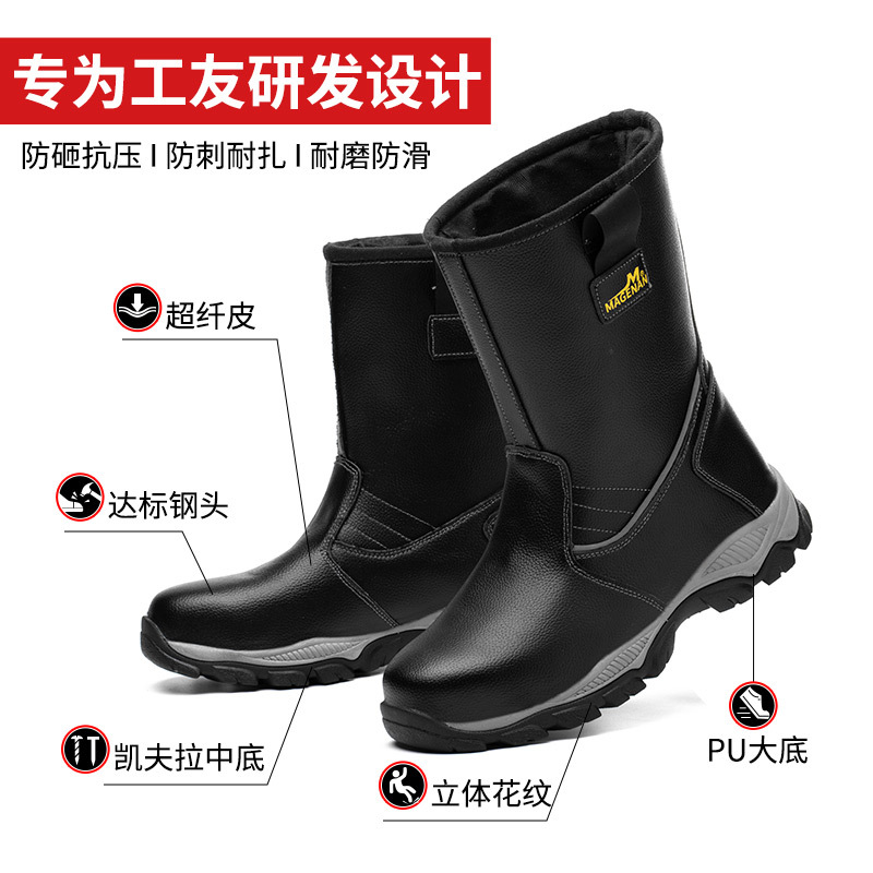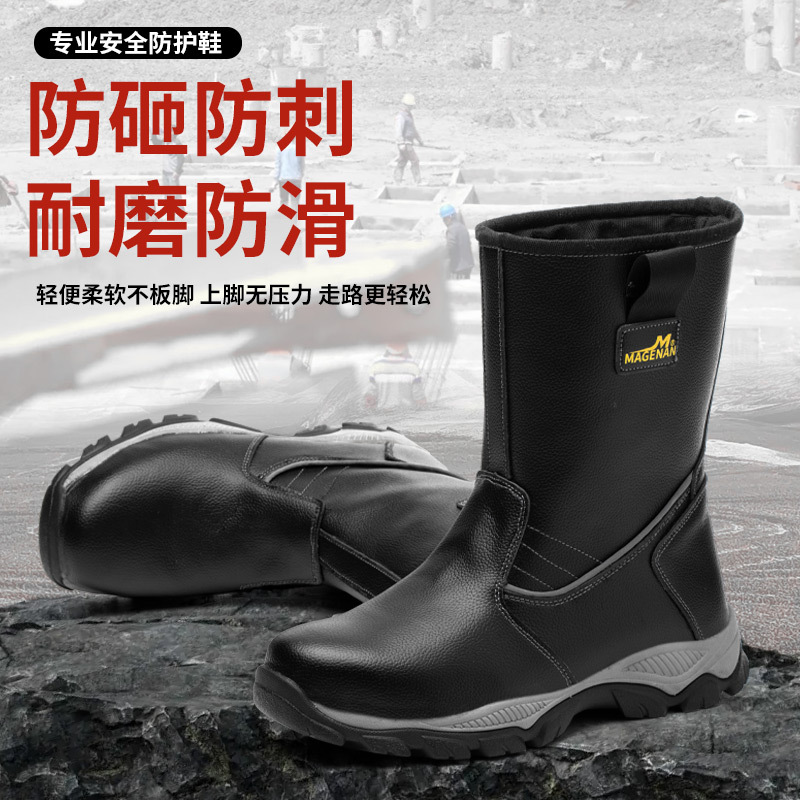 跨境大码劳保鞋男高帮油田安全靴耐油防烫伤防砸防穿刺工作电焊靴