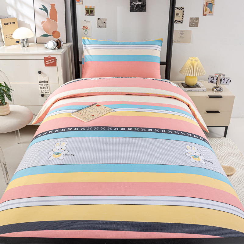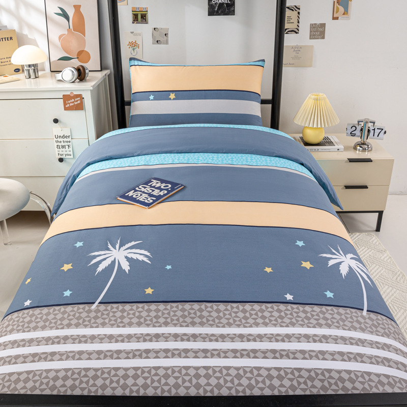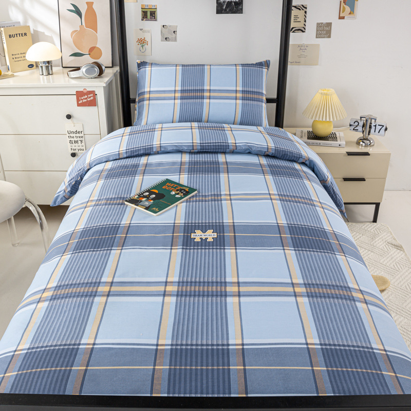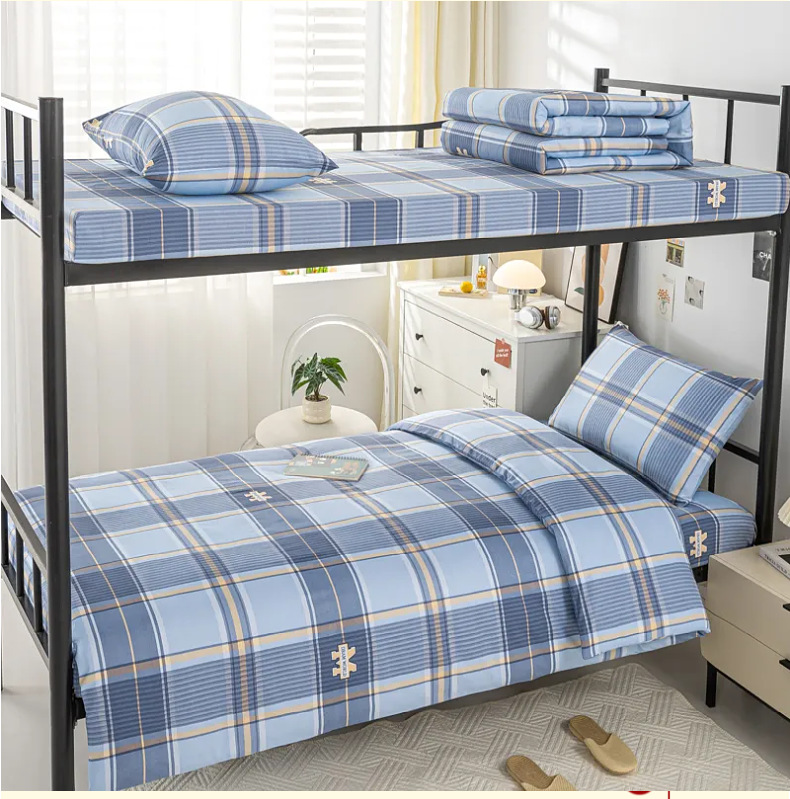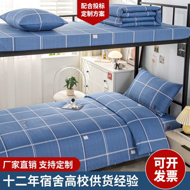 全棉100棉学生宿舍三件套单位单人床床单被套纯棉六件套床上用品