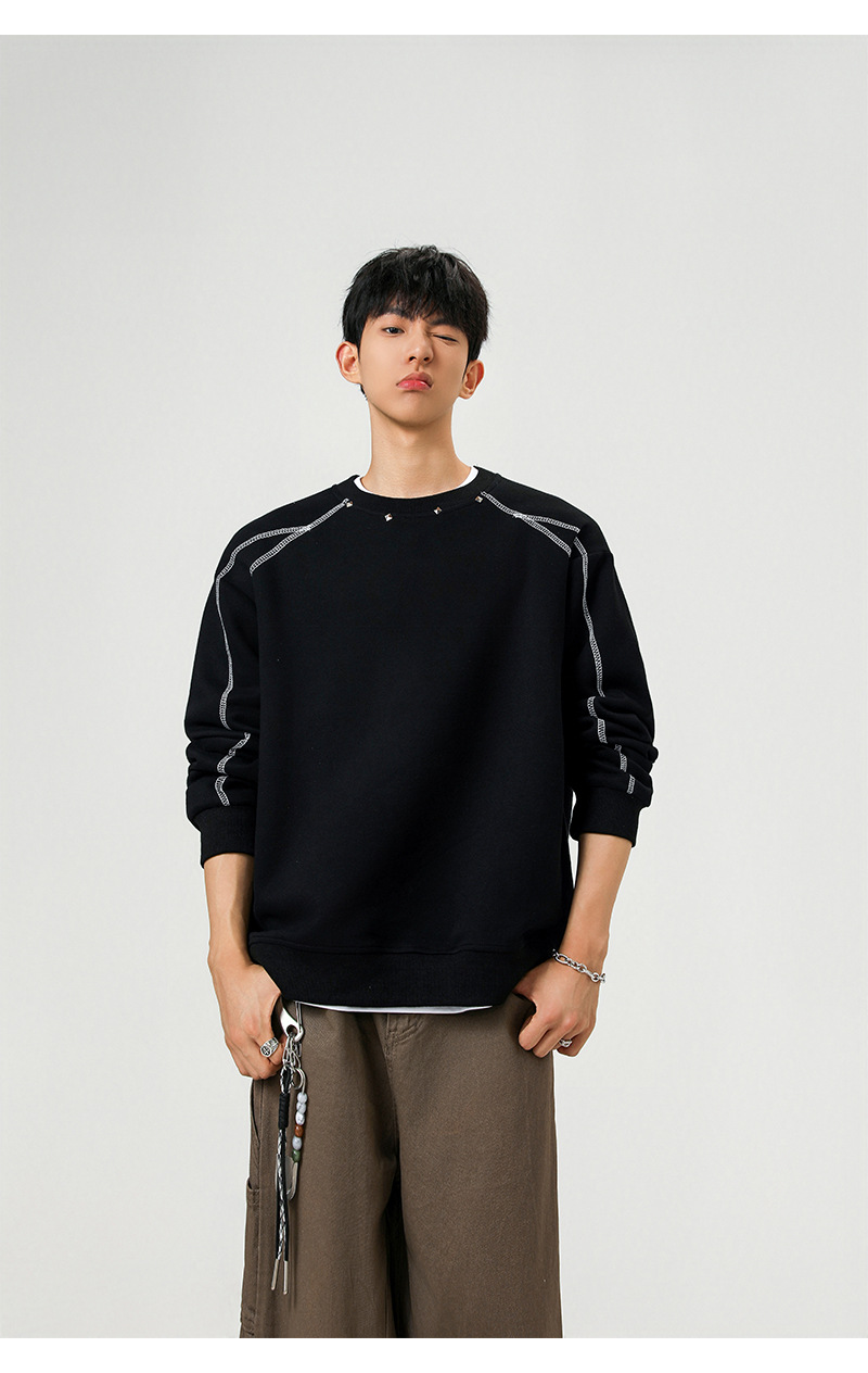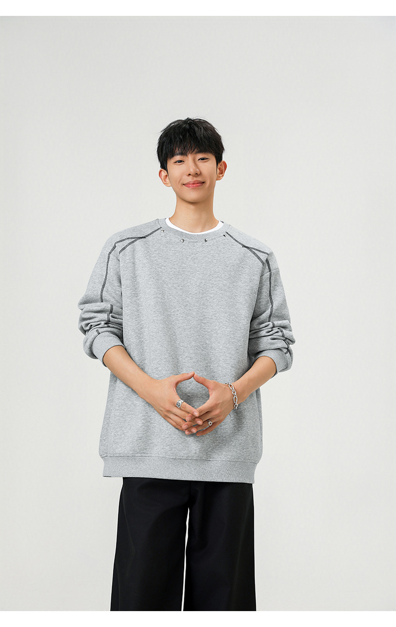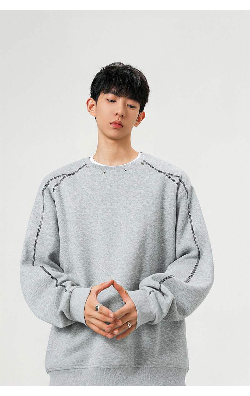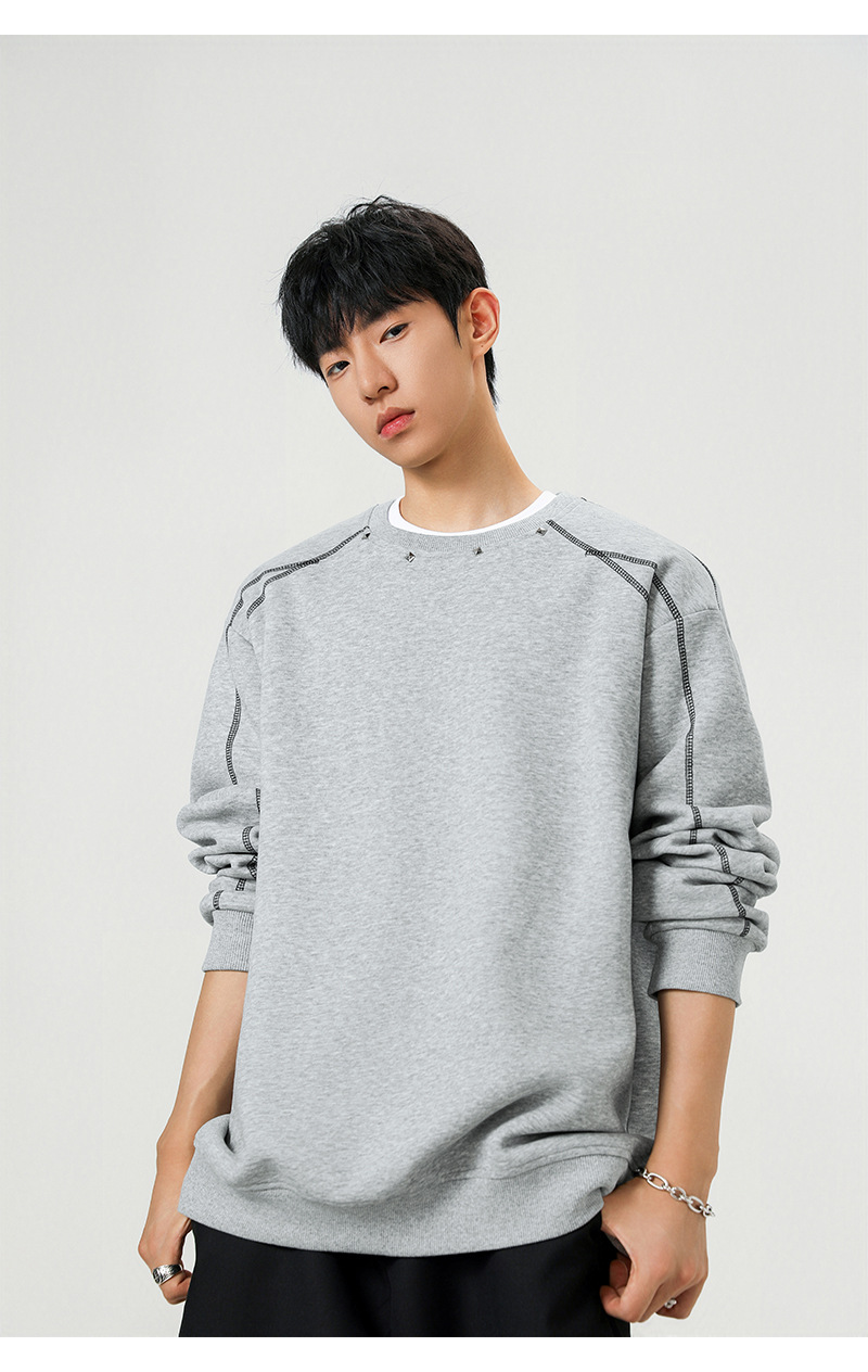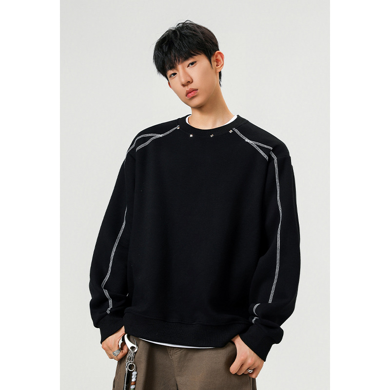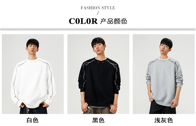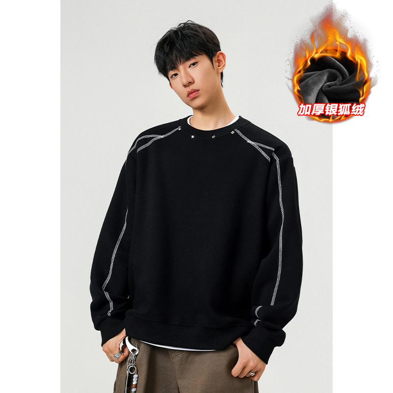华棉高克重400g解构铆钉大码长袖卫衣男W5413特P35 W5413J加绒P40