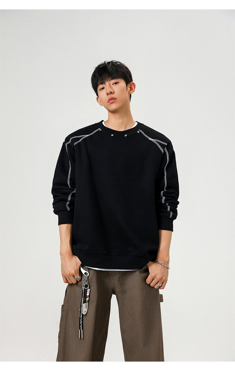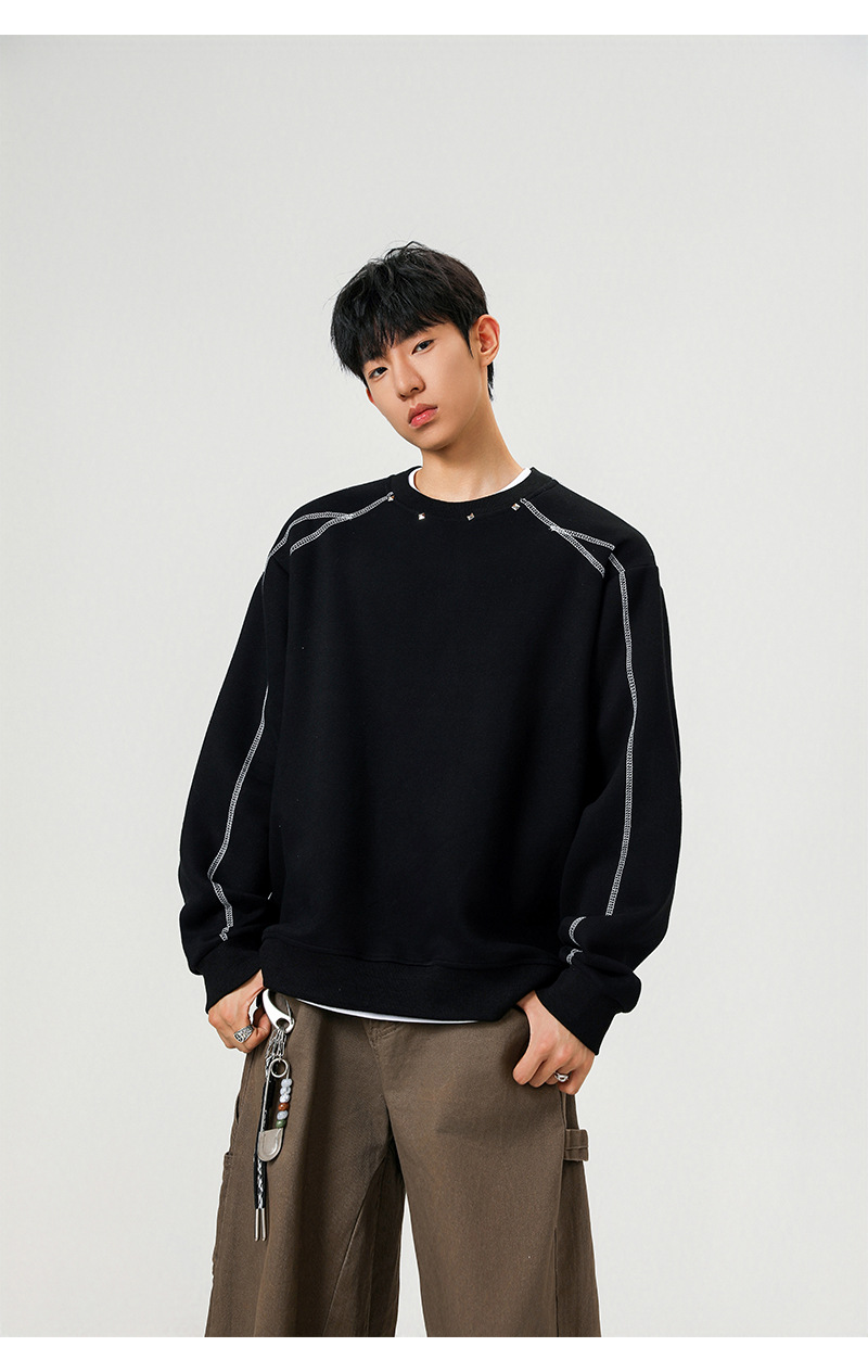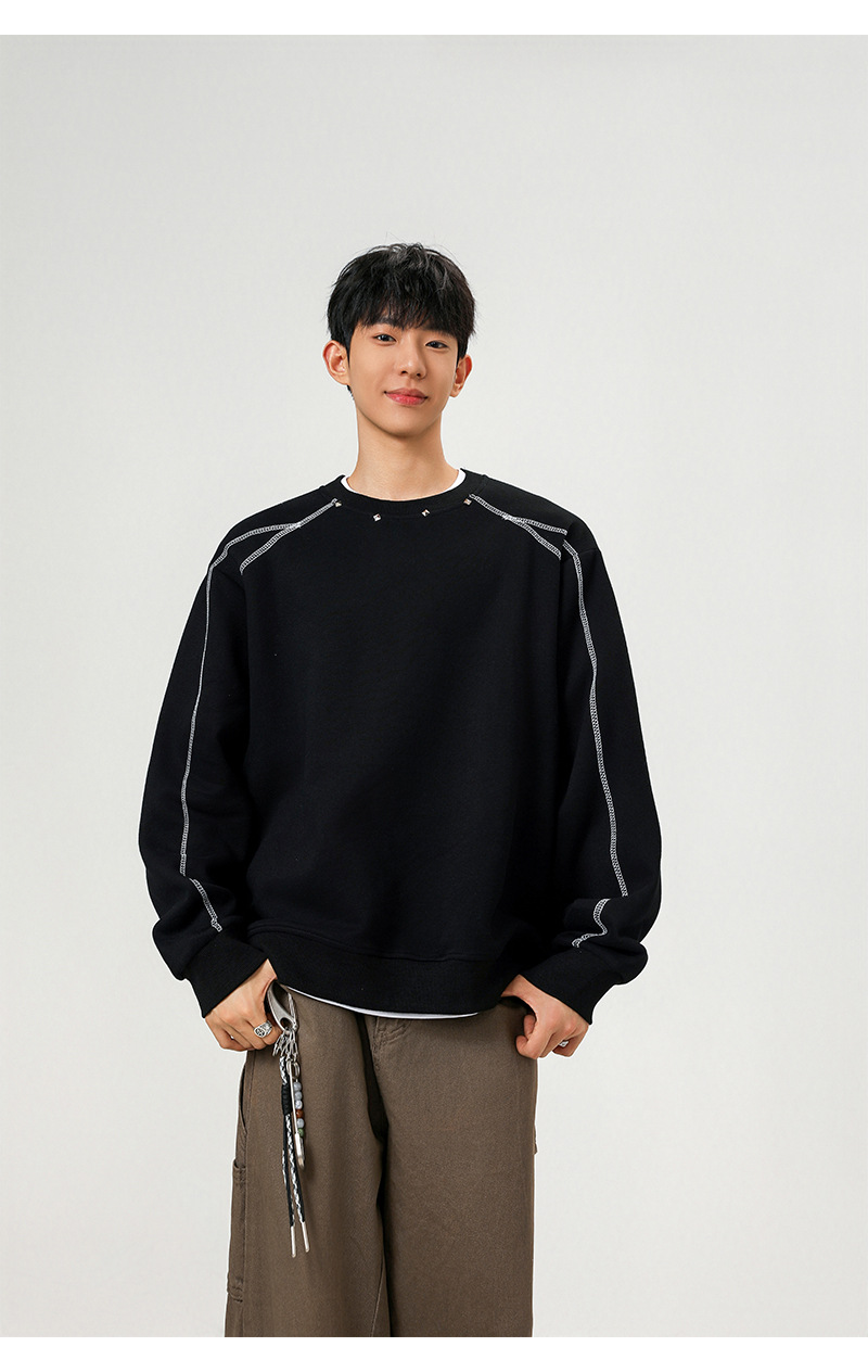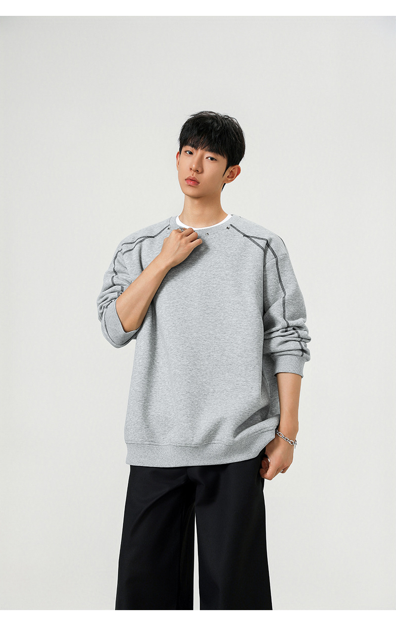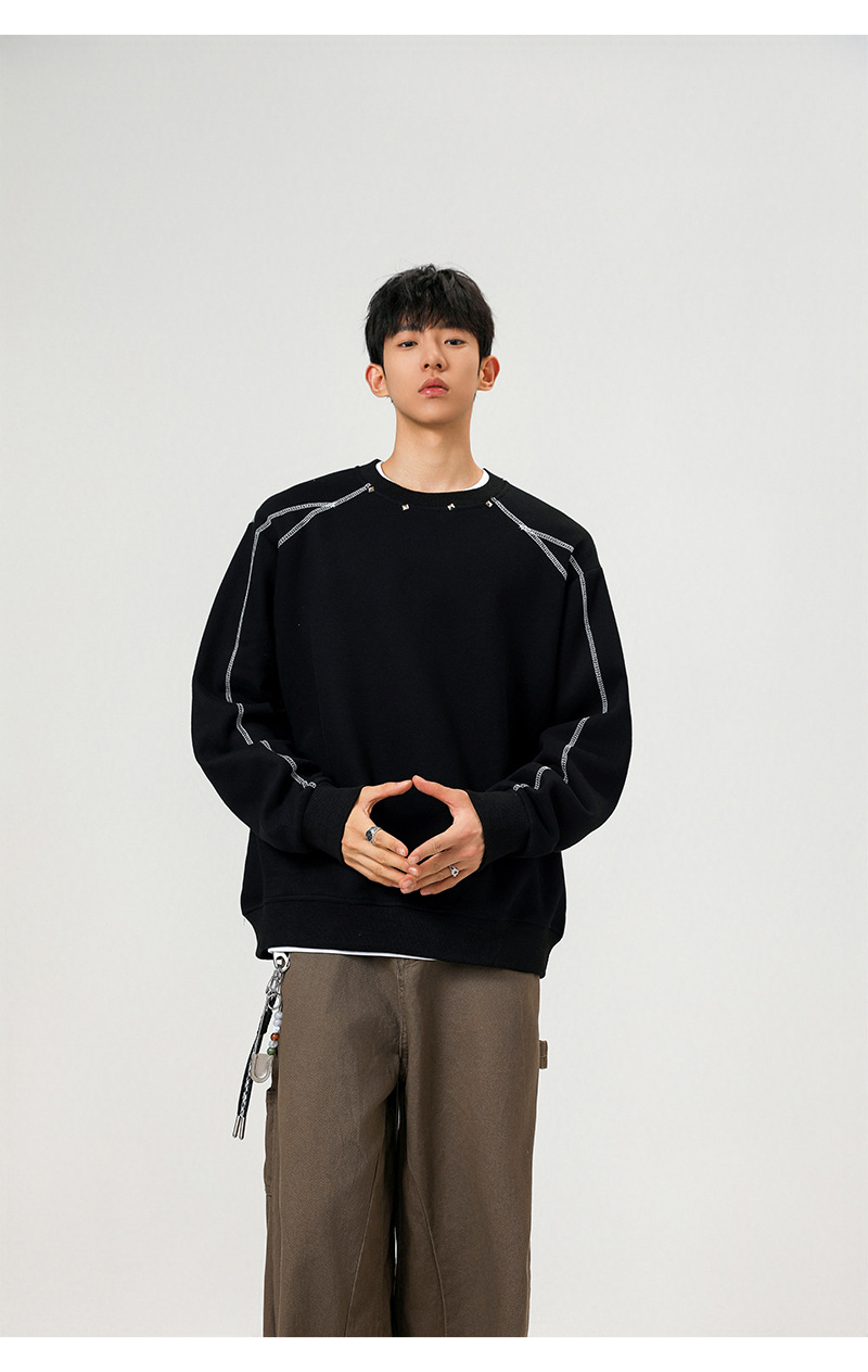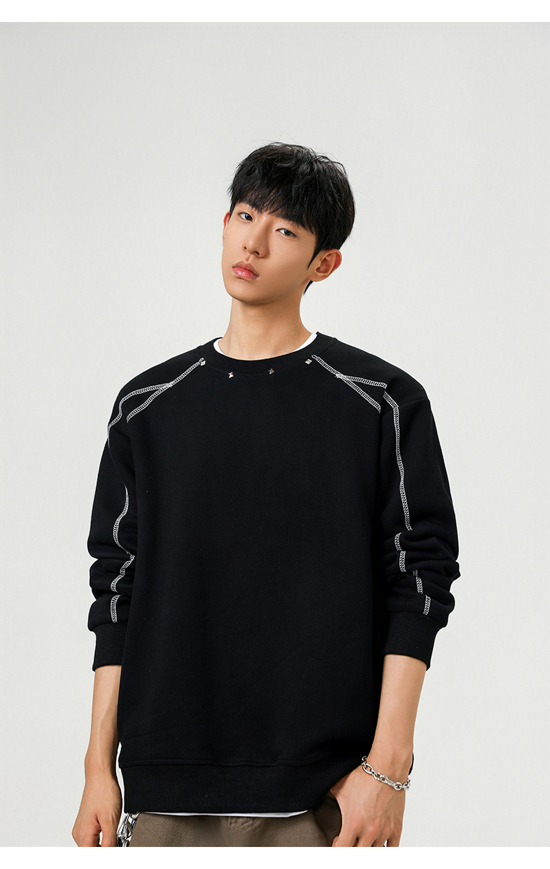 华棉高克重400g解构铆钉大码长袖卫衣男W5413特P35 W5413J加绒P40