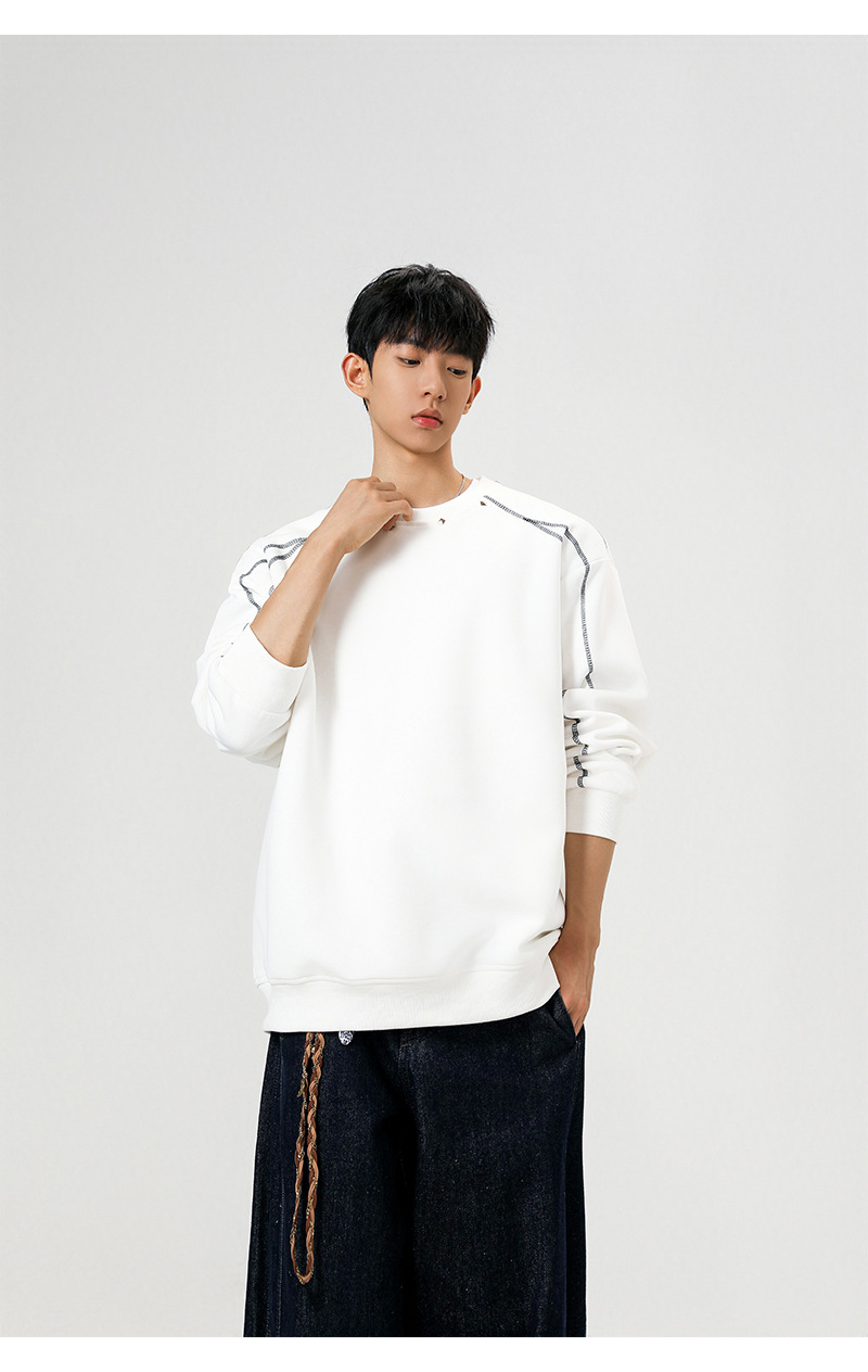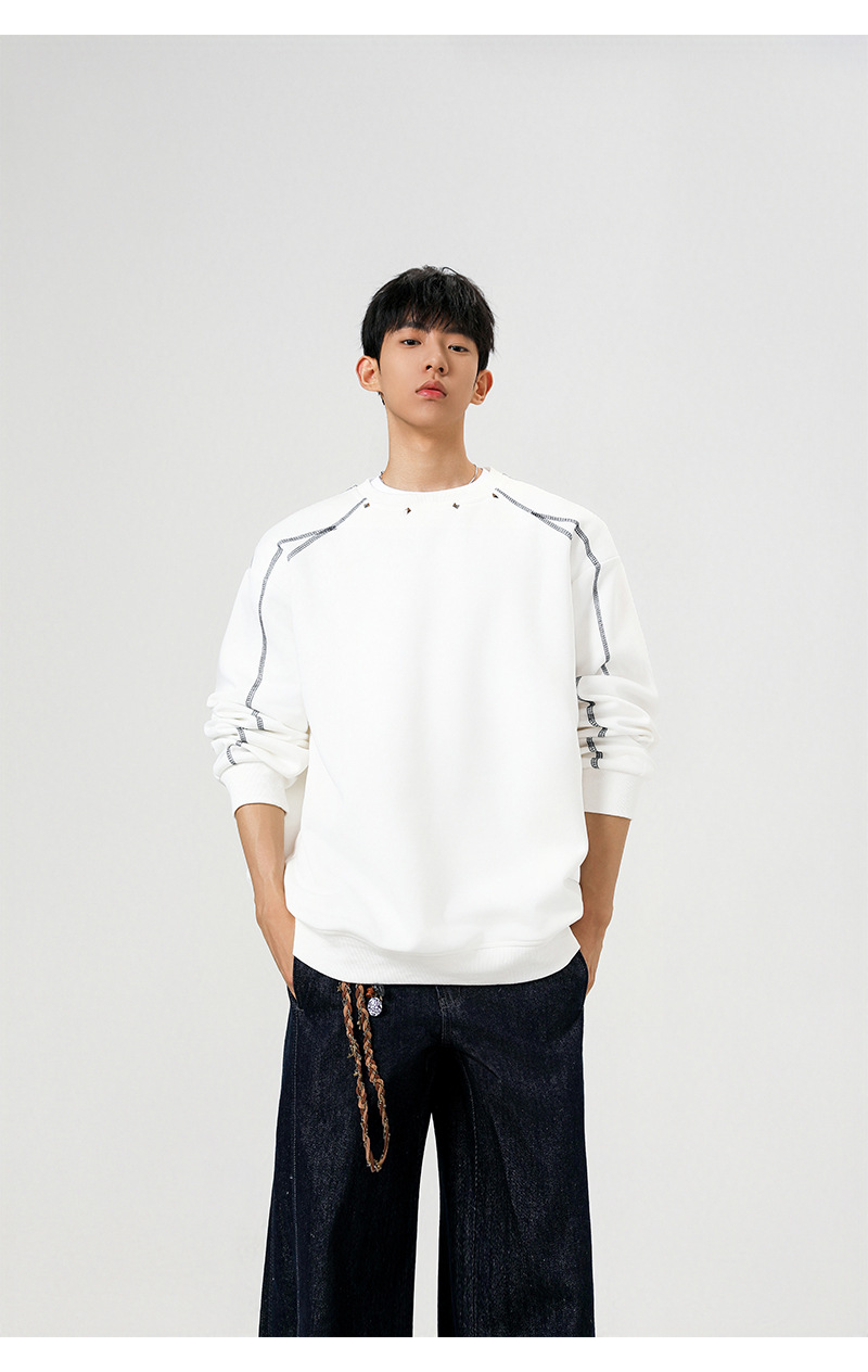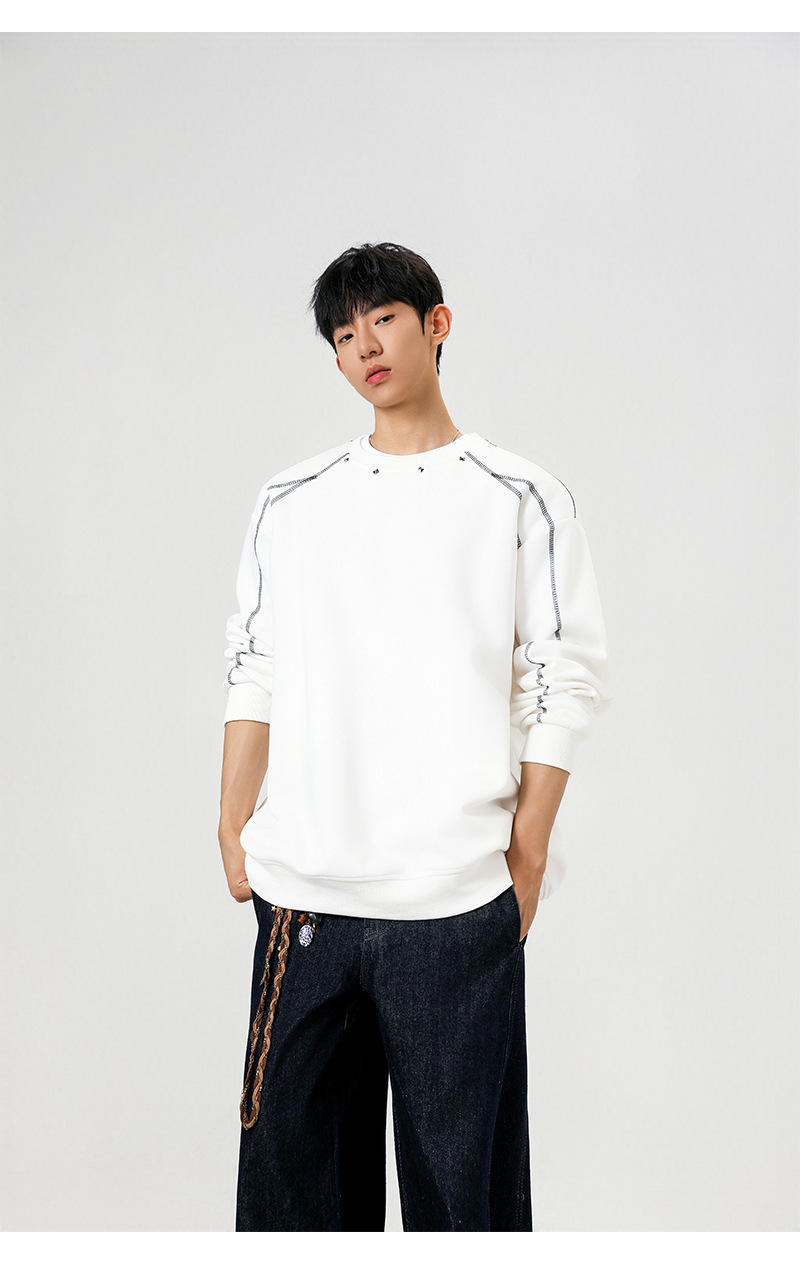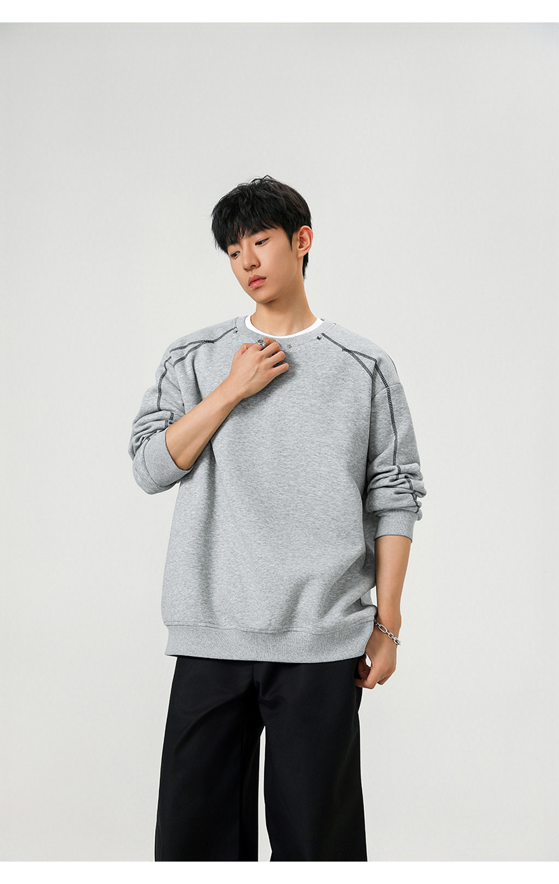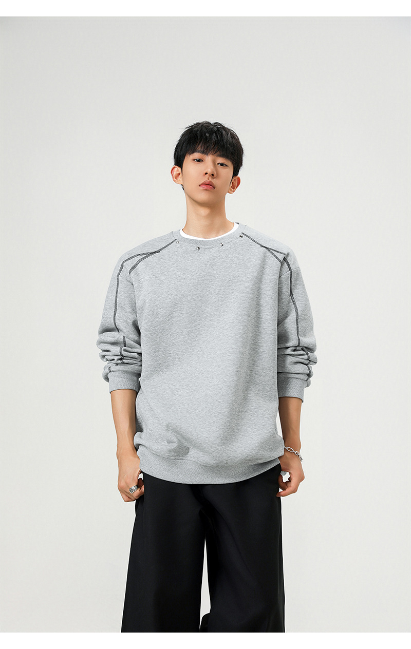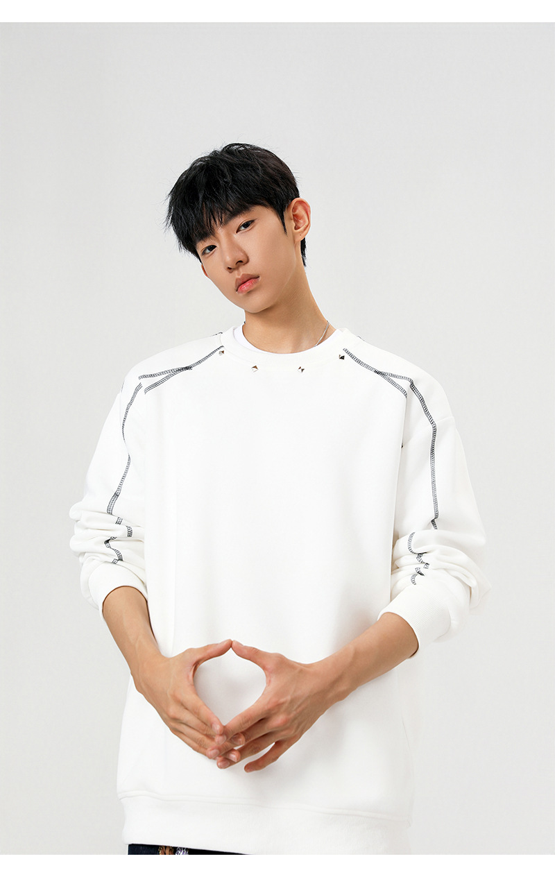 华棉高克重400g解构铆钉大码长袖卫衣男W5413特P35 W5413J加绒P40