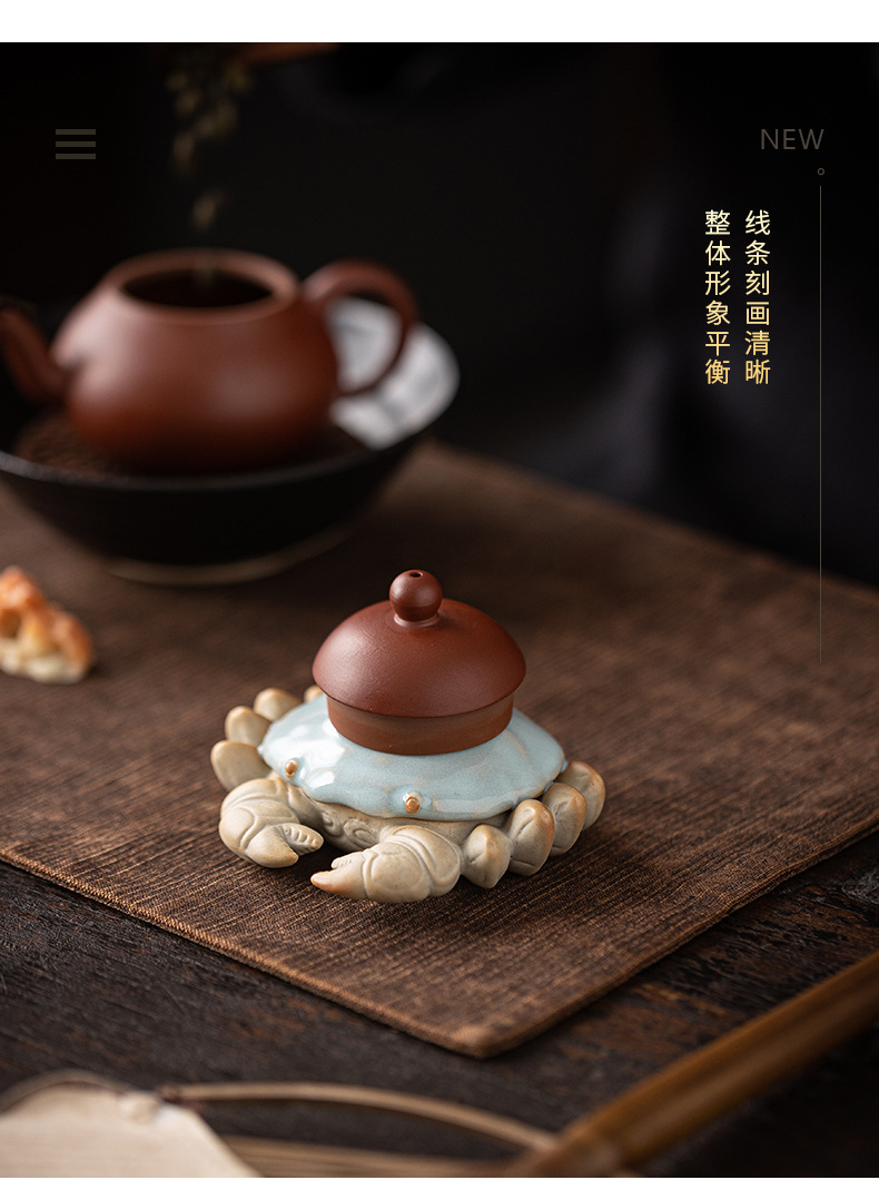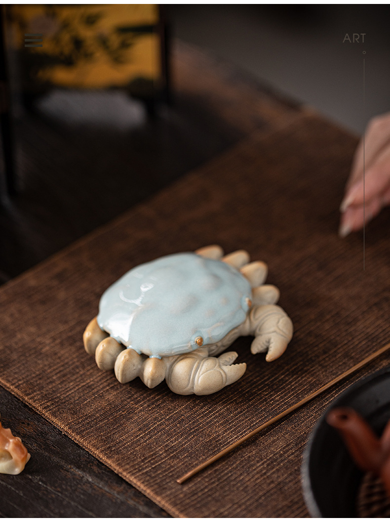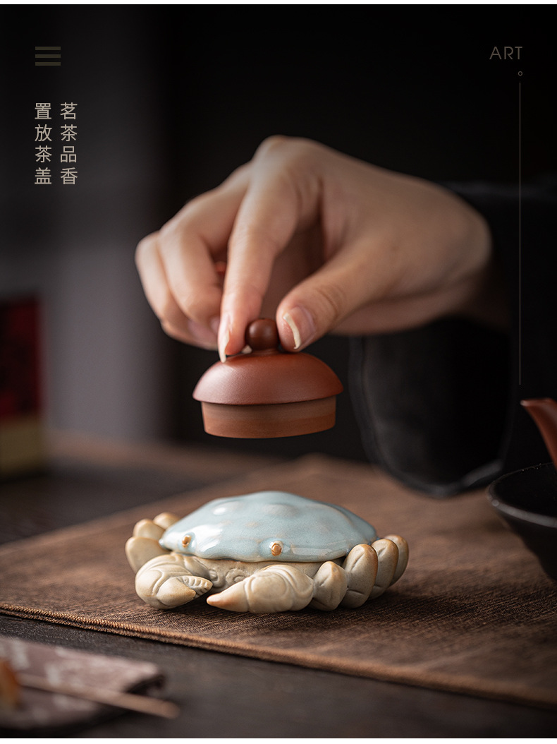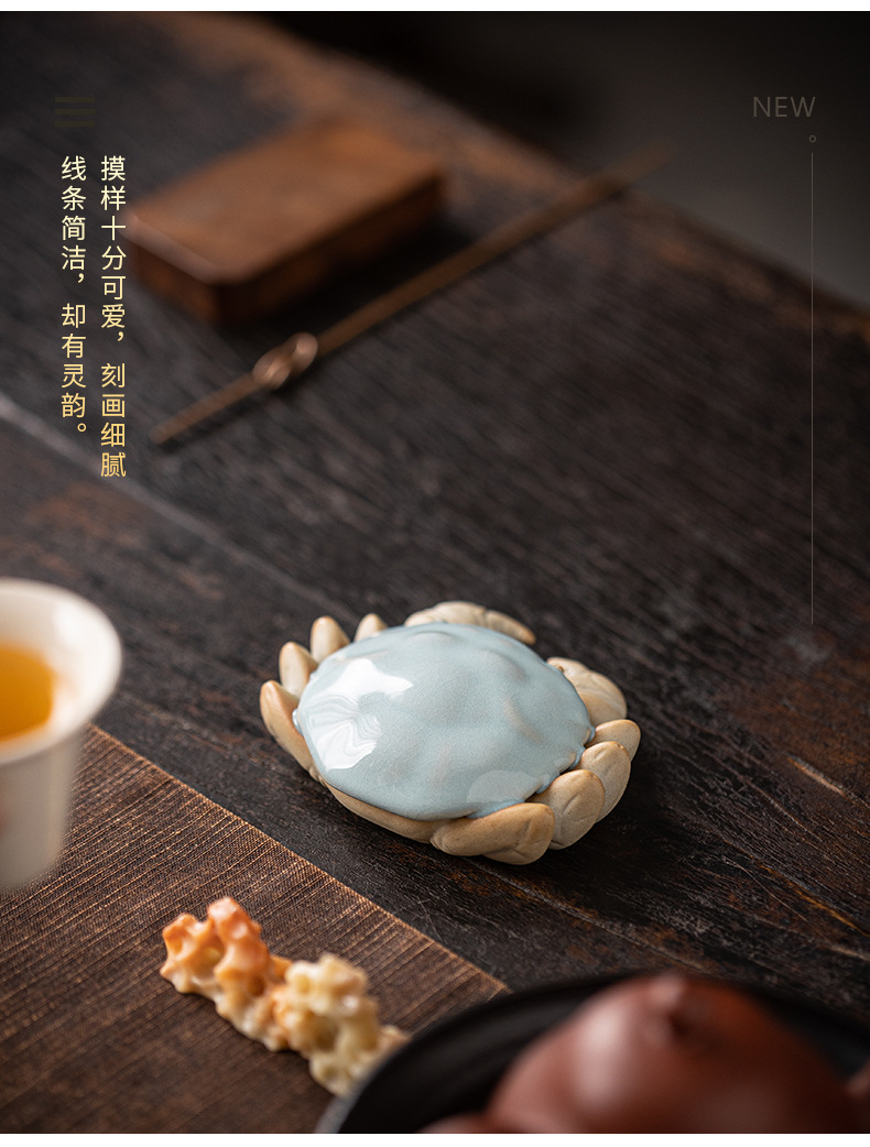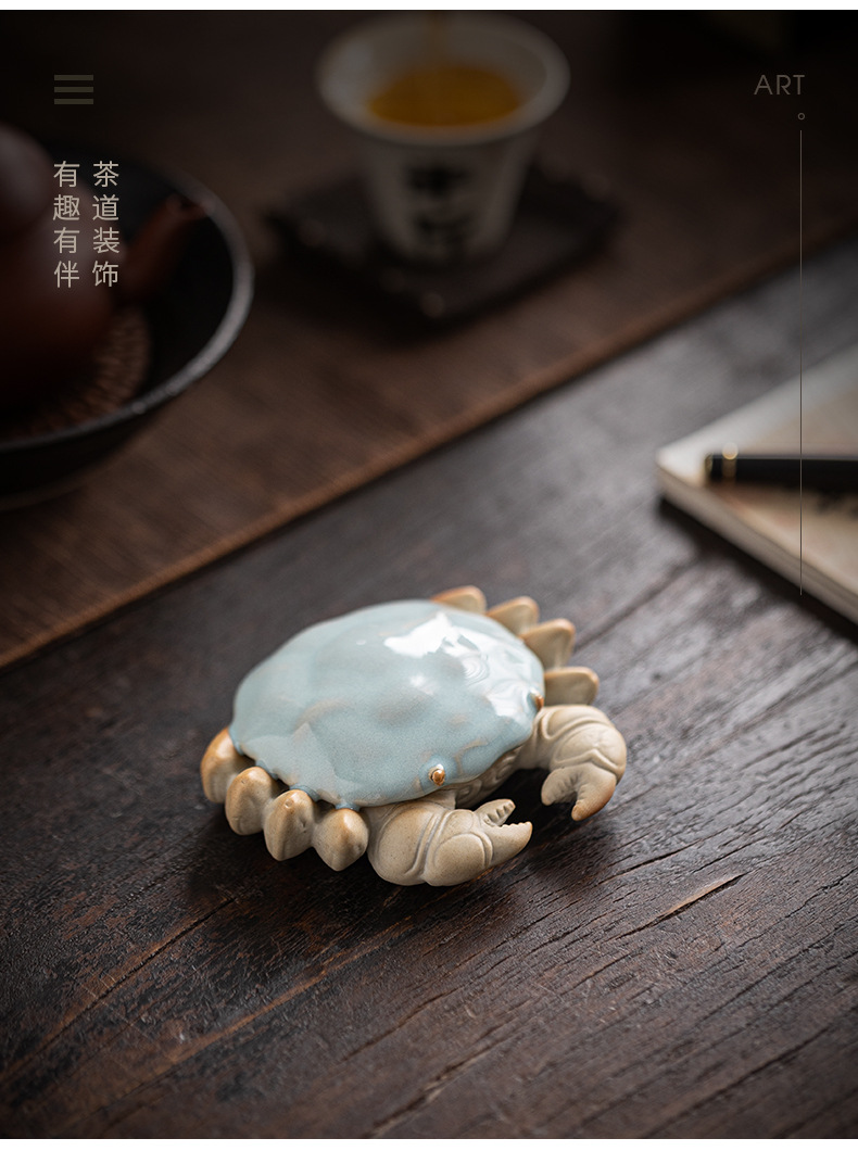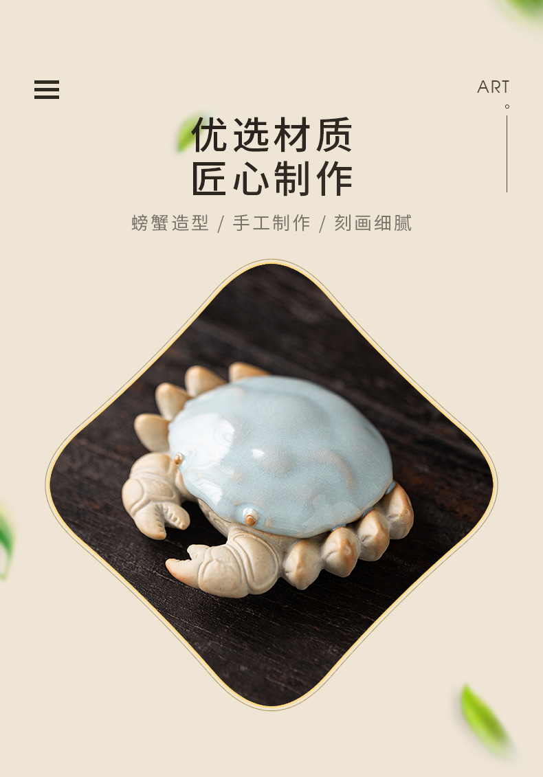 汝窑螃蟹茶宠摆件精品创意八方来财盖置盖托茶宠茶玩茶具茶桌摆件