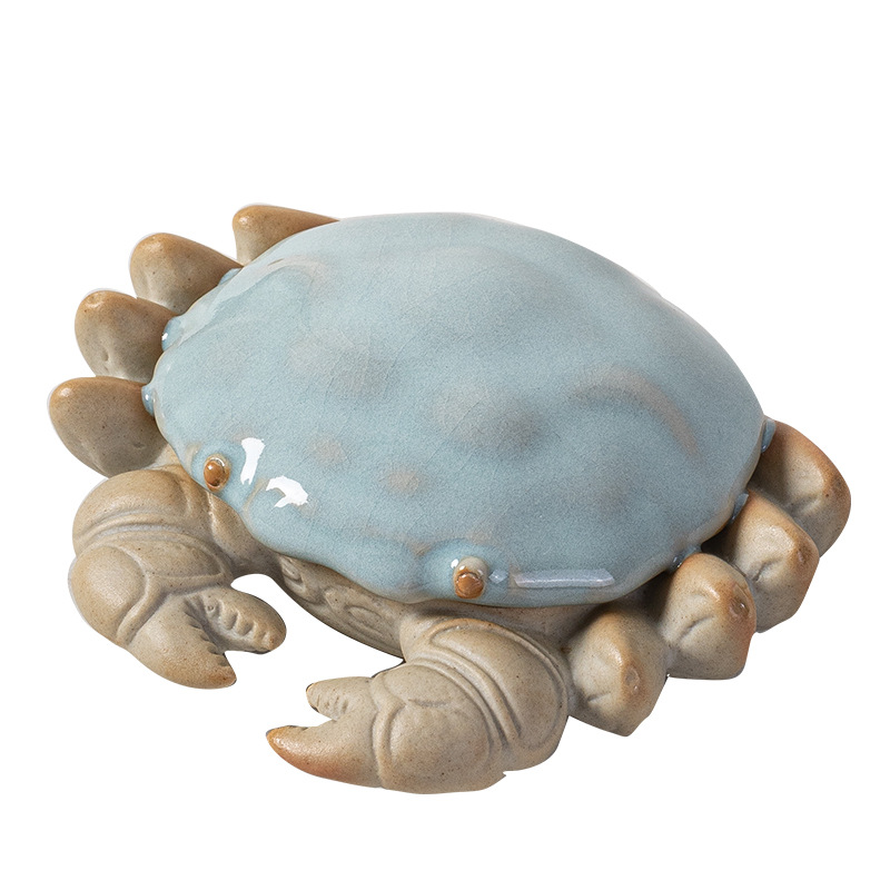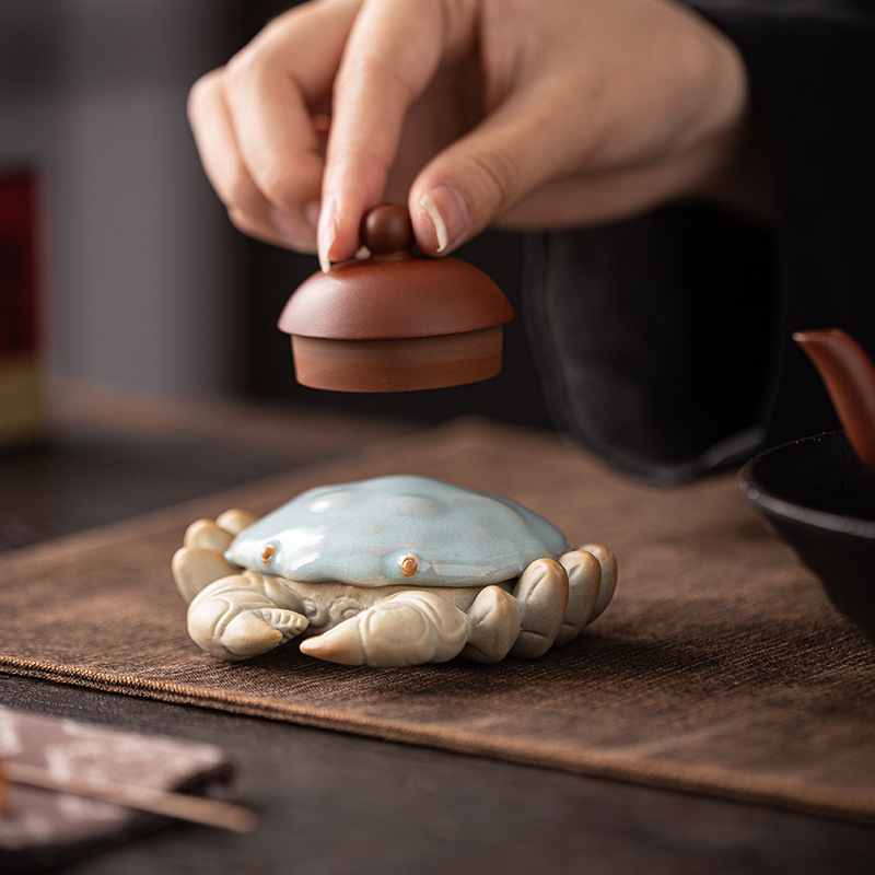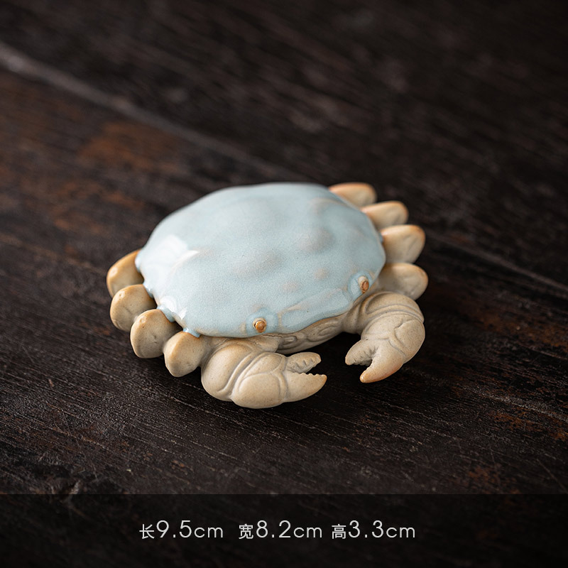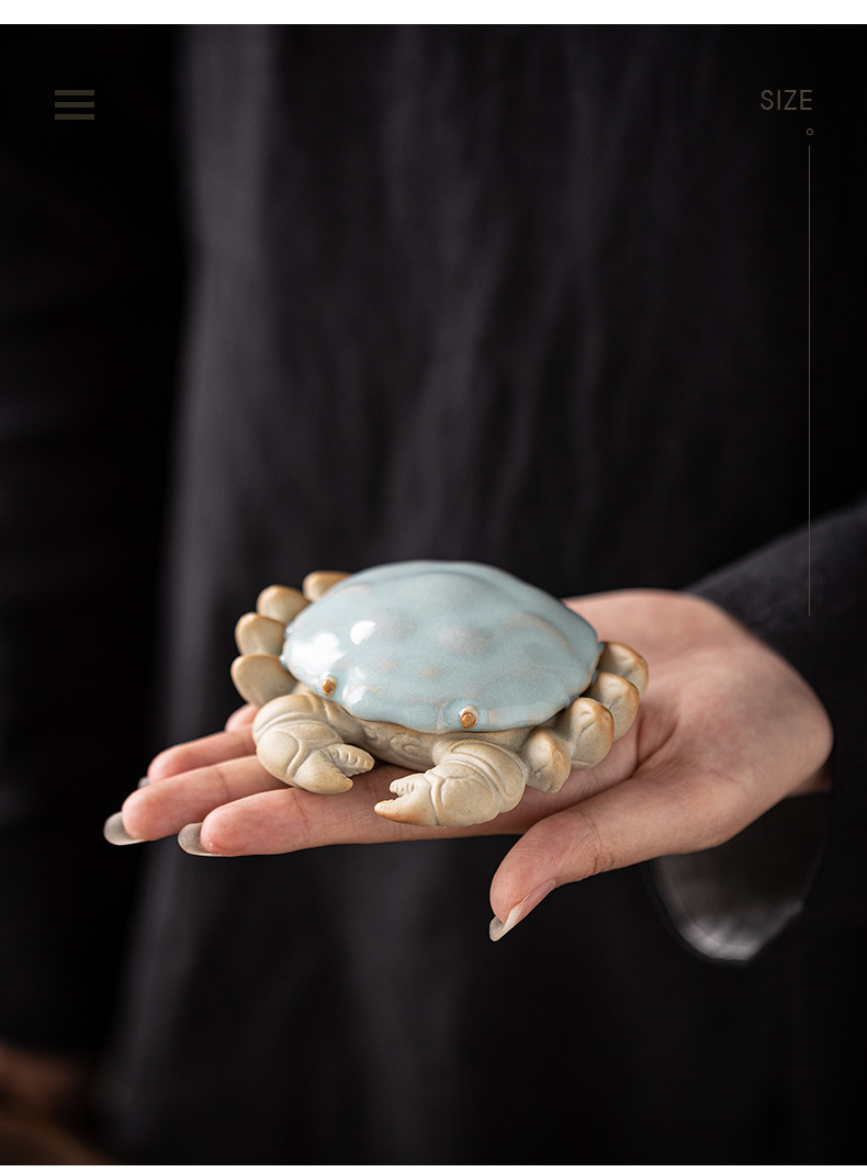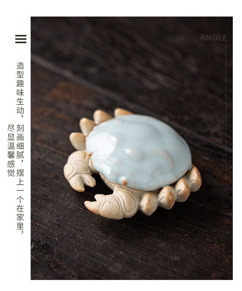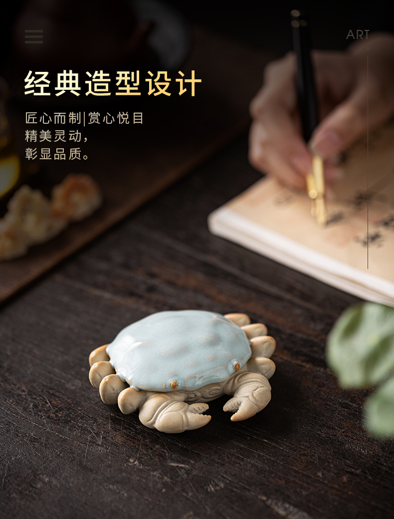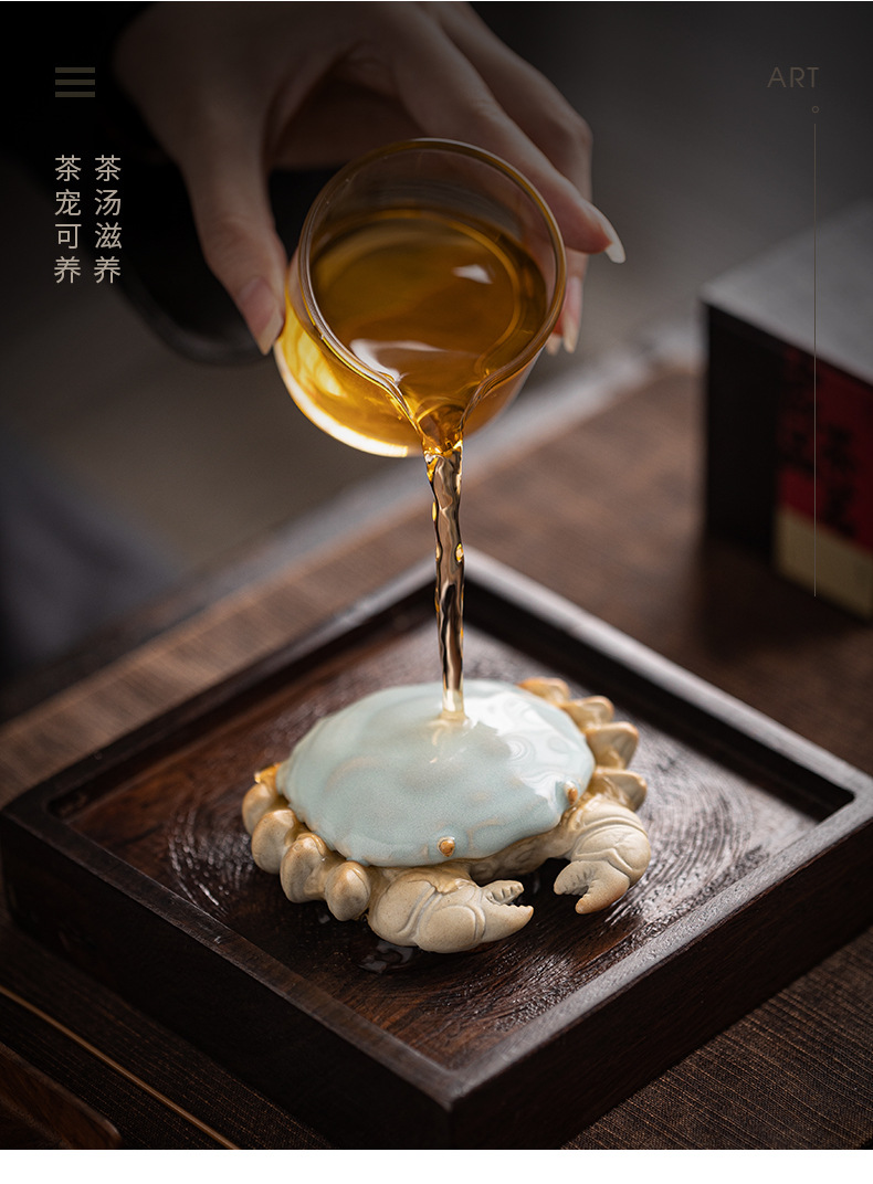 汝窑螃蟹茶宠摆件精品创意八方来财盖置盖托茶宠茶玩茶具茶桌摆件