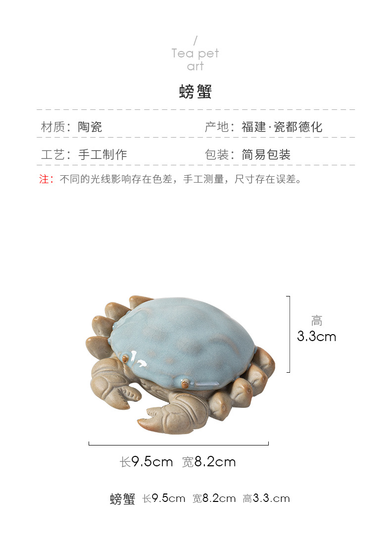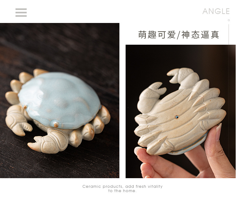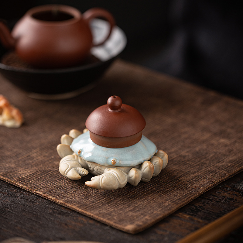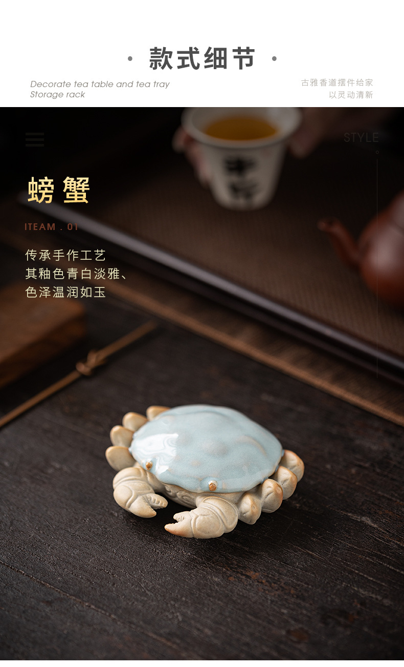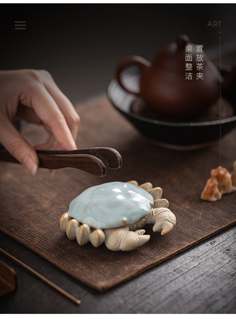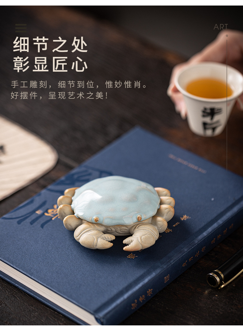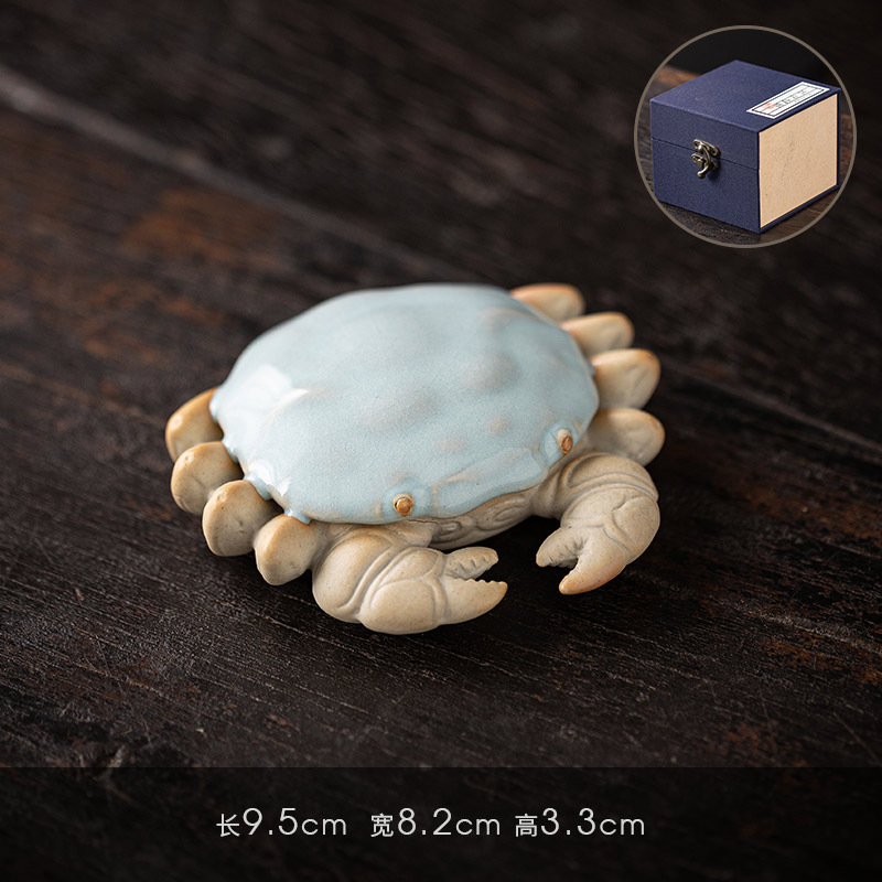 汝窑螃蟹茶宠摆件精品创意八方来财盖置盖托茶宠茶玩茶具茶桌摆件