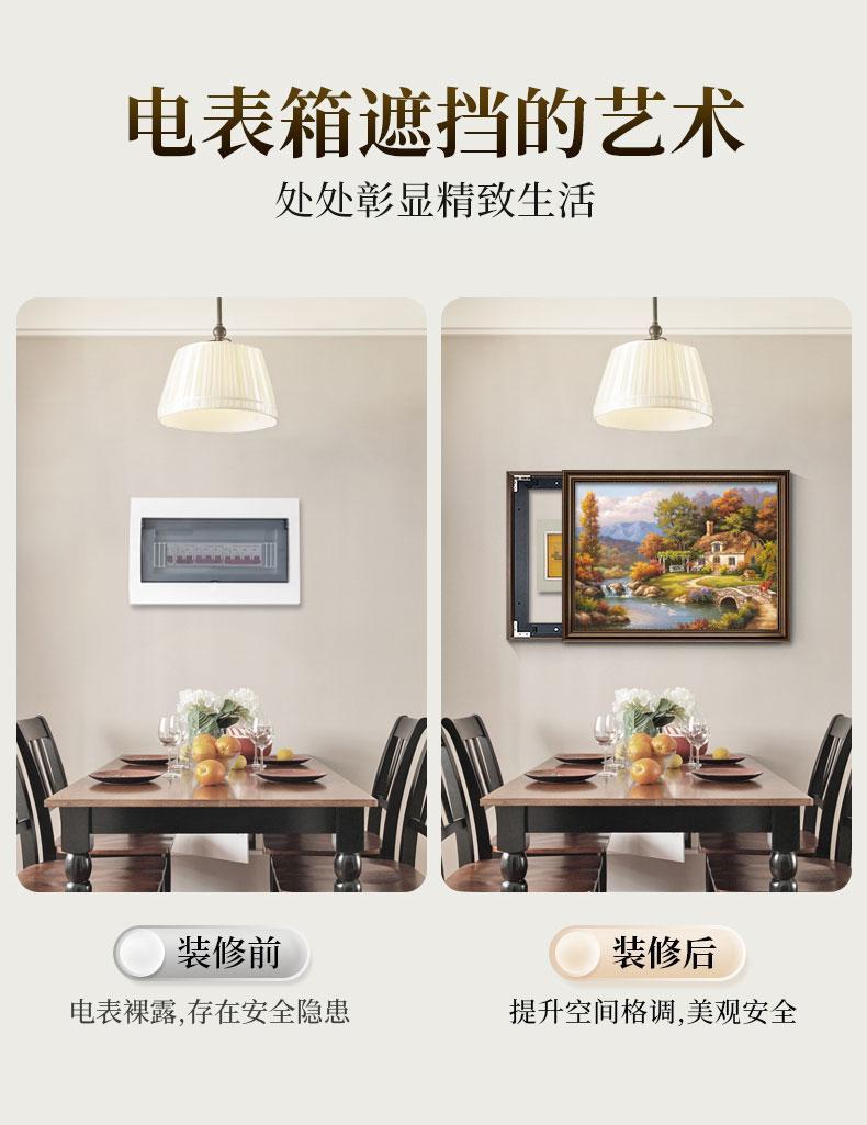 美式电表箱装饰画免打孔配电闸箱遮挡箱欧式餐厅风景油画客厅挂画