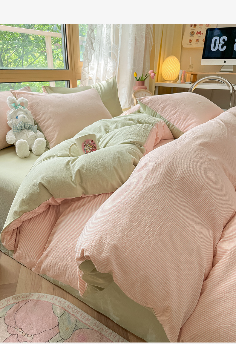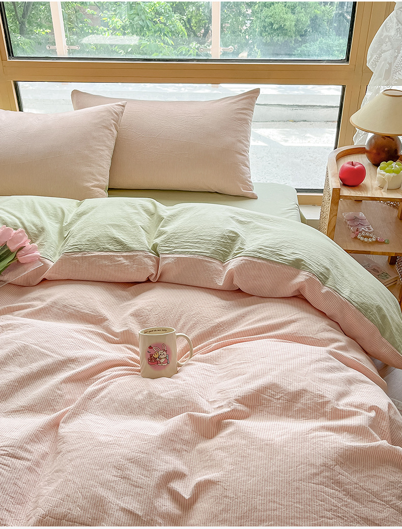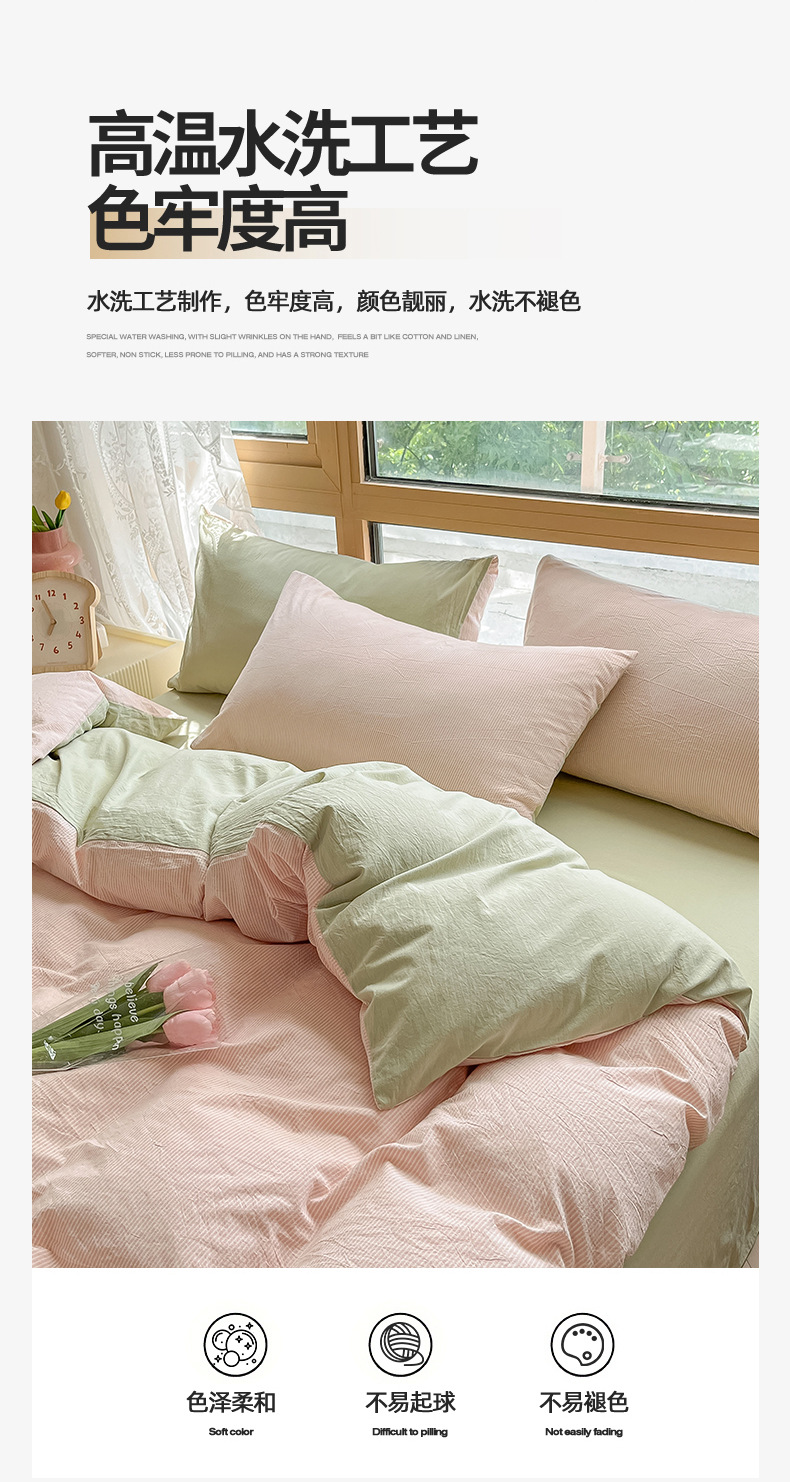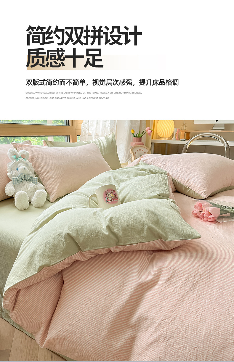 简约纯棉水洗棉四件套2025新款全棉床单被套床笠冬季床上用品