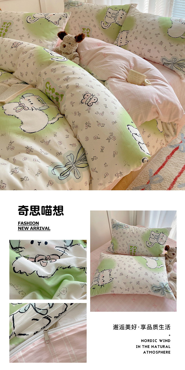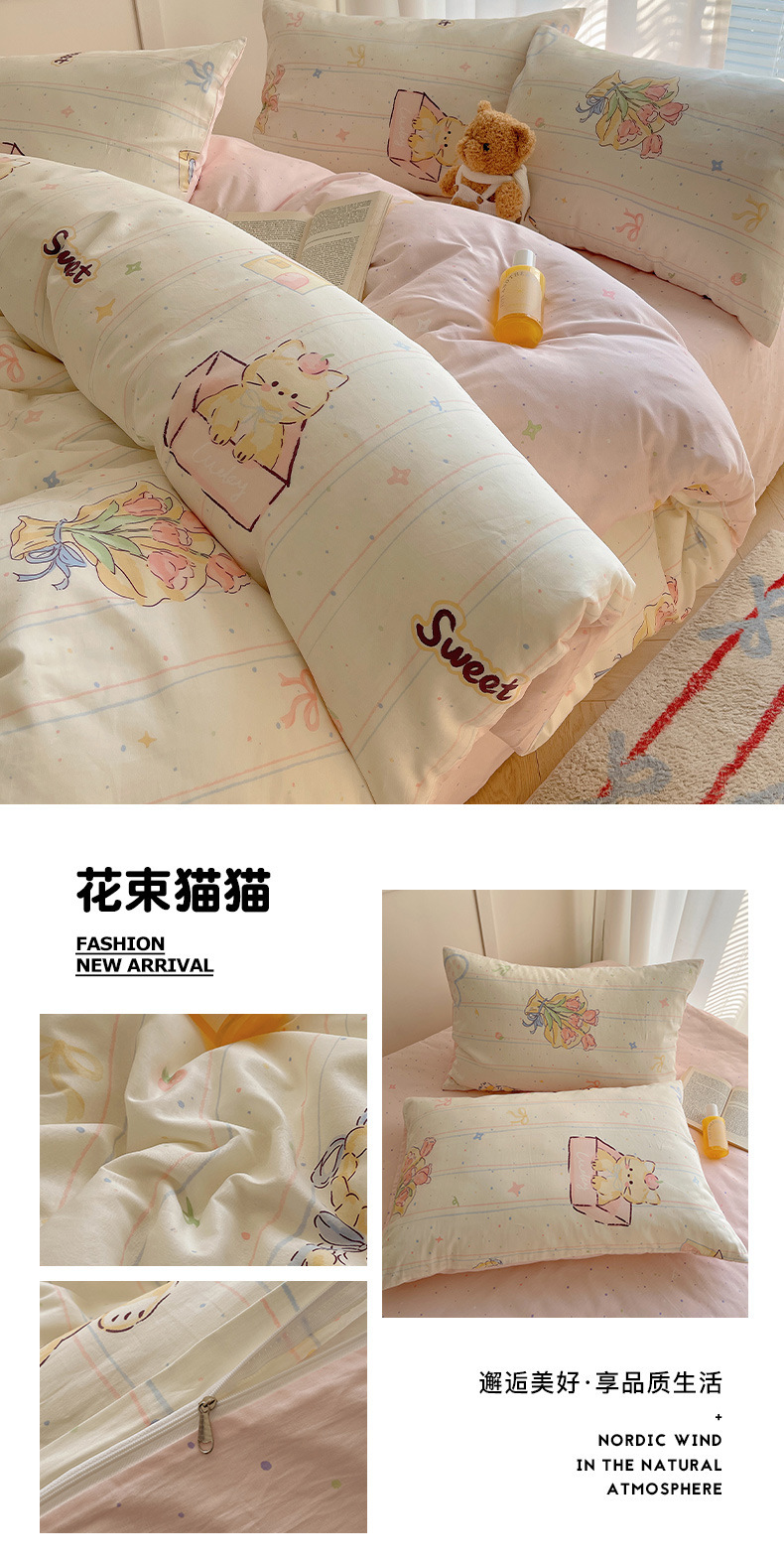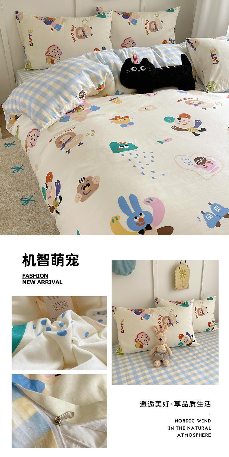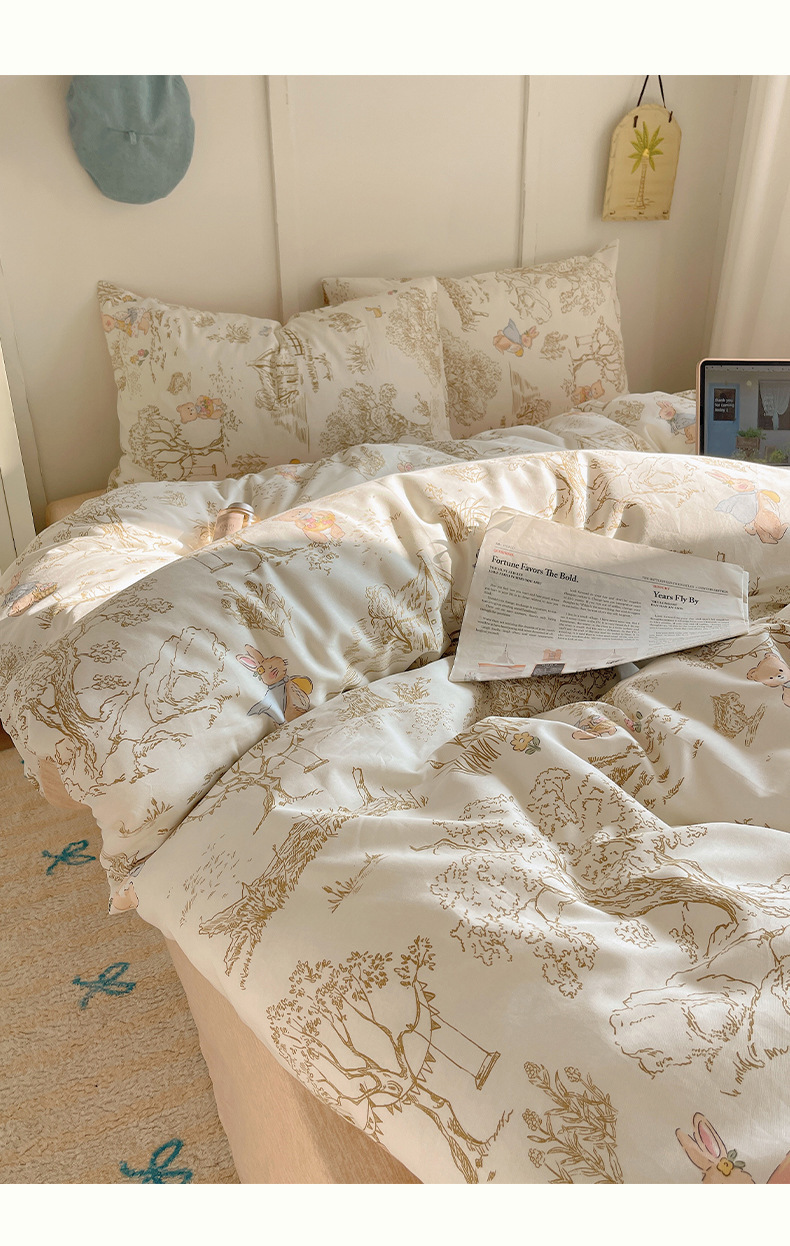 南通家纺可爱卡通全棉四件套100%纯棉床单被套春秋学生宿舍三件套