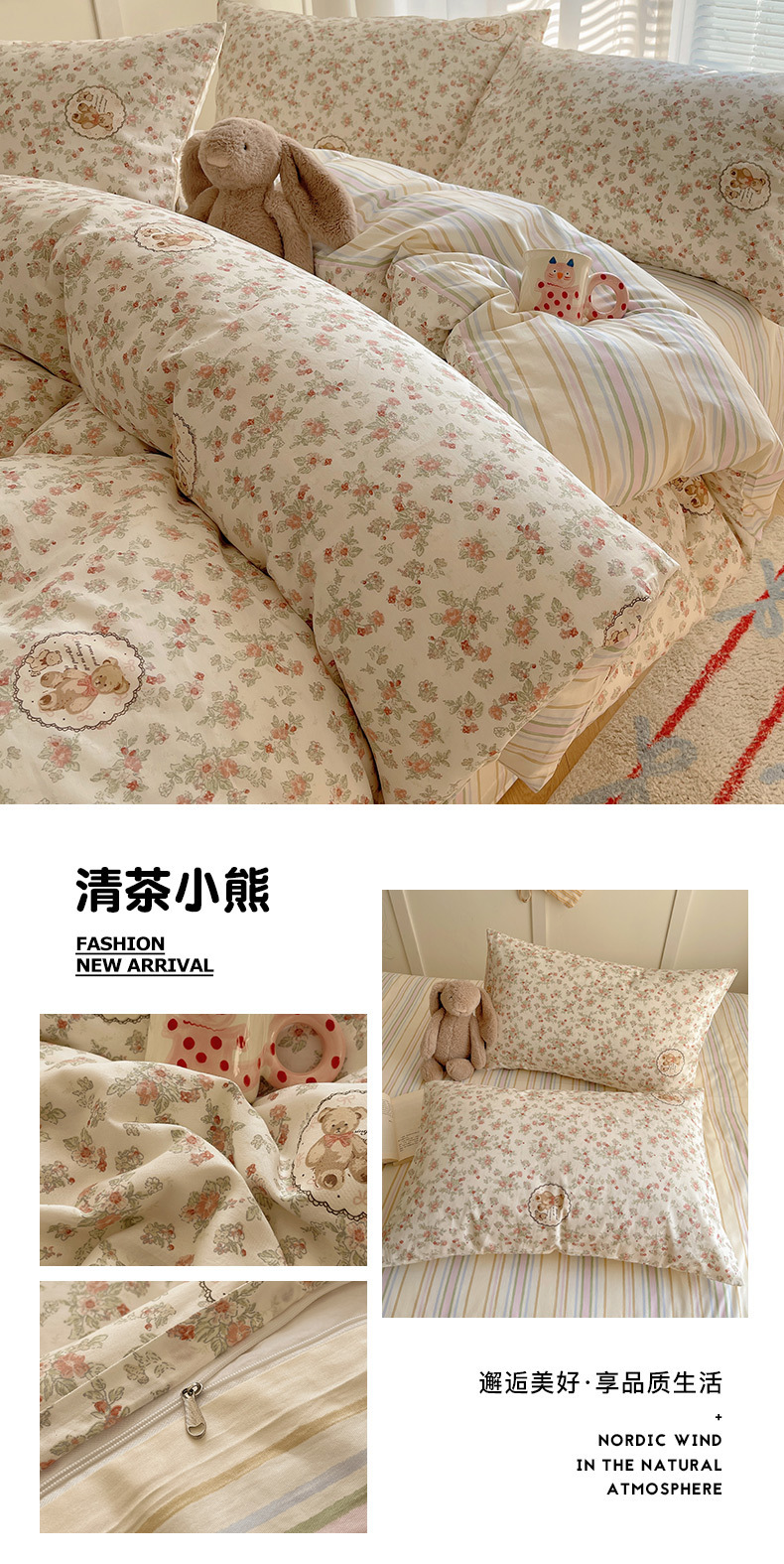 | 1.5m fitted sheet four-piece set (quilt cover 200 x230cm)(1.5m床笠款四件套(被套200x230cm)) | USD $27.25 | 5999 piece available |