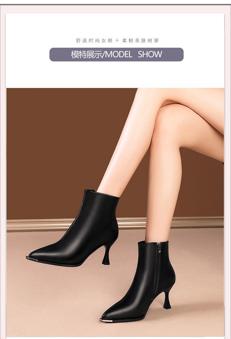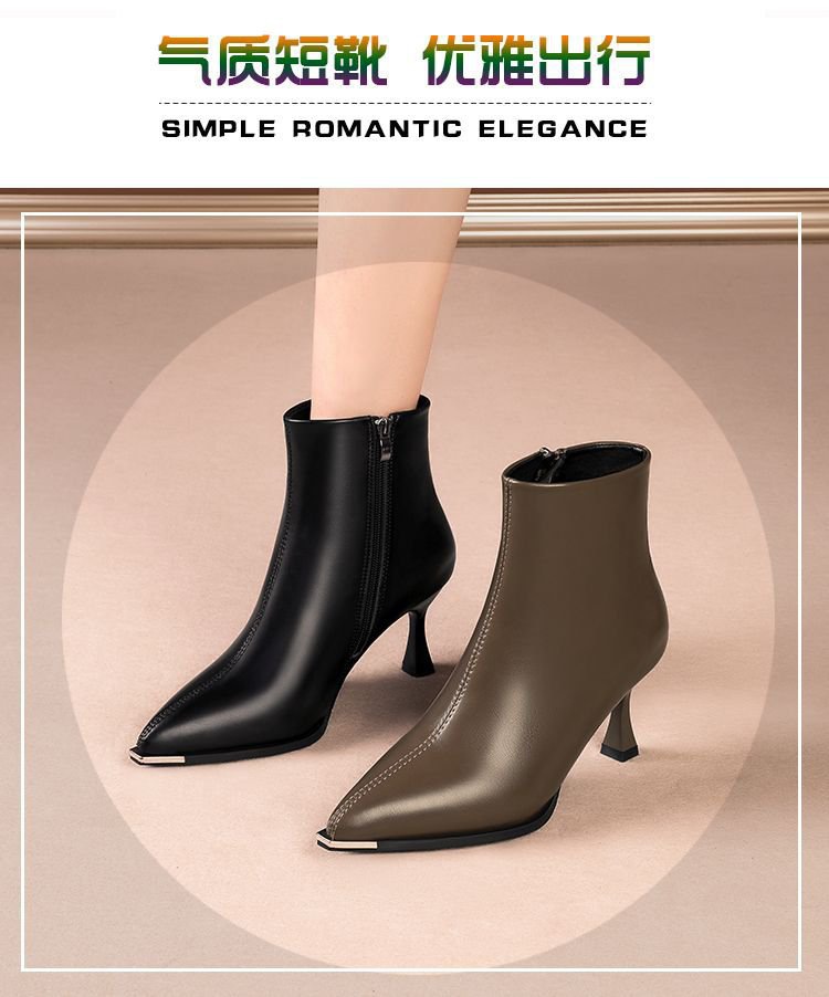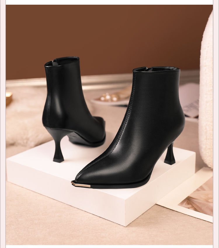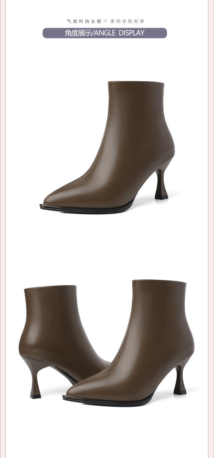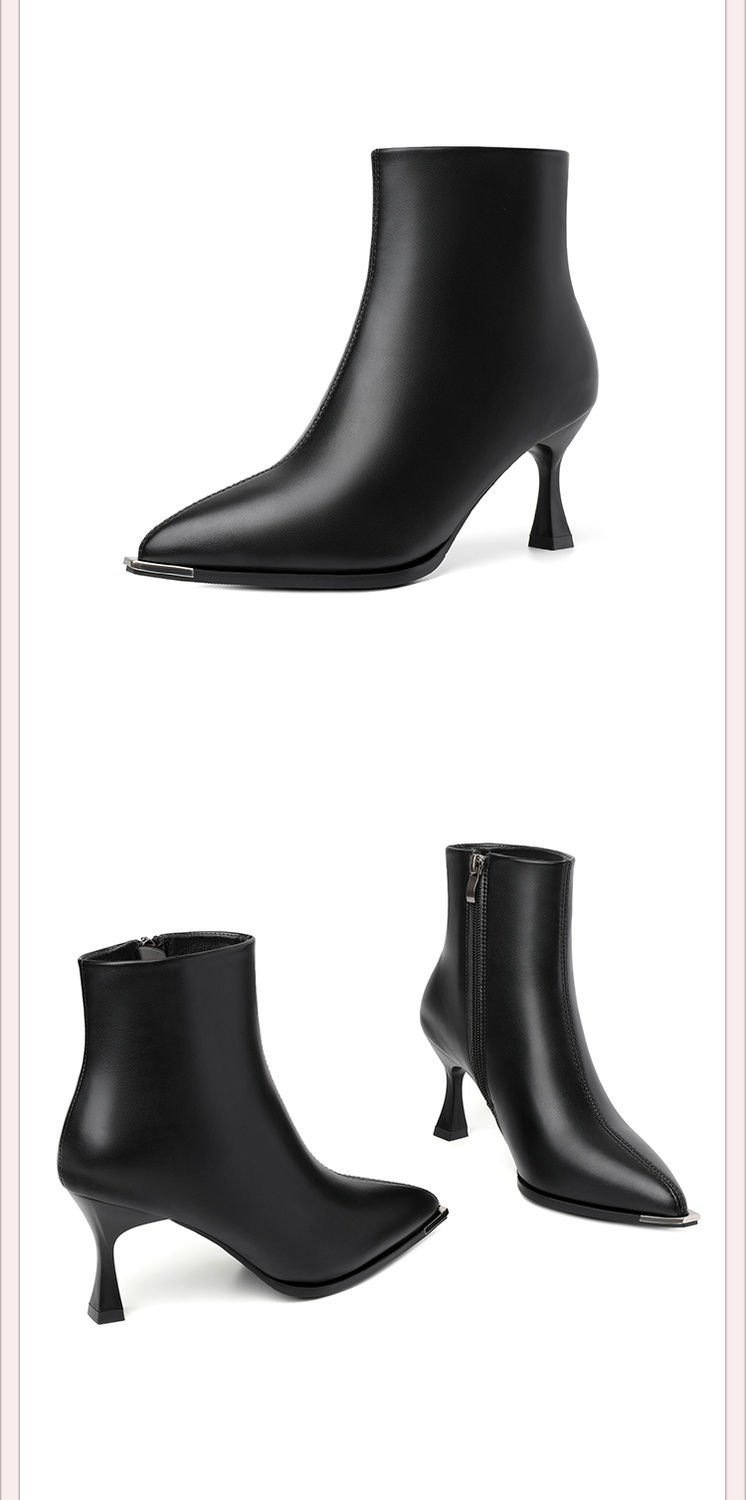 细跟高跟鞋女软皮短靴2025冬季新款时尚尖头加绒皮鞋百搭秋冬单靴