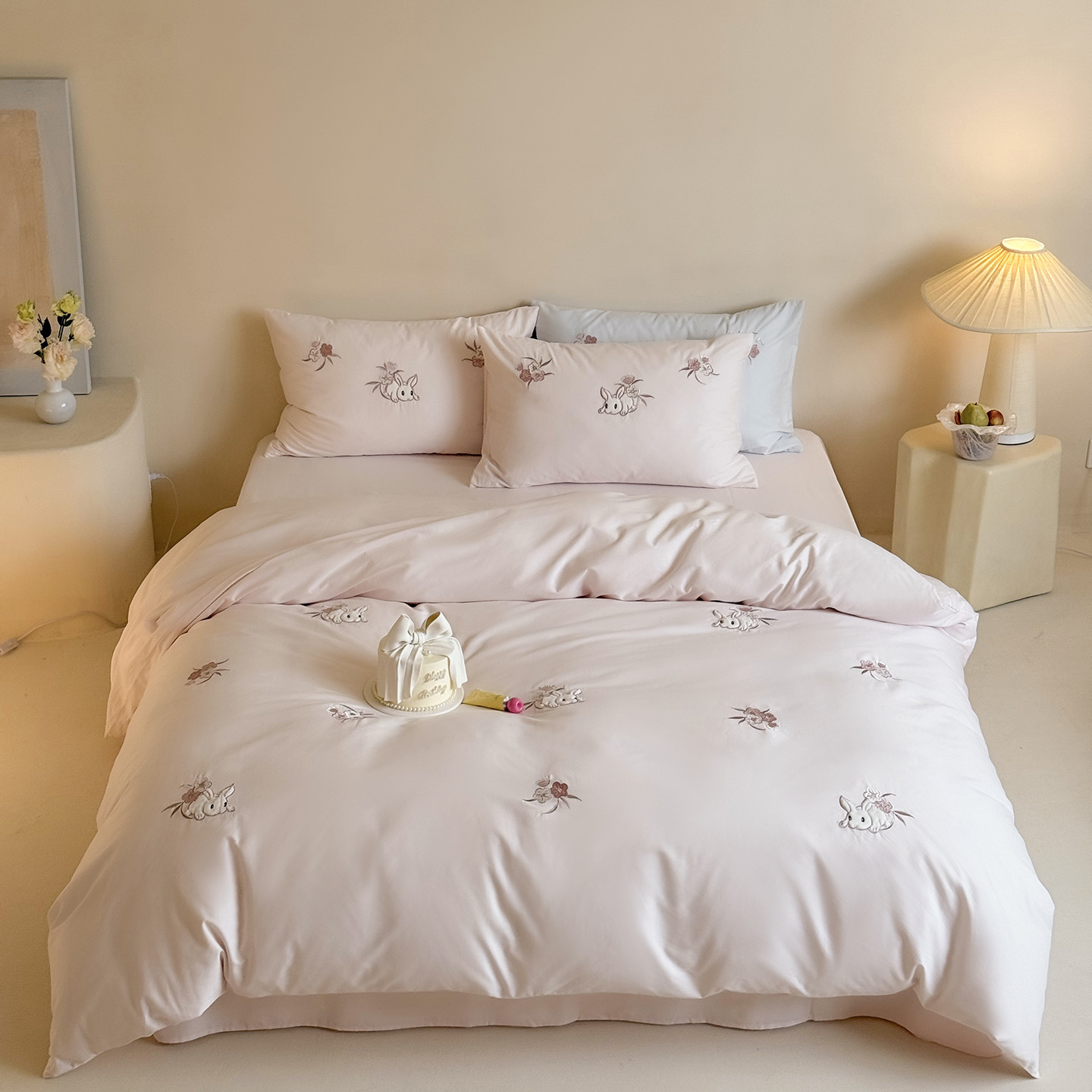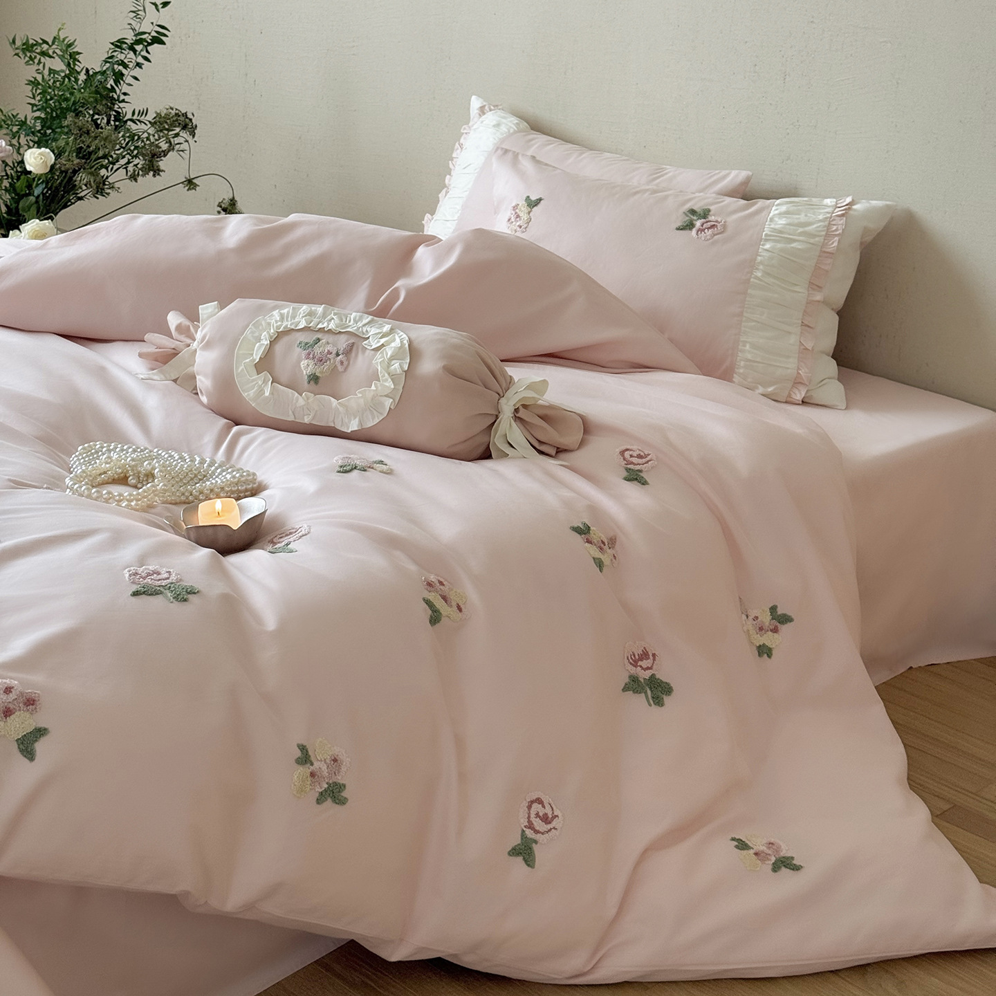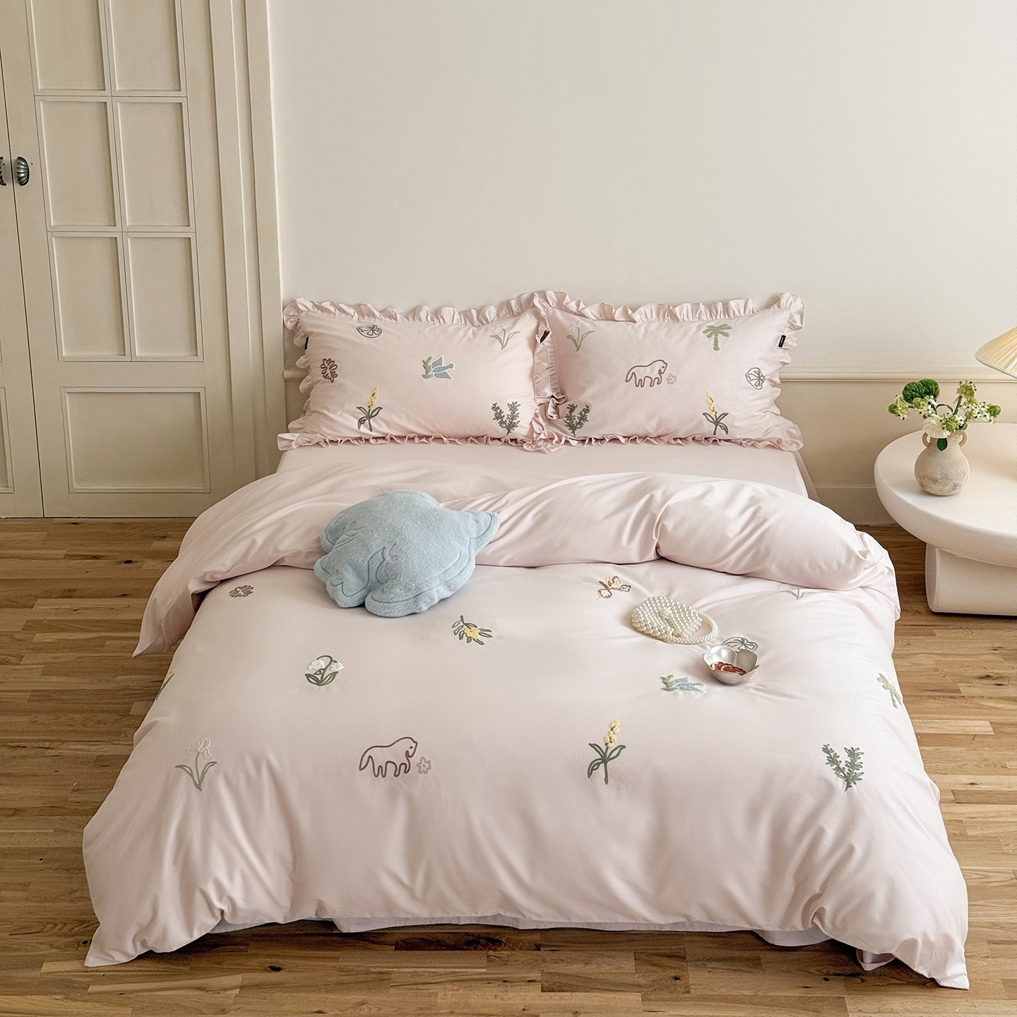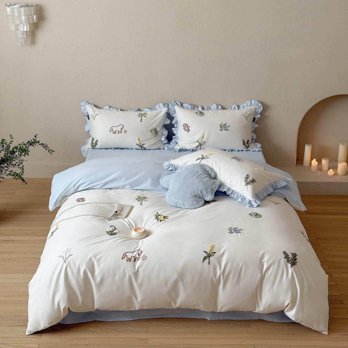 秋冬软糯100支长绒棉磨毛四件套少女心纯棉刺绣床单被套加厚4件套