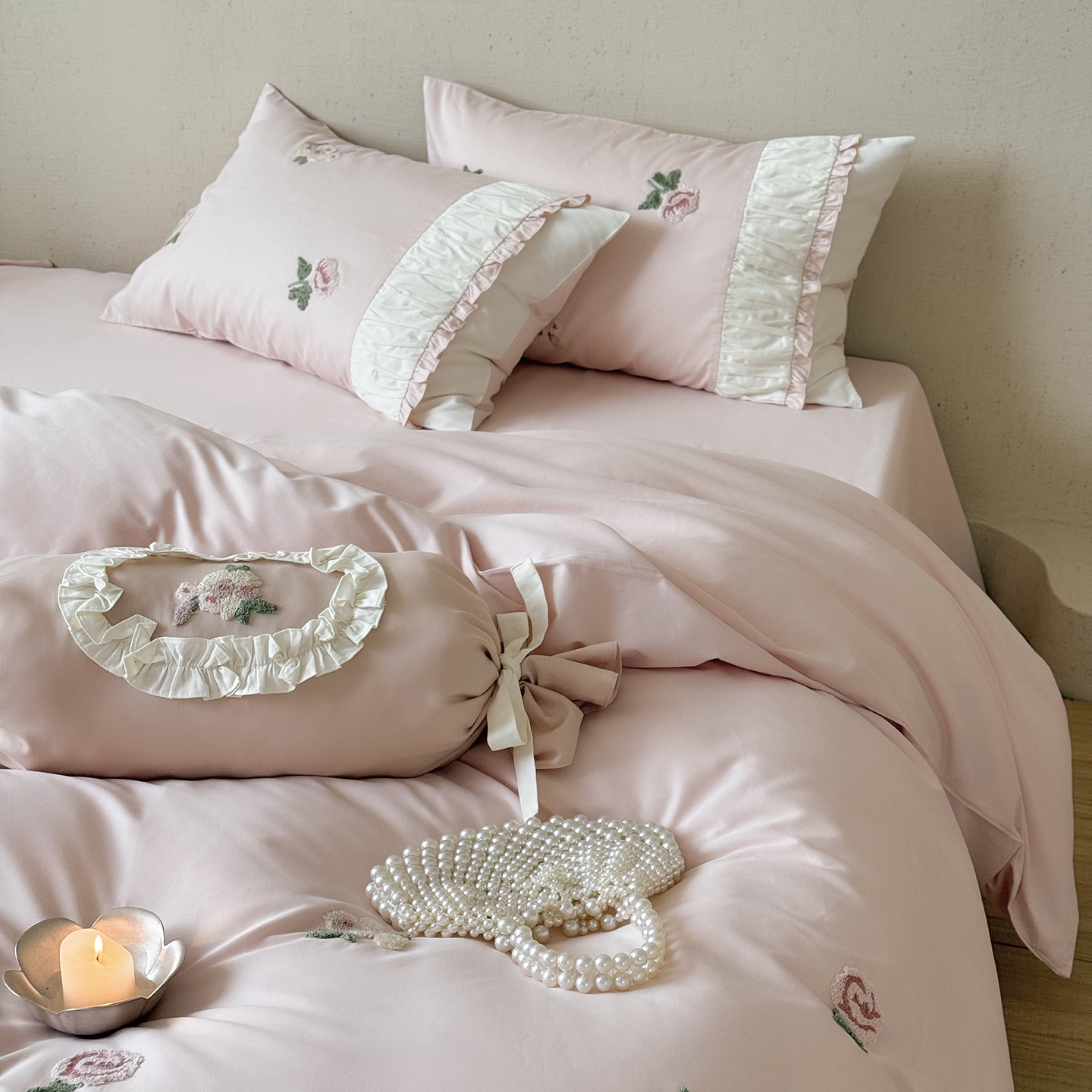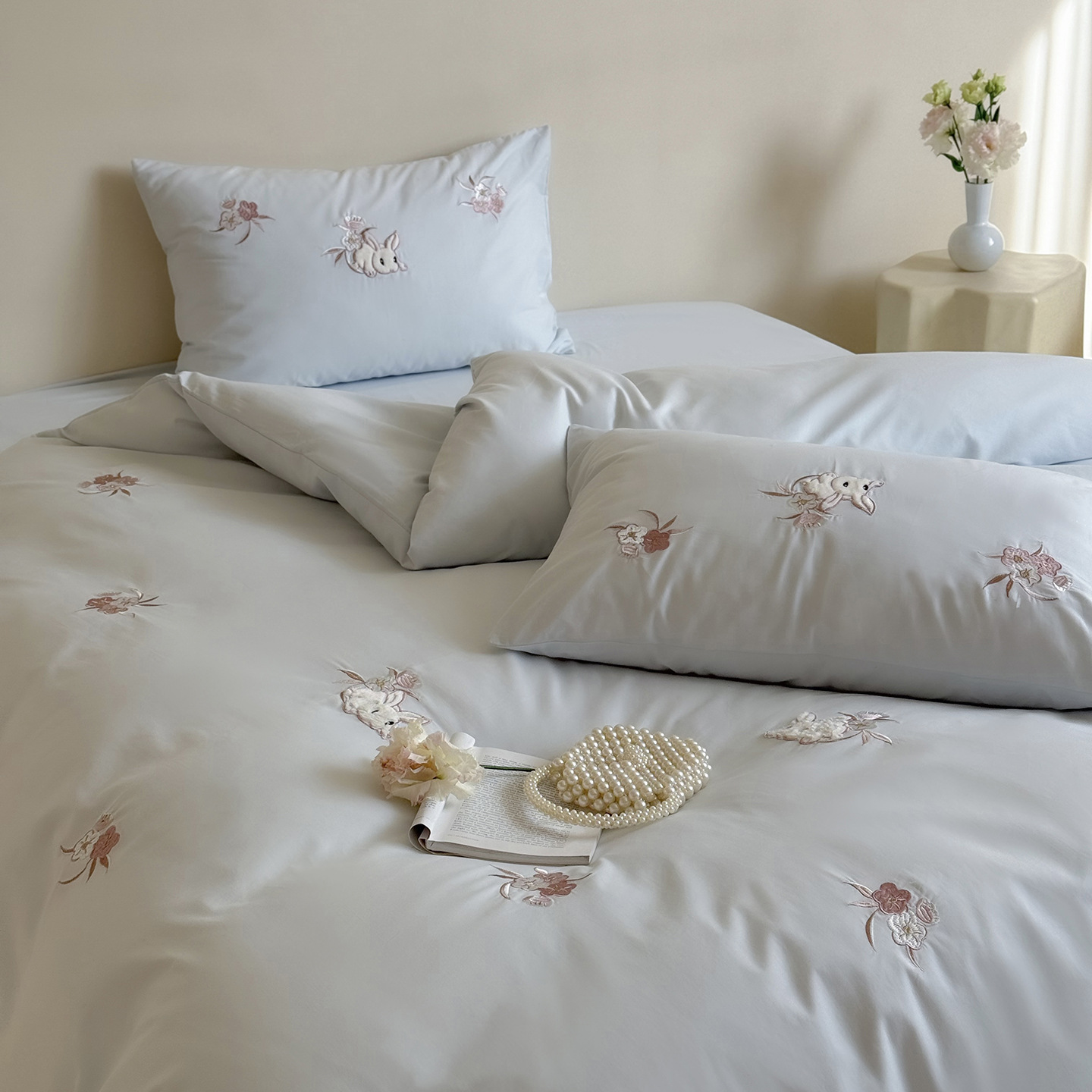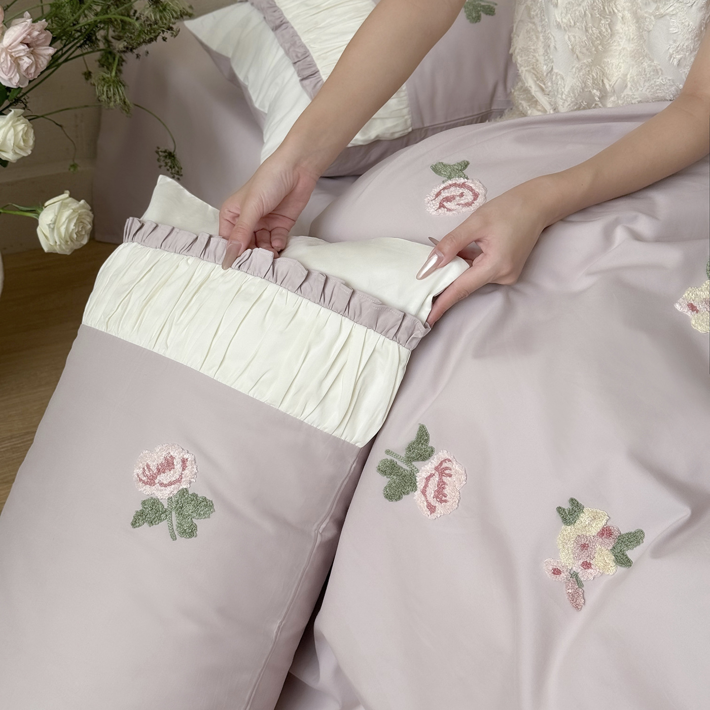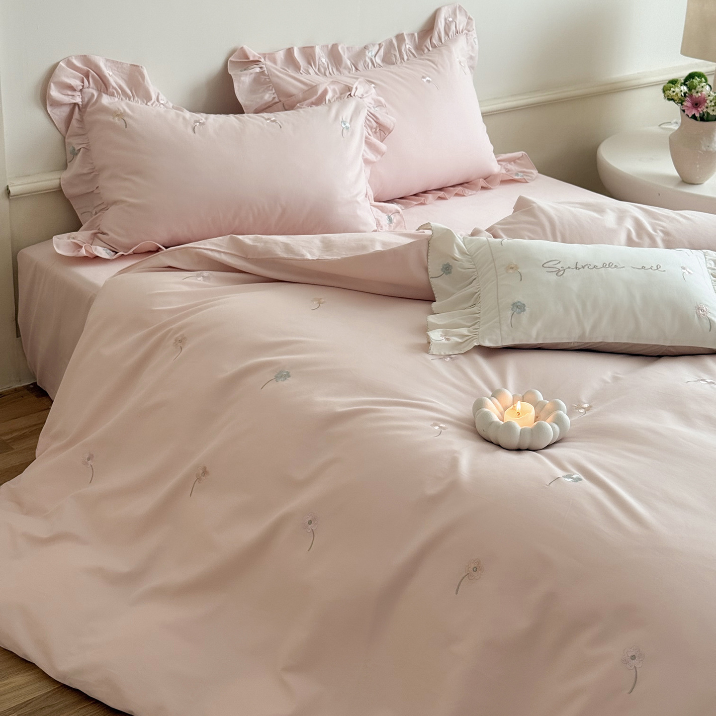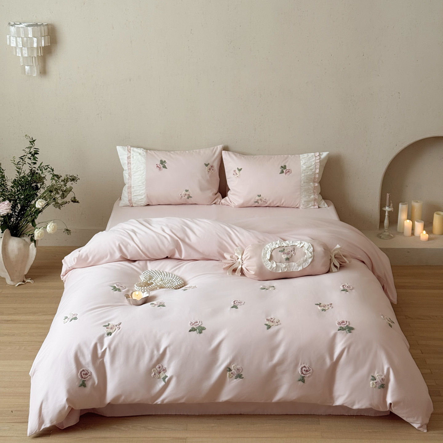 秋冬软糯100支长绒棉磨毛四件套少女心纯棉刺绣床单被套加厚4件套